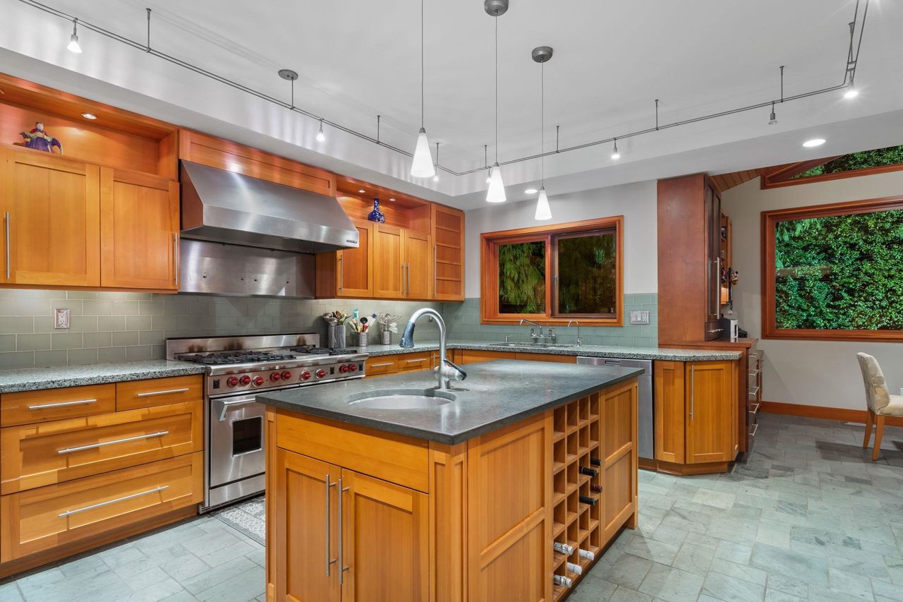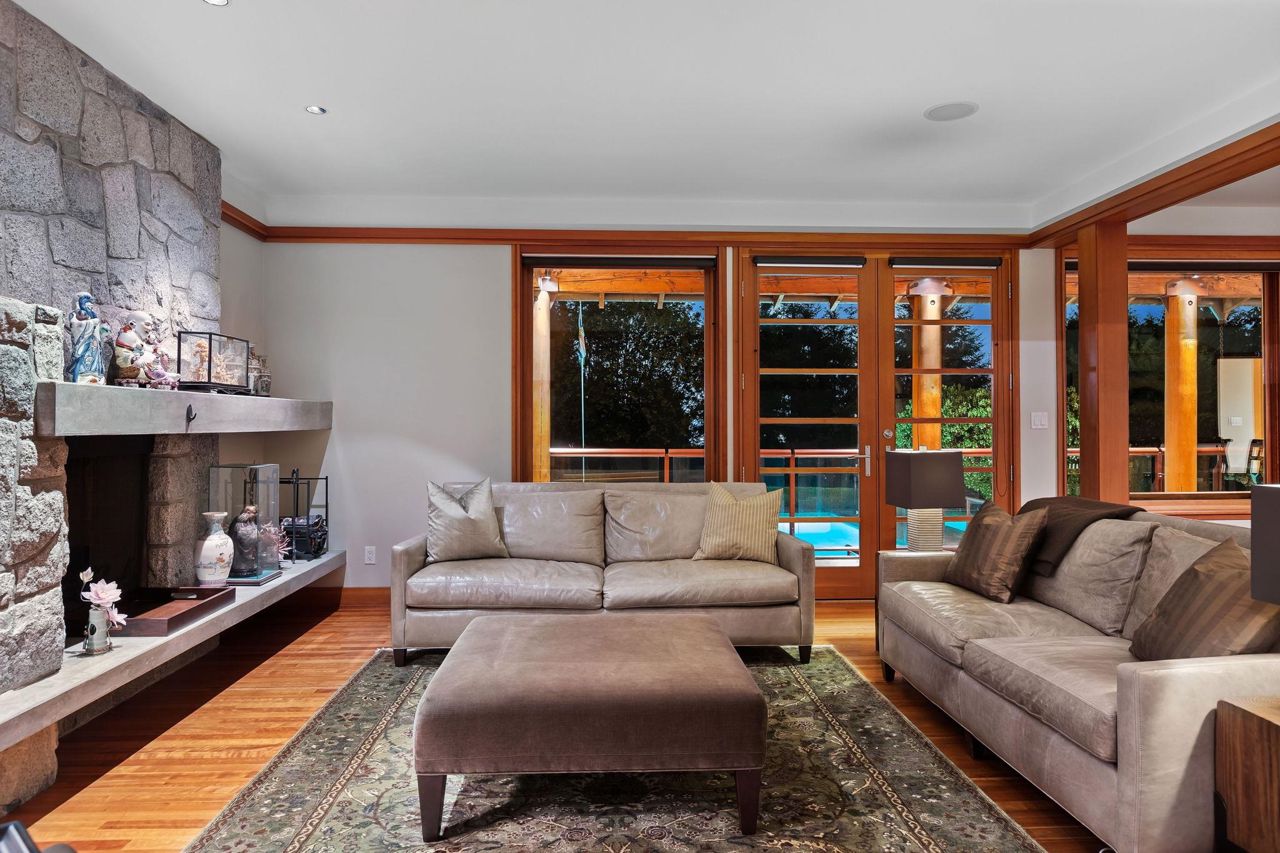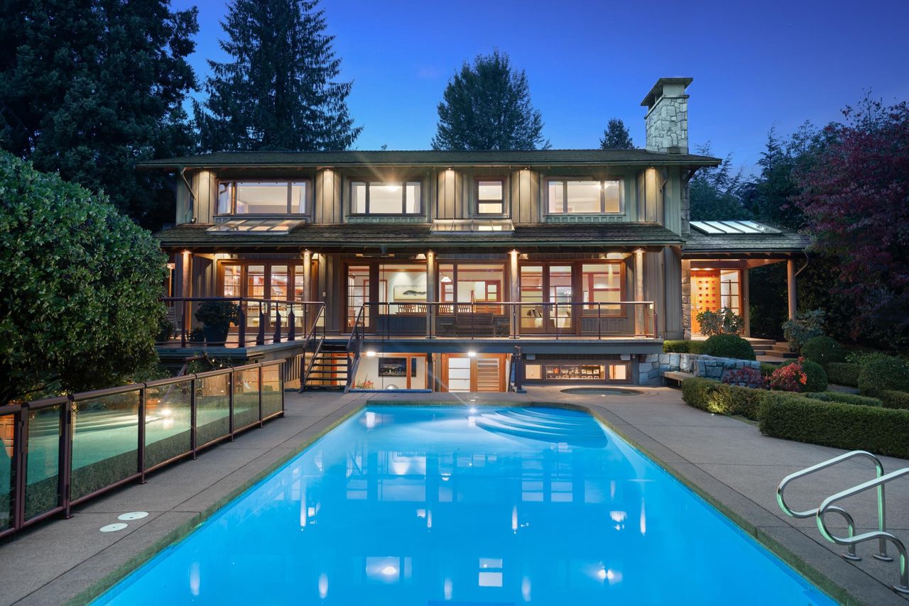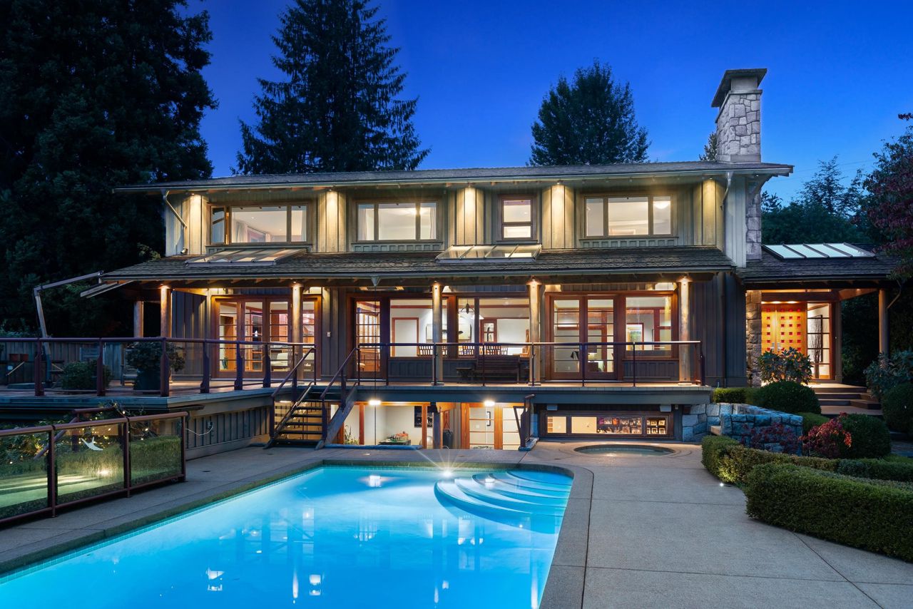 Nestled in the heart of a sought after West Vancouver neighborhood, this stunning West Coast inspired residence is set on a private 1/2 acre gated estate & offers architectural brilliance w/ stunning amenities. This sprawling property features manicured landscaping w/ koy pond, waterfall & intricate blue stone pathways that lead you to the breathtaking entrance. Boasting over approx 6,000 sqft across 3 levels, this truly special custom home offers 5 bed/4bath, custom built-ins, H/W flrs, living & dining opening to the main deck w/ pool/hot tub, mason constructed stone f/p, lrg kitchen w/ s/s WOLFE app, bright lower level walkout basement, sports crt & more. A true testament to organic architecture, this residence offers a level quality and construction rarely seen on the market today.