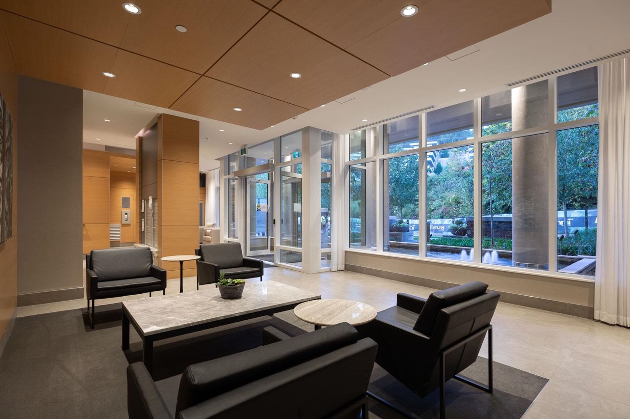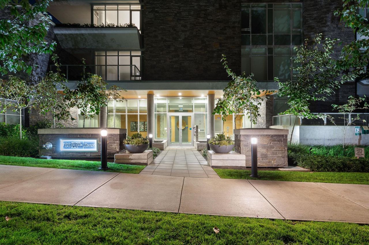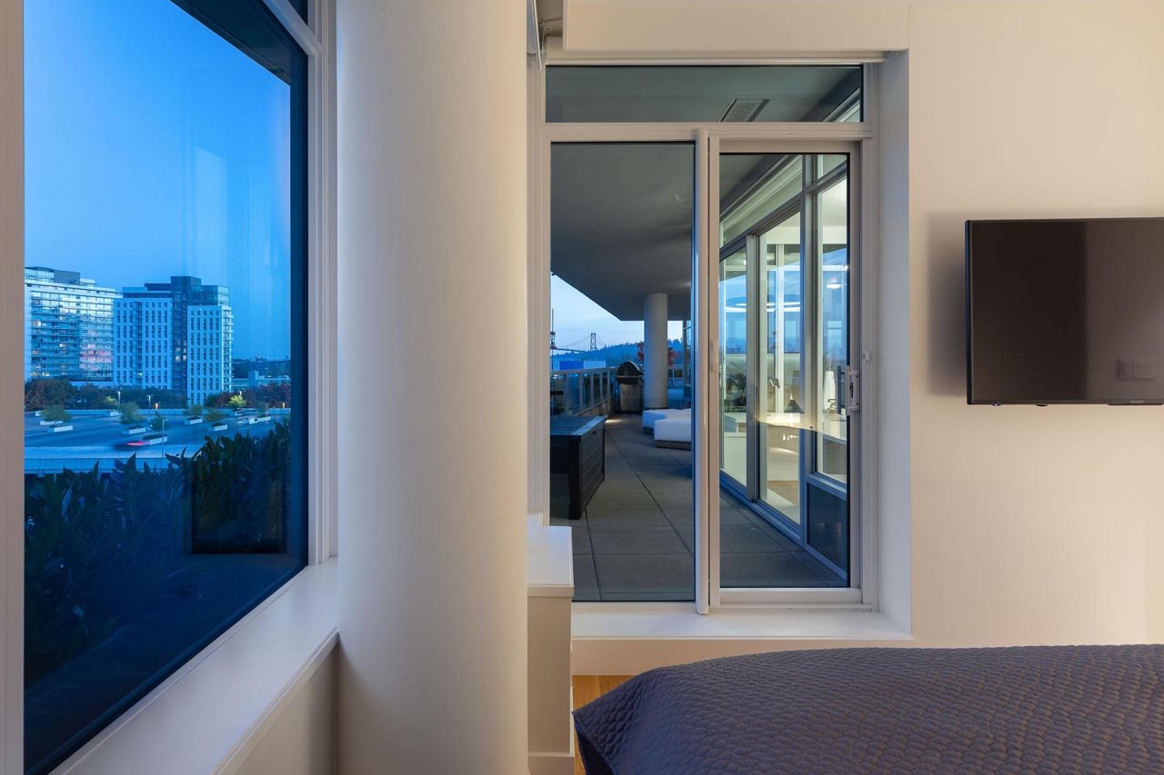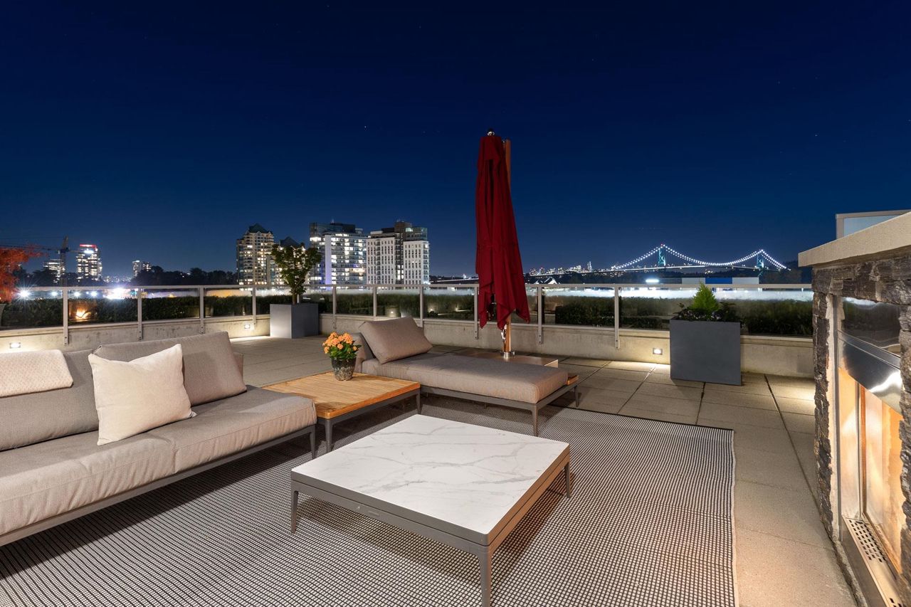 Stunning Sub-Penthouse residence is nothing short of spectacular-captivating views -custom designed interior and an exceptional seamless connection to the partially covered outdoor terrace complete with a gas fireplace and accessible from all rooms. Relaxed open concept contemporary designed kitchen, living and dining areas adorned with huge windows and natural light. Three full bathrooms, private den, two luxurious bedrooms, each ensuited with two walk-ins closets in the master, second bedroom redesigned into a gorgeous custom home office. Additional features include air conditioning, a laundry room, concierge, full gym, private double garage, two lockers and two secure bike lockers. Quick access to downtown or walk to Park Royal this beautiful suite offers an extraordinary !lifestyle!