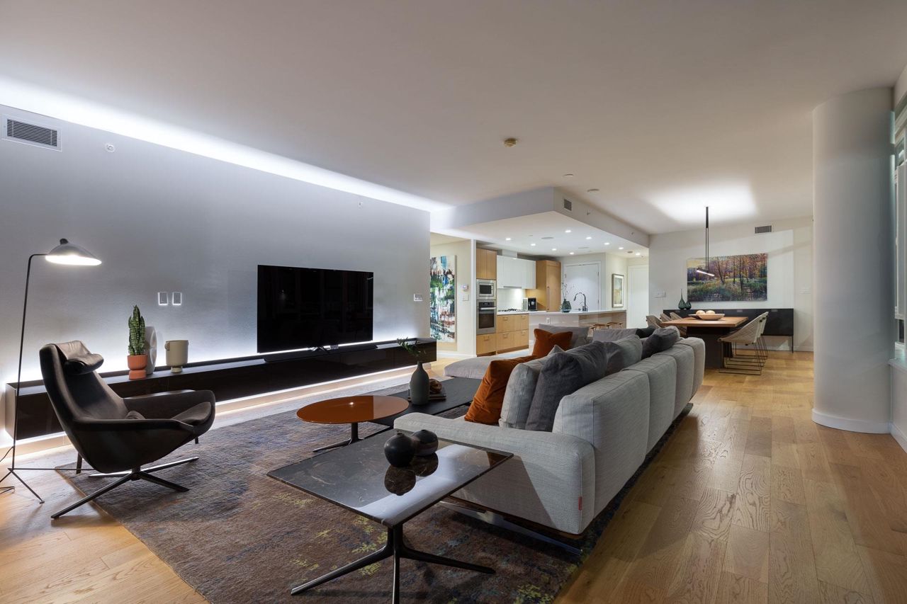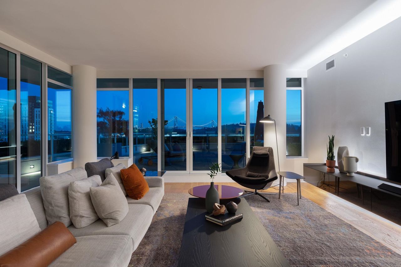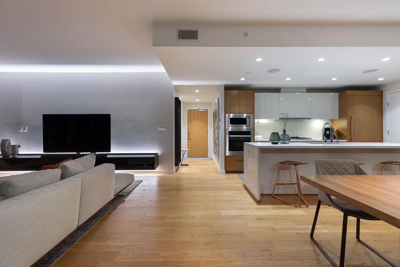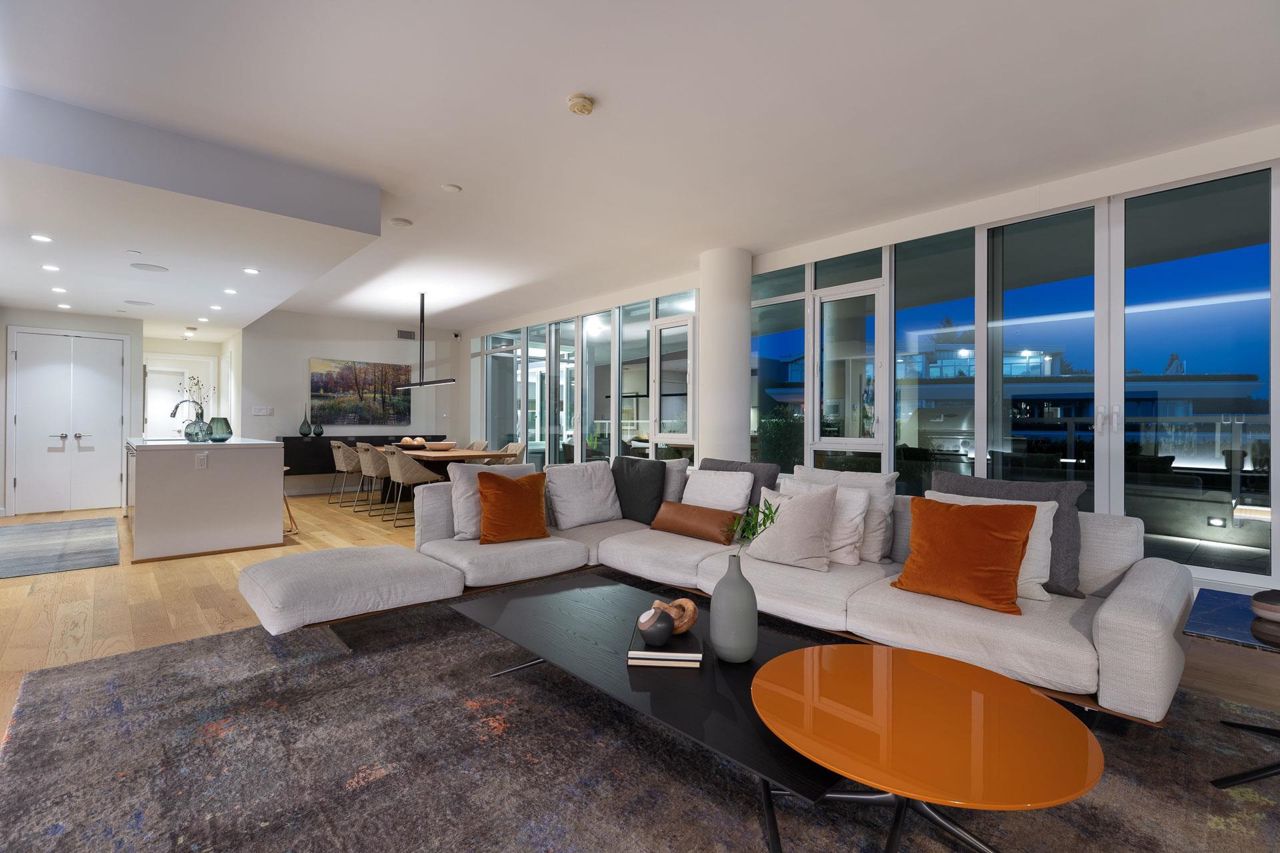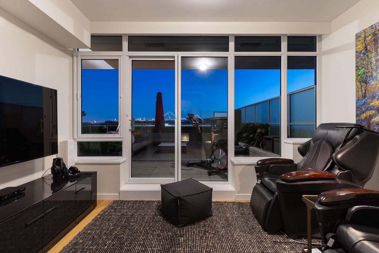 Stunning Sub-Penthouse residence is nothing short of spectacular-captivating views -custom designed interior and an exceptional seamless connection to the partially covered outdoor terrace complete with a gas fireplace and accessible from all rooms. Relaxed open concept contemporary designed kitchen, living and dining areas adorned with huge windows and natural light. Three full bathrooms, private den, two luxurious bedrooms, each ensuited with two walk-ins closets in the master, second bedroom redesigned into a gorgeous custom home office. Additional features include air conditioning, a laundry room, concierge, full gym, private double garage, two lockers and two secure bike lockers. Quick access to downtown or walk to Park Royal this beautiful suite offers an extraordinary !lifestyle!