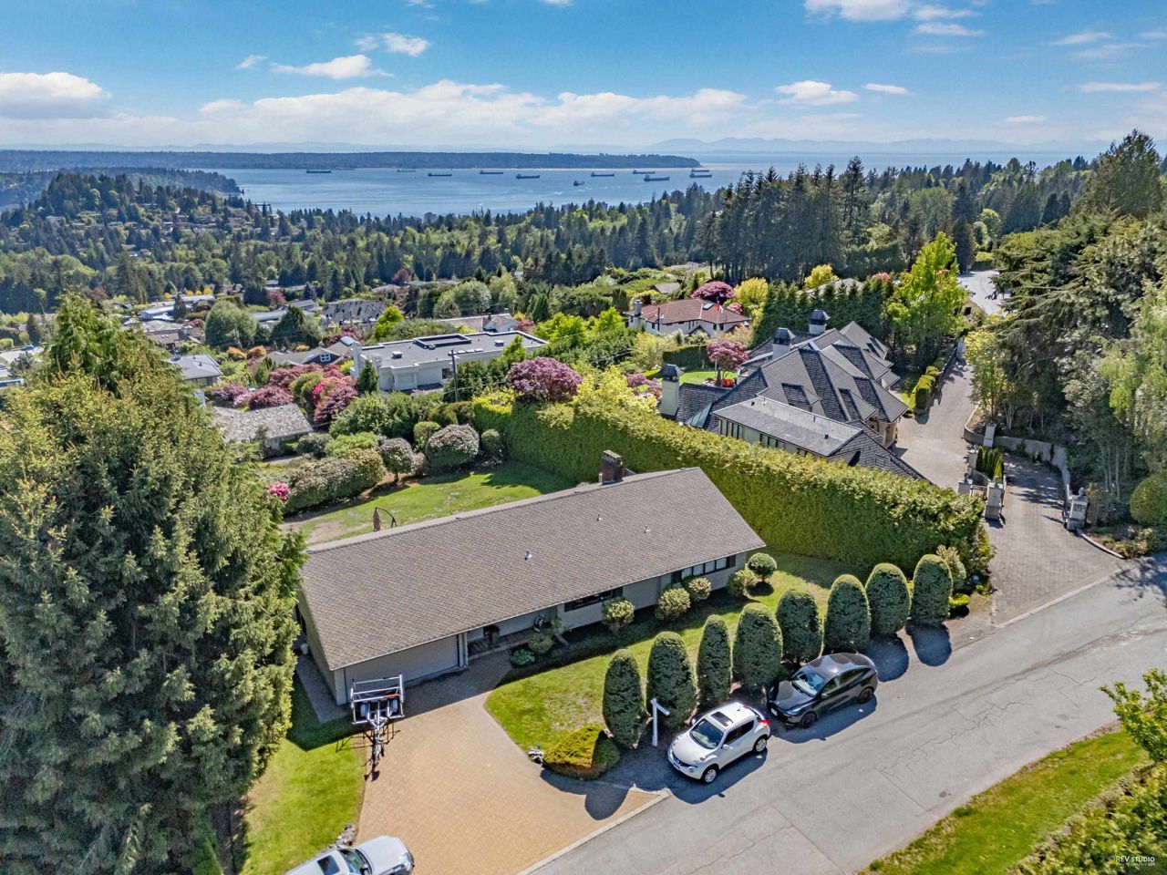 A rare opportunity awaits with this magnificent 21,780 square foot estate lot situated in the heart of West Vancouver's prestigious British Properties, featuring 180-degree city and ocean views and a 120-foot wide frontage. This nearly 4,000 square foot house has been well-maintained and periodically renovated over the years. It offers two levels of living space, including a spacious kitchen, living room, dining room and a great office. The house features 4 bedrooms, 3 bathrooms, and a level driveway. The walk-out lower level adds to the home's appeal and functionality. Prime location is just minutes from the Hollyburn Country Club and conveniently close to Collingwood and Chartwell Schools. Perfect for immediate move-in or as a site to build your dream house.