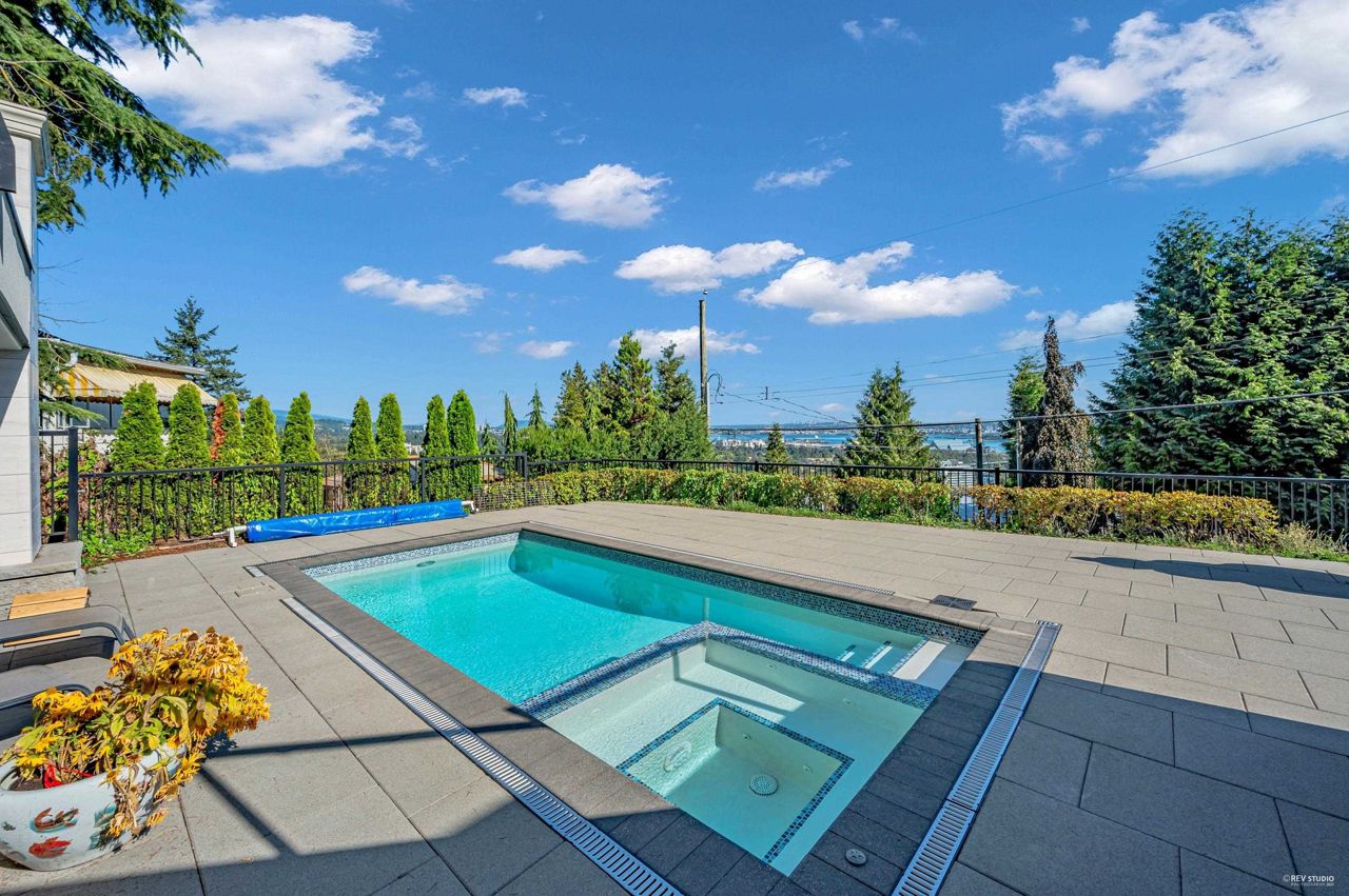 This splendid 5378-square-foot custom-built residence graces a secure 10989-square-foot lot. Enjoy panoramic city and water vistas, complemented by an outdoor swimming pool and patio. This timeless abode showcases impeccable detailing and artistry, highlighted by a capacious gourmet kitchen that connects to a private backyard BBQ area, alongside a wok kitchen, Guest bedroom and open den. 4 bedroom upstairs, all facing south. The walkout basement features a home theatre, entertainment space, outdoor pool, and hot tub. Additionally, there are two extra bedrooms, a separate living room entrance, and features such as radiant heat, AC, and a security system. A residence that embodies the essence of a dream home!