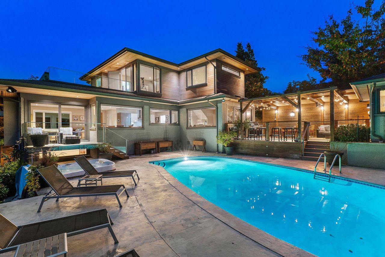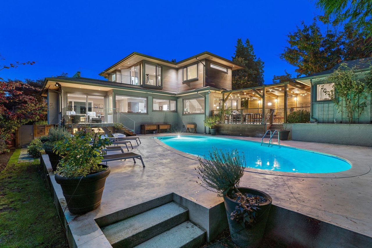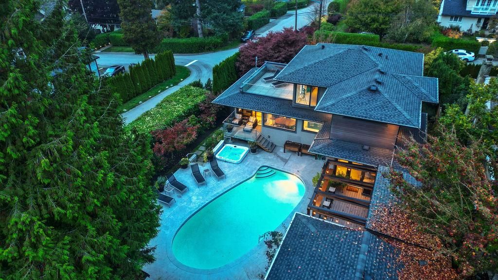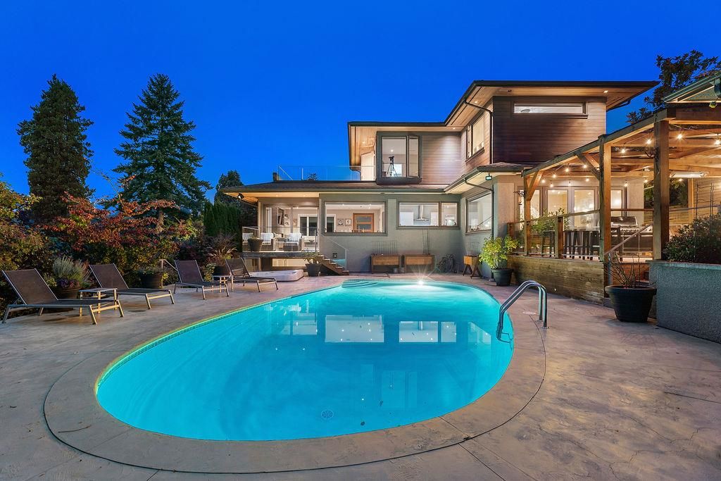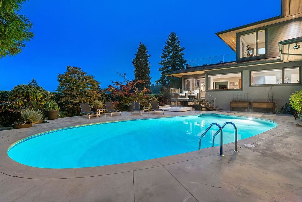 Discover this West Coast Contemporary dream home on prestigious Sentinel Hill. Convenient, walkable location close to everything. Meticulously rebuilt to the highest standards on a completely private, south facing corner lot with ocean, sunset, & mountain views. Superb floor plan with a gourmet kitchen boasting wolf/sub zero appliances & hardwood floors overlooking the sun drenched pool. The outdoor space features new trex decking, hot tub, heated BBQ area, & an expansive pool deck for year round resort living. The mature gardens are stunning: maple trees, rhododendrons, & hedges provide privacy & an estate ambiance. 5 bed 4 bath with a prime master suite. Meticulous quality & design, walking distance to Ambleside Beach, Park Royal, WVSS, Ridgeview, & Hollyburn CC. Perfection!