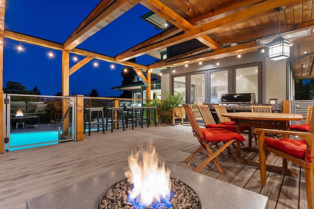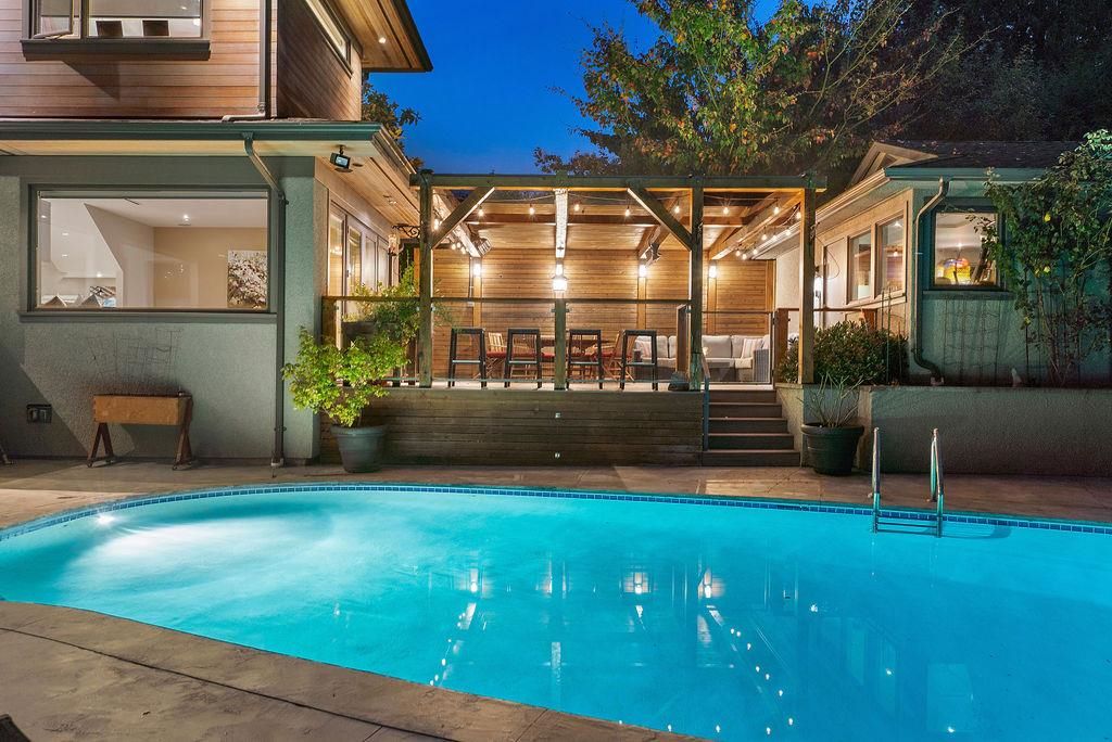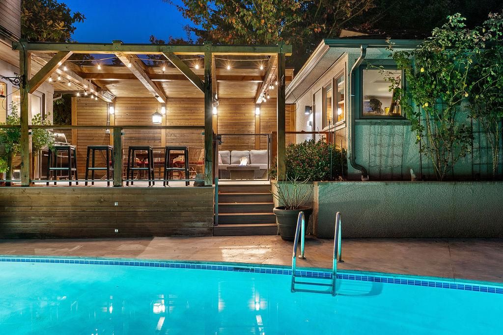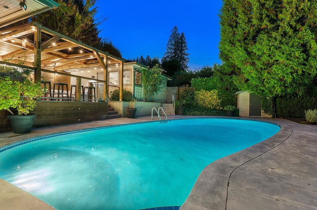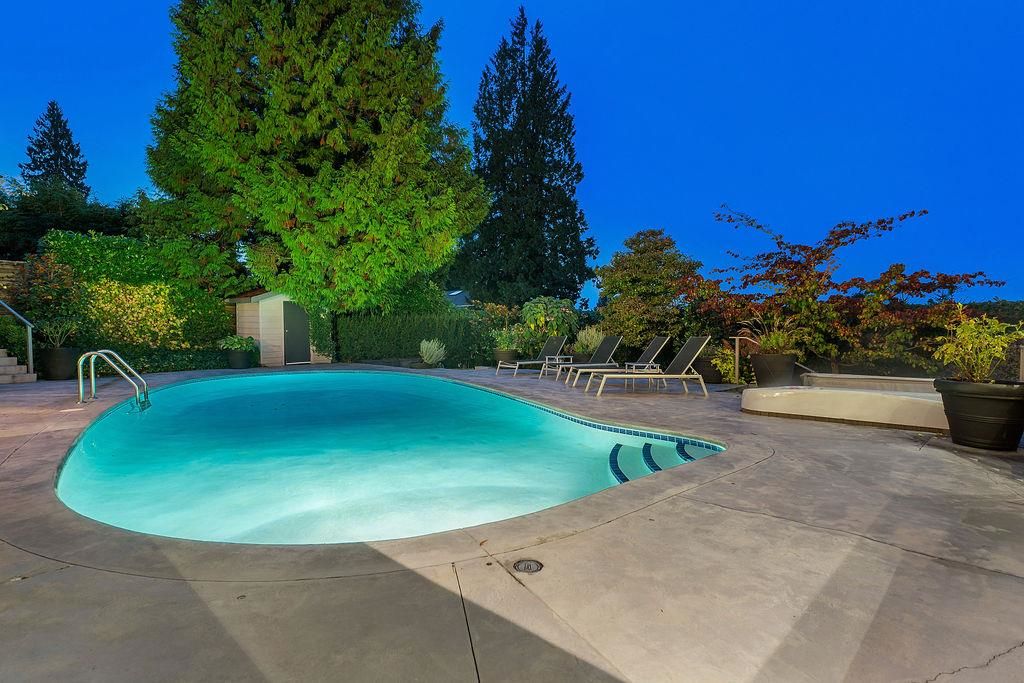 Discover this West Coast Contemporary dream home on prestigious Sentinel Hill. Convenient, walkable location close to everything. Meticulously rebuilt to the highest standards on a completely private, south facing corner lot with ocean, sunset, & mountain views. Superb floor plan with a gourmet kitchen boasting wolf/sub zero appliances & hardwood floors overlooking the sun drenched pool. The outdoor space features new trex decking, hot tub, heated BBQ area, & an expansive pool deck for year round resort living. The mature gardens are stunning: maple trees, rhododendrons, & hedges provide privacy & an estate ambiance. 5 bed 4 bath with a prime master suite. Meticulous quality & design, walking distance to Ambleside Beach, Park Royal, WVSS, Ridgeview, & Hollyburn CC. Perfection!