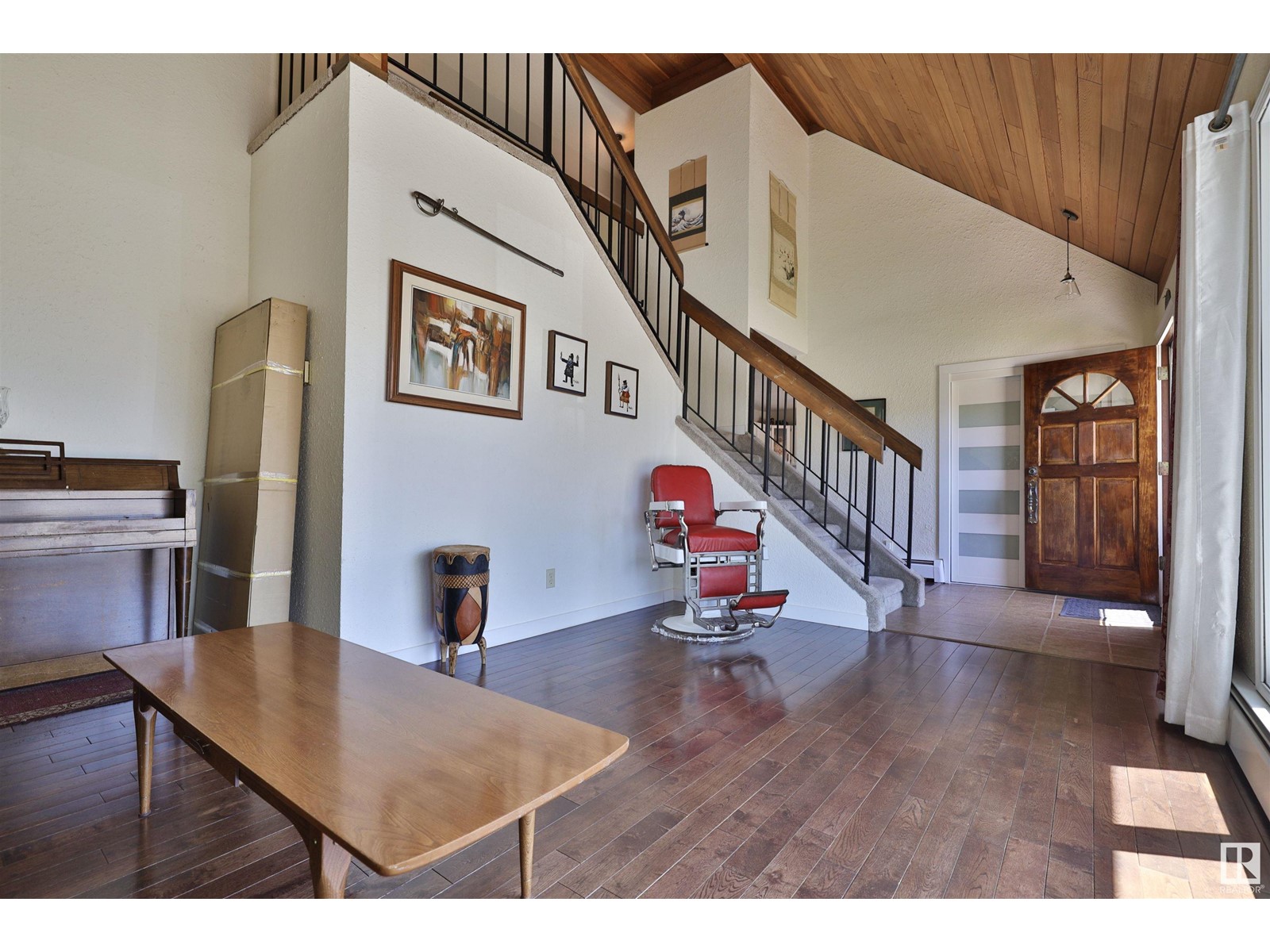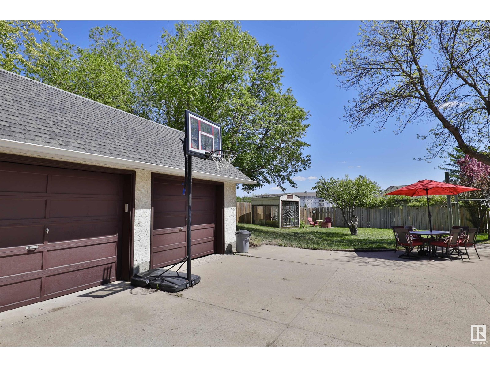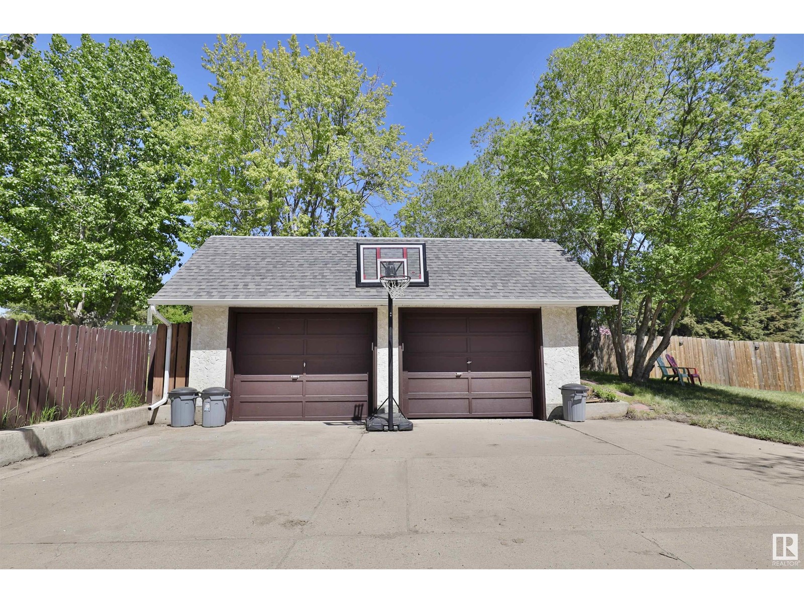 Welcome to this very well kept 1 & 1/2 storey home on a large pie shaped lot on Pine Drive. Main floor has a large kitchen with granite counter tops, family room, living room with real hardwood floors, den/office and laundry room with a 2 pc bathroom. Beautiful vaulted cedar clad ceiling and large front windows. There are 3 bedrooms upstairs, a full main bathroom and a 3 pc ensuite in the master bedroom. In the basement there is a fourth bedroom, T.V. room, a 3 pc bathroom with a jet tub and a large rec room. The private backyard has a over-sized double garage with concrete walls, excellent patio area, a few trees, including an apple tree and nice sloped lawn. (id:22211)