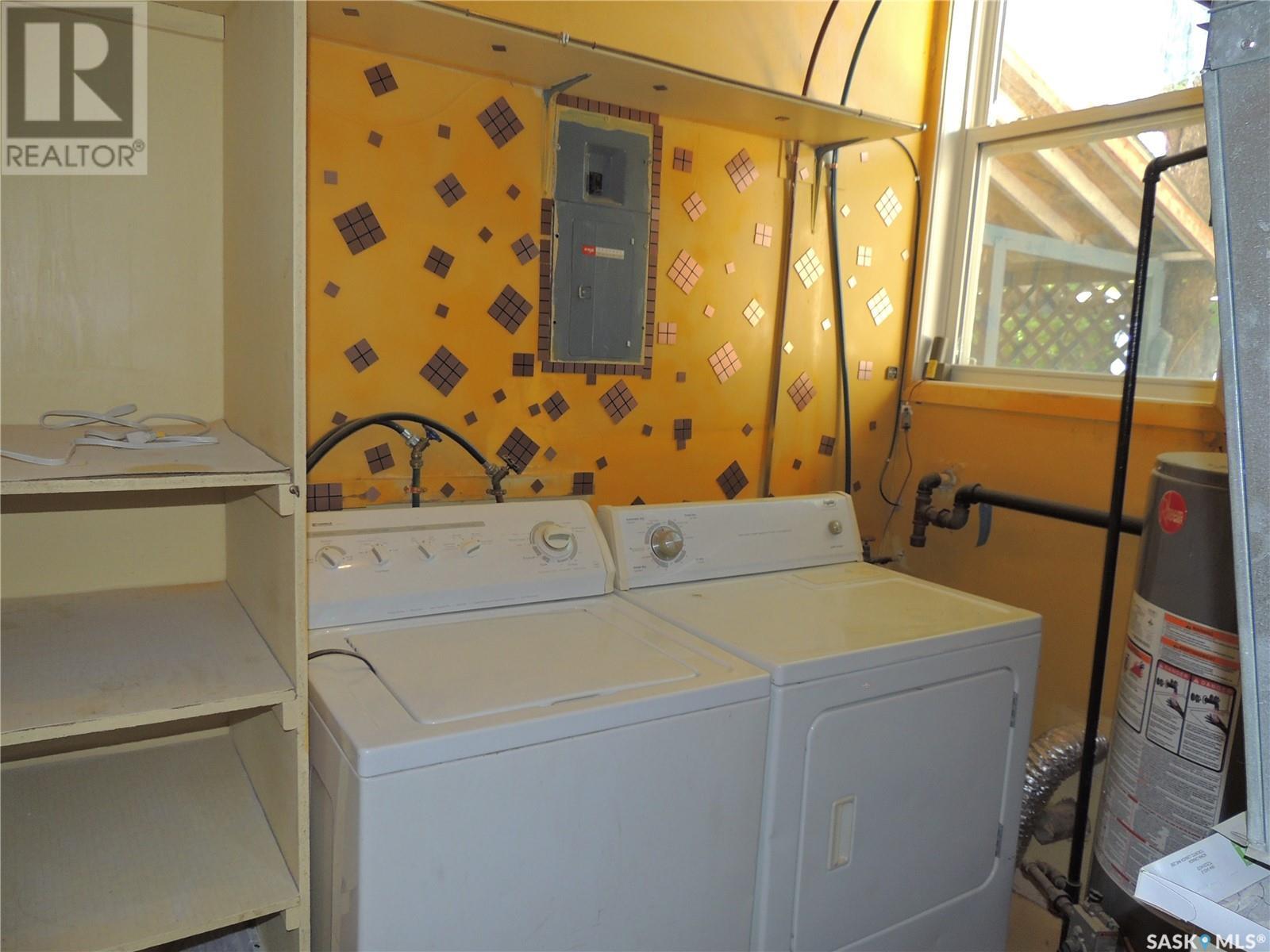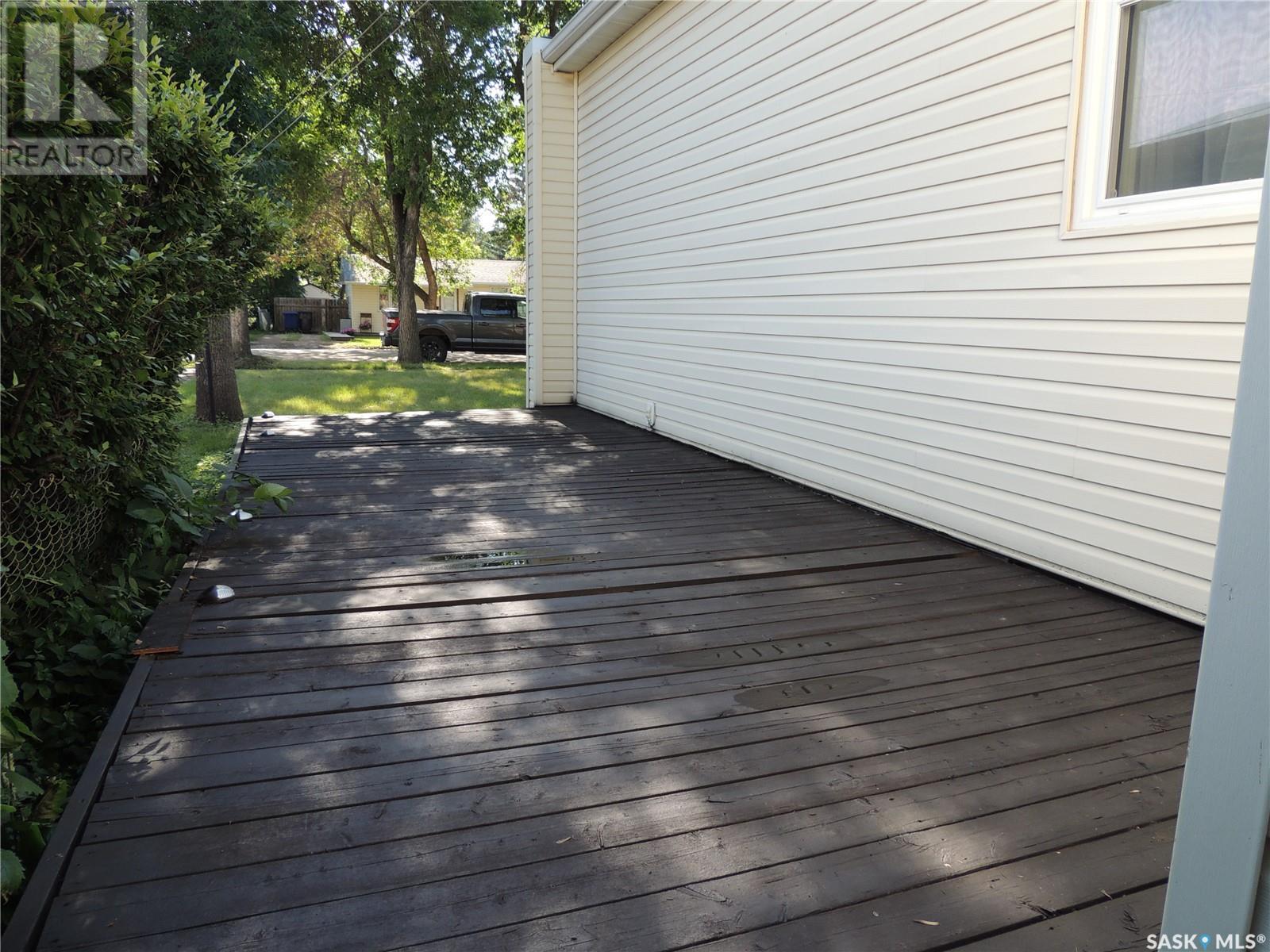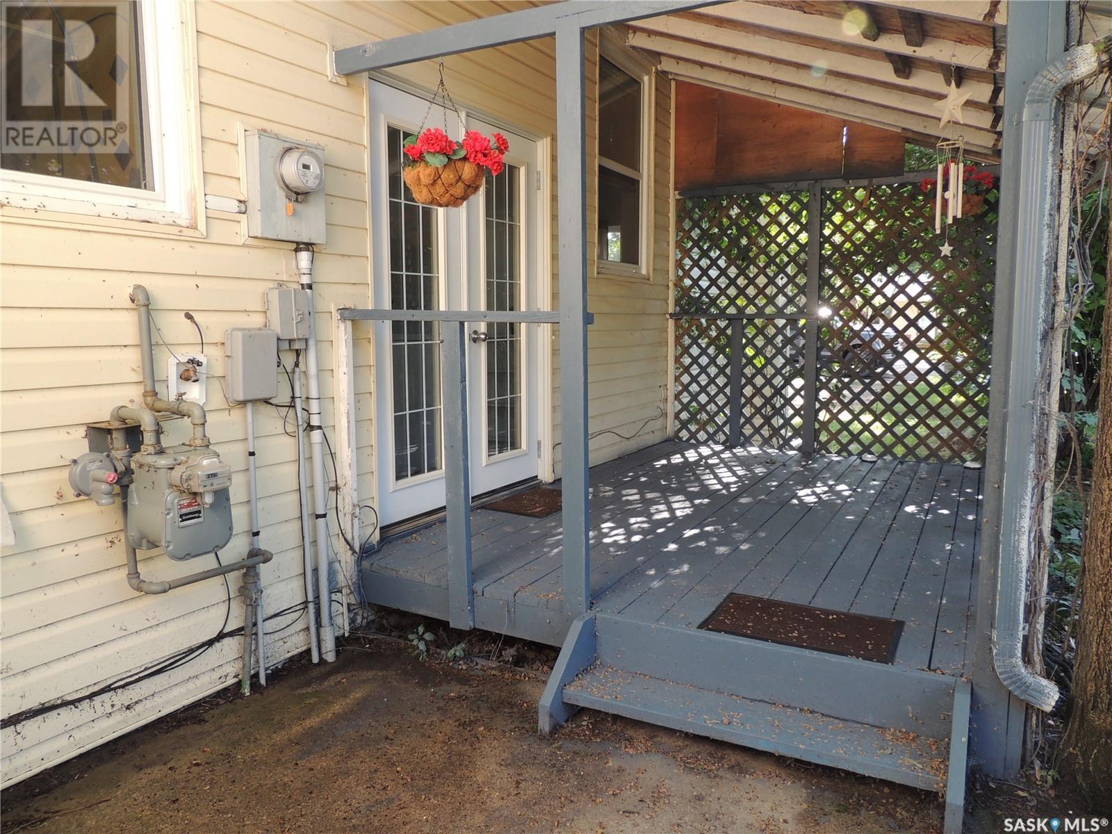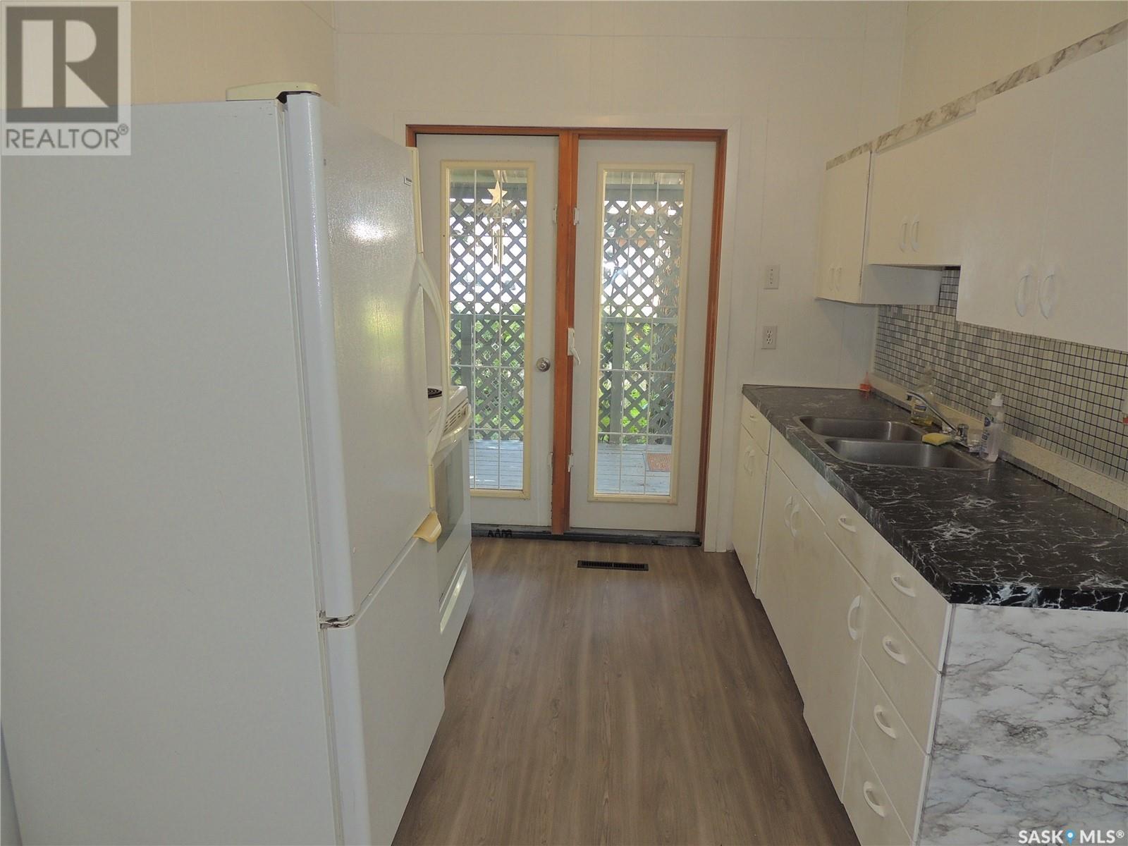 This home is ready to move into. The exterior has pvc windows, vinyl siding and metal roofing for low maintenance. The yard is well maintained with a large uncovered deck and another covered deck. The back yard is open and has a storage shed. You enter the home into the front living room. It is open to the dining room with the kitchen off to the side with direct access to the covered deck. The one bedroom has a side office off of it. There is an additional bedroom. The main floor laundry has the utilities in it. There is a 4 piece bathroom to complete this home. Water lines have been changed to plastic. (id:22211)