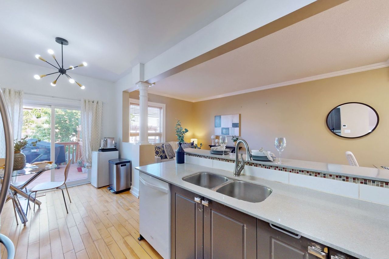 Located In The Desired Whitby Shores Community, This 3bdr & 4wr End Unit Townhouse Has An Open Concept Layout, With A Walk-out To A Large Deck For Entertaining. Quartz Counter Tops & Bfast Bar With B/I Shelving. Primary Bdrm Offers A 5 pc Ensuite And Spacious Walk-in Closet. 2nd Bdrm Offers 11Ft Ceilings And Lots Of Natural Light. 3rd Bdrm Has A Balcony, Balcony Door Was Replaced in May 2022. Other Updates include: Roof shingles (Oct 2020) Ducted Heat pump (Nov 2021) New Window in Primary Bdr (May 2022)