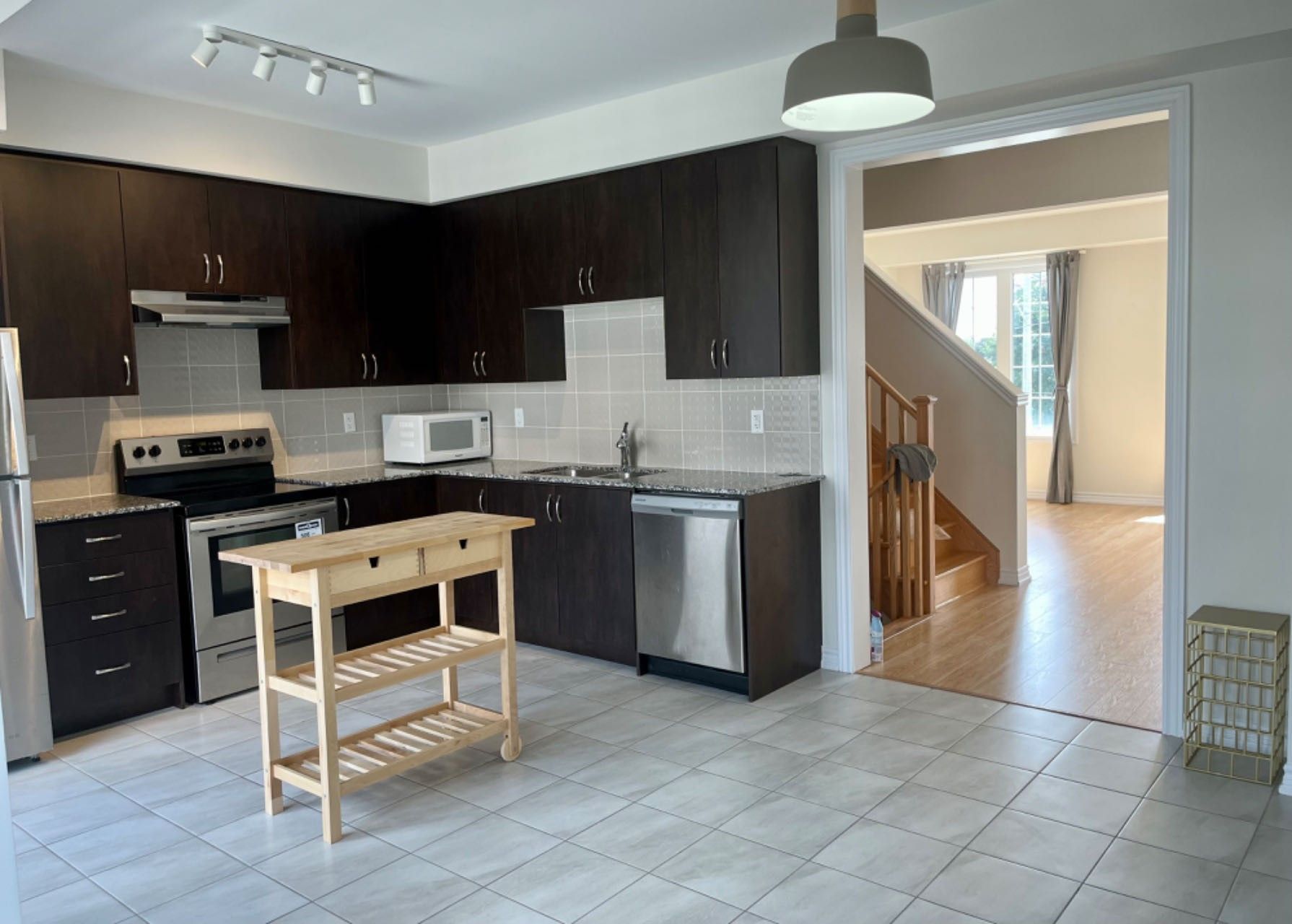 Spacious 3+1 Bedroom Modern Townhouse, Front and Rear Doors, Great/Office Room and Laundry Room On The Main Level, 9 Feet Ceiling, Open Concept Kitchen with Spacious Wood Terrace Area. Ensuite Main Bedroom With 7 Feet Sliding Door and Balcony. Walking Distance To Grocery Stores. 7mins Driving To Go Station, 12mins To Harbour Park, 16mins To Ski Resort; Close To Costco, Walmart Super Center, Hwy 412/401, Sports Center, Hospital and DT Whitby. Top Rank School.Stainless Steel Fridge, Stove, Dishwasher. Washer & Dryer. Central AC. Huge Hot Water Tank. The Tenants Pay All Utilities, Rent and Tenant Insurance.