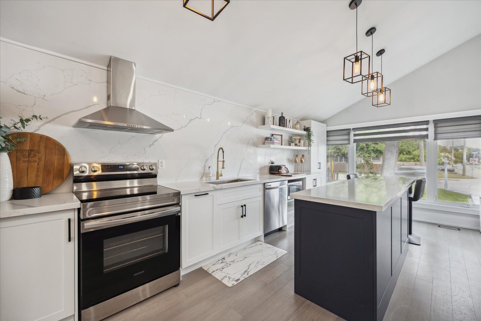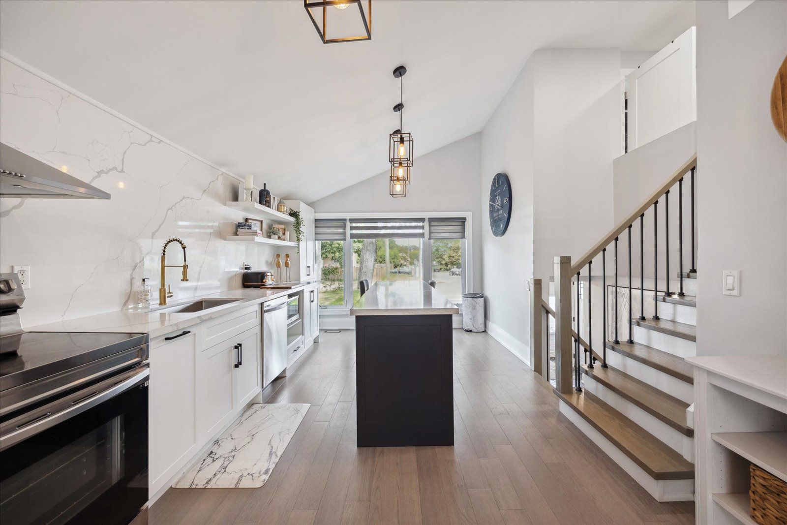 This One Of A Kind Unique Home on A 50 x 100 ft lot is a must see. Tastefully Renovated top to bottom with High End Finishes Keeping It's original Charm. Beautiful New Kitchen with Huge Island,Granite Counters/Backsplash and Newer Stainless Steel Appliances.Open Concept Living Room&Separate Dining o/l Private Backyard with 2 W/Os to Patio. Upstairs was 3 Bedrooms Converted To 2. Pot Lights in both bedrooms, Basement has cozy rec room. Outdoor pot lights, two 3 piece bathrooms and custom showers. Engineered hardwood flooring throughout the house. Fresh new exterior paint. Designer blinds.With Large Windows. Utility room w/double closet & laundry. New driveway&front&back landscaping. Downtown Vibe located in the heart of Downtown Whitby mins to the Go Train(commuters dream)major highways,schools,waterfront trails,shopping.