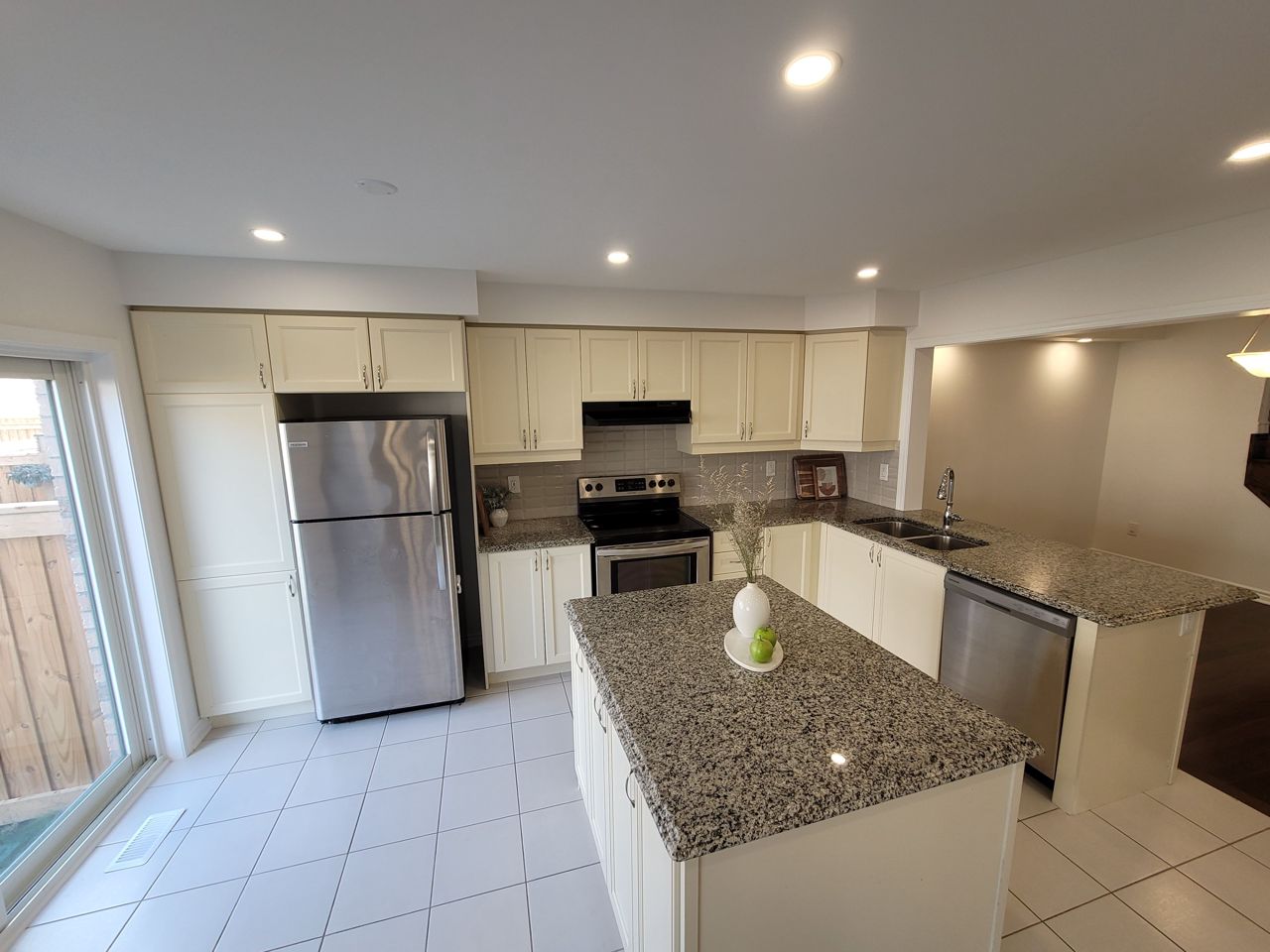 Beautiful Spacious Townhouse With 4 Bedrooms In Sought After Lynde Creek Community. Open Concept Layout. Upgraded Kitchen With Granite Countertop Breakfast Bar and Centre Island, W/O To Backyard. Hardwood Flooring Main Floor, Separate Dining, Family and Living Rooms, 2nd Floor Laundry Room, Master Bedroom With 4Pc Ensuite and Walk-in Closet. Upgraded Pot Lights On Main Floor, Lots Of Storage Space, Access To House From Garage. Easy Access To Hwy 401, 407, 412, Whitby GO, Schools, Shopping Plazas. New Park Located At The End Of The Street! Mandatory Tenant Insurance. Tenant Pays All Utilities. No smoking. Please indicate if tenant has pets or not.Fridge, Stove, Dishwasher, Washer And Dryer.