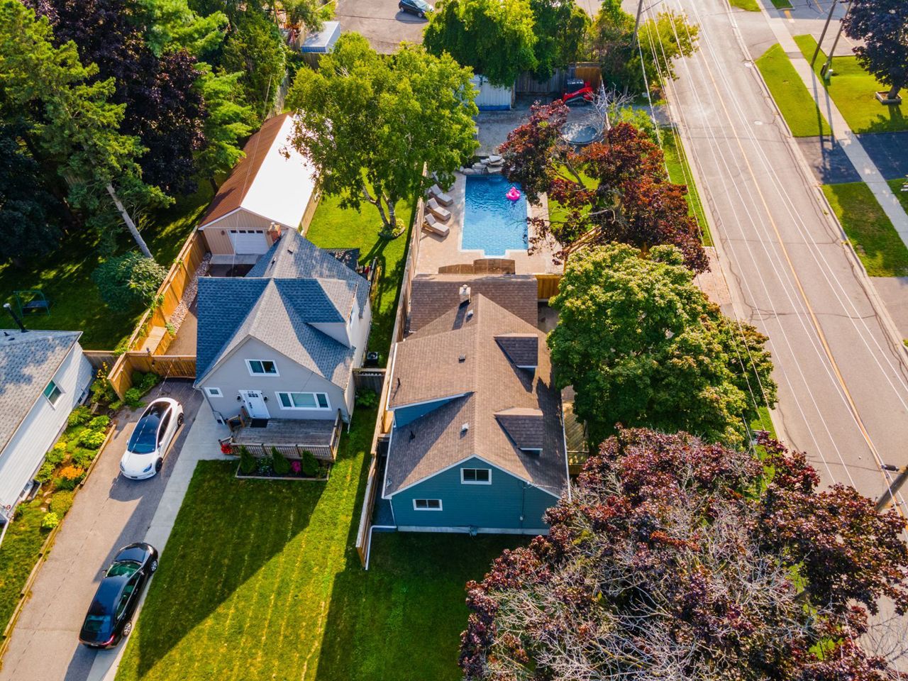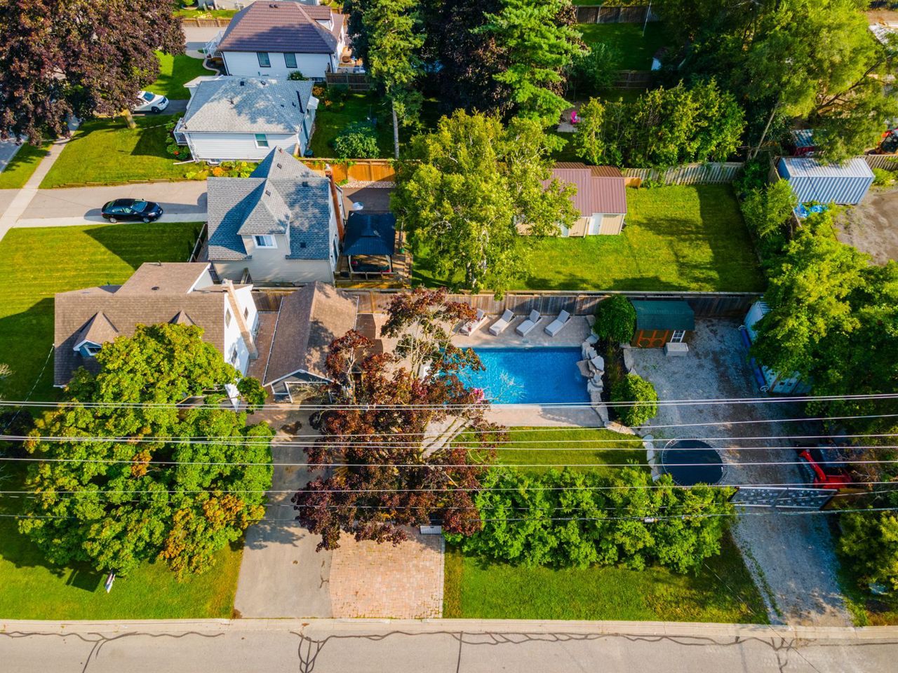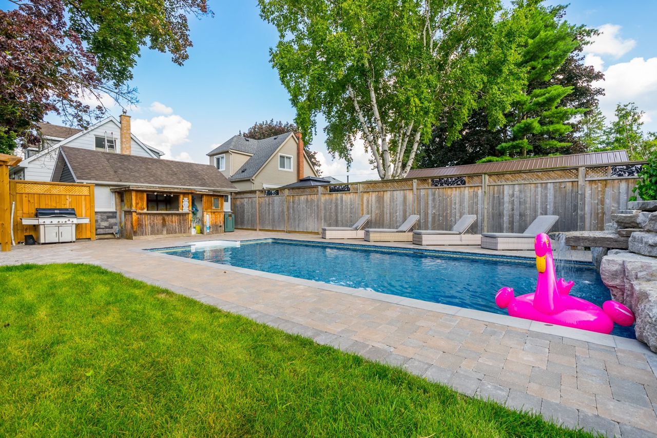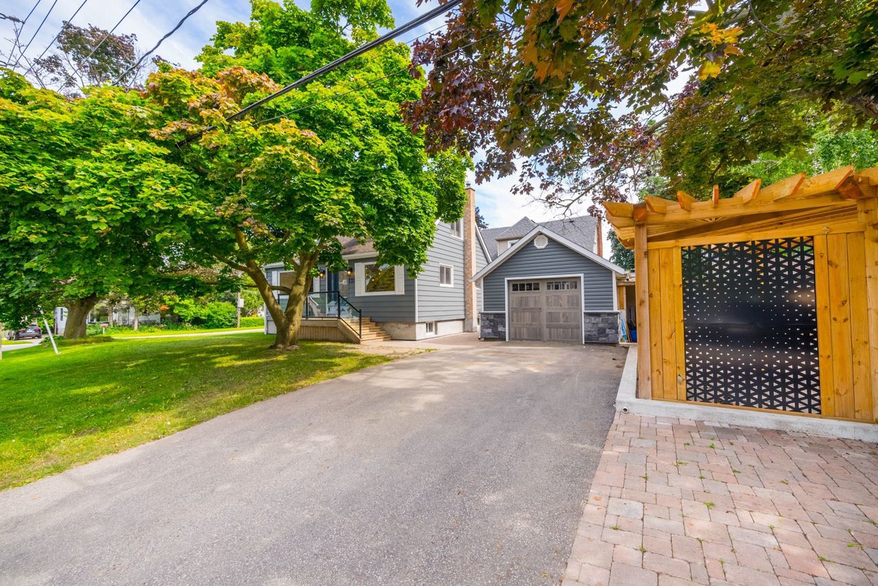 Wow! This absolutely stunning home sits on a premium 50x200 feet lot in Downtown Whitby and has been expertly and luxuriously finished from top to bottom! Enter into the open concept living, family, and dining area with new hardwood flooring, custom tiles, potlights, and a custom kitchen with carrera marble countertops, gas stove w/ dual ovens, pot filler, and wine bar. Head up the illuminated stairs to two fully renovated bedrooms with customized, built-in dressers and cabinetry, as well as a brand new 4 piece bathroom. The basement boasts an additional bedroom, den/family room, as well as a stunning three piece bathroom with customized glass shower and bench. Handyman's garage is fully insulated/heated w/ rough-in for water. Absolutely gorgeous backyard oasis feat 16x32 heated pool with armor stone waterfall, pool lights, cabana, shed, new fence and gazebo! Double-wide gate at the side of the property is perfect for RV, trailer, construction equipment or build an additional dwelling!Everything is new/professionally installed! Full reno (2021-2023), Furnace (2023), A/C (2023), Electrical (2021), spray foam (2021), windows (2021), pot lights (2021), custom tile/hardwood (2021-2023), garage siding (2023). List attached.