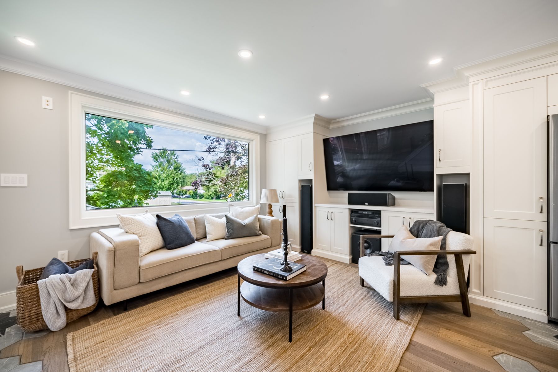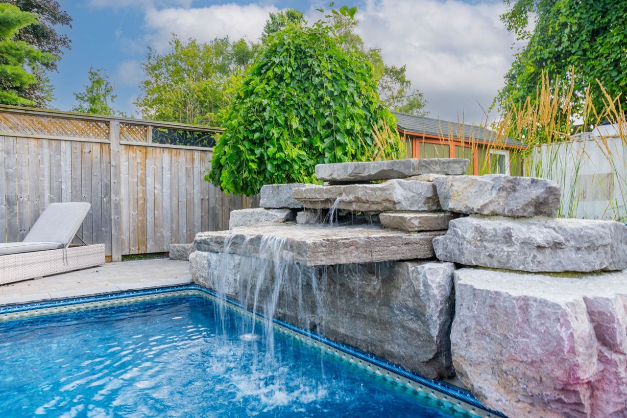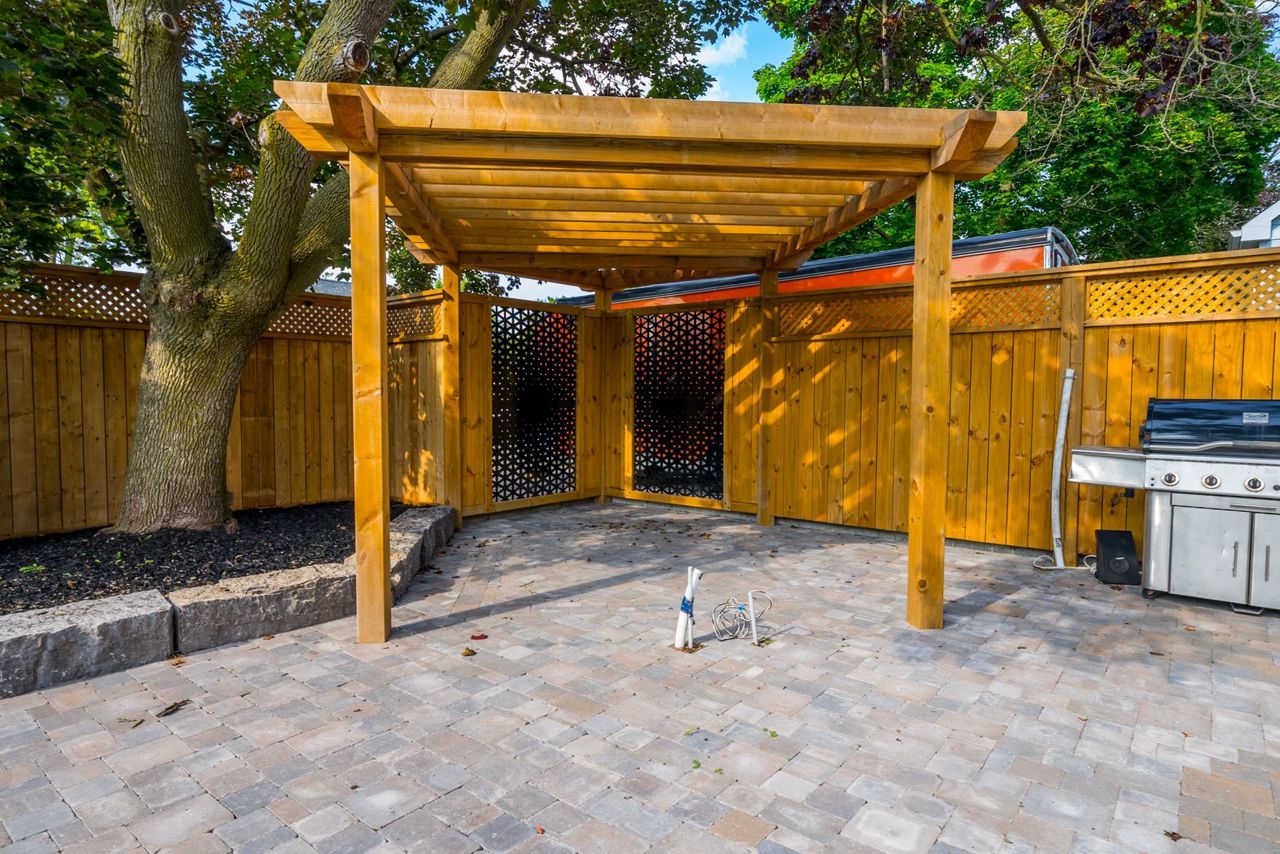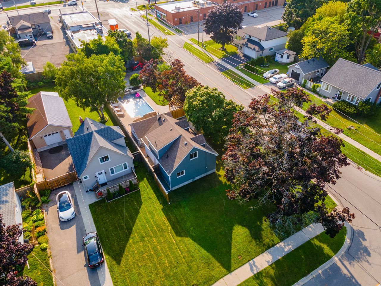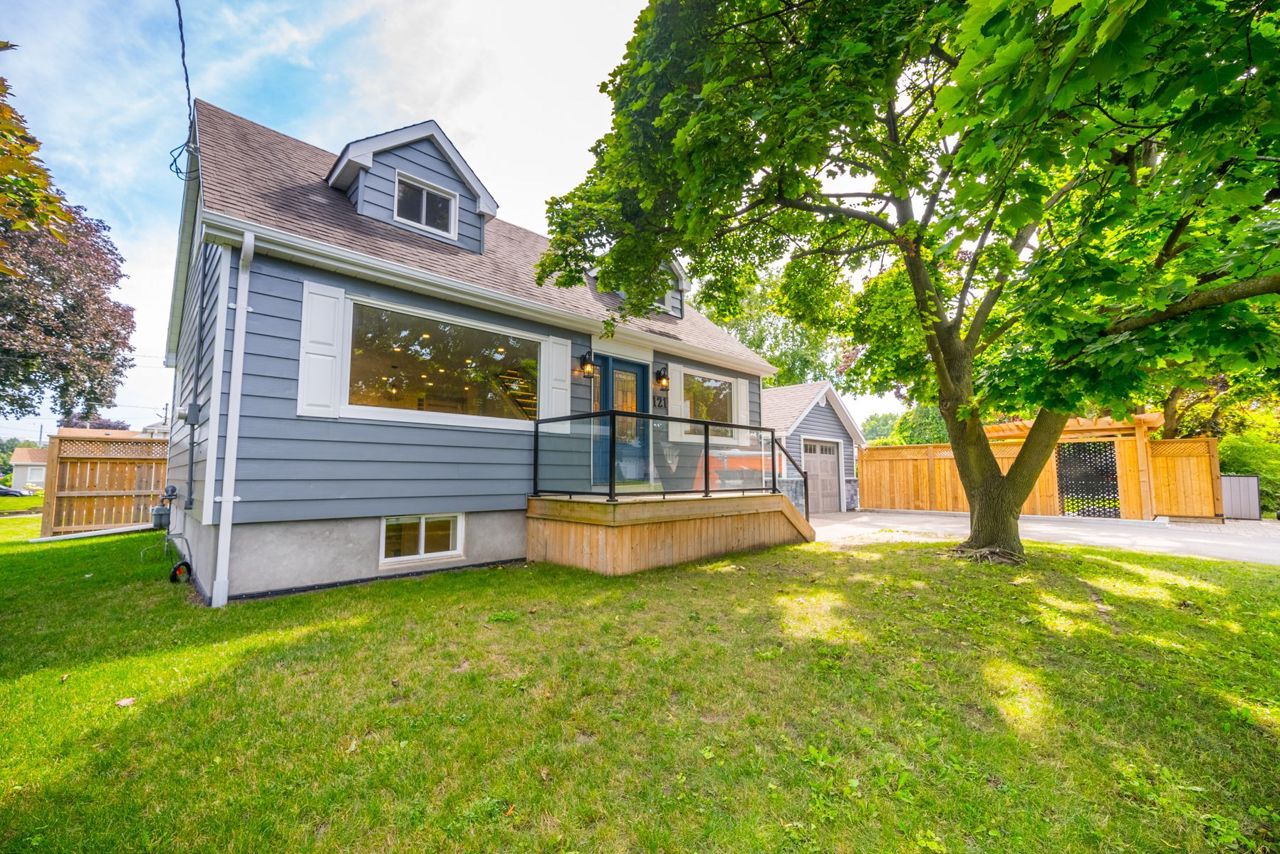 Wow! This absolutely stunning home sits on a premium 50x200 feet lot in Downtown Whitby and has been expertly and luxuriously finished from top to bottom! Enter into the open concept living, family, and dining area with new hardwood flooring, custom tiles, potlights, and a custom kitchen with carrera marble countertops, gas stove w/ dual ovens, pot filler, and wine bar. Head up the illuminated stairs to two fully renovated bedrooms with customized, built-in dressers and cabinetry, as well as a brand new 4 piece bathroom. The basement boasts an additional bedroom, den/family room, as well as a stunning three piece bathroom with customized glass shower and bench. Handyman's garage is fully insulated/heated w/ rough-in for water. Absolutely gorgeous backyard oasis feat 16x32 heated pool with armor stone waterfall, pool lights, cabana, shed, new fence and gazebo! Double-wide gate at the side of the property is perfect for RV, trailer, construction equipment or build an additional dwelling!Everything is new/professionally installed! Full reno (2021-2023), Furnace (2023), A/C (2023), Electrical (2021), spray foam (2021), windows (2021), pot lights (2021), custom tile/hardwood (2021-2023), garage siding (2023). List attached.