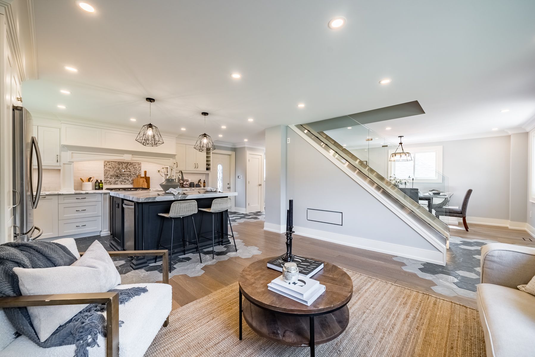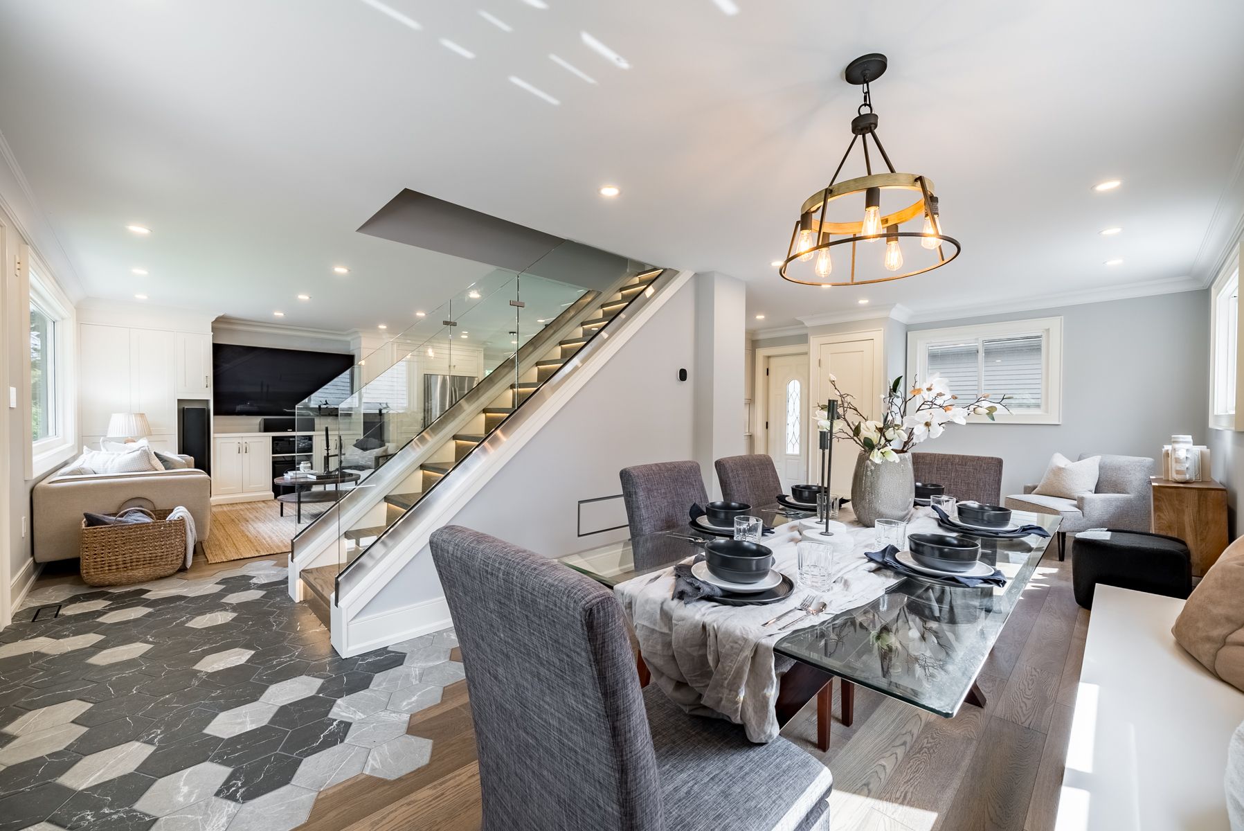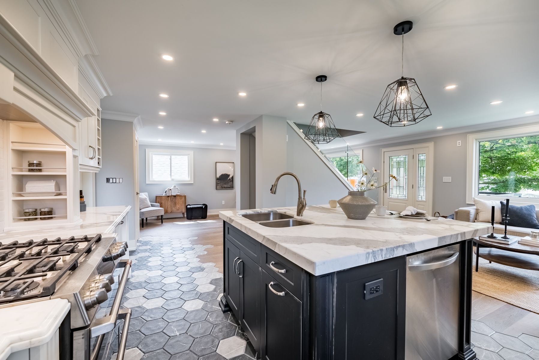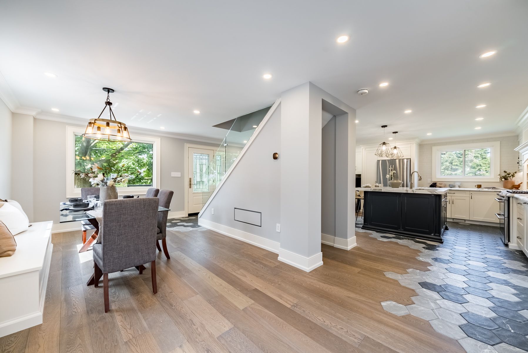 Wow! This absolutely stunning home sits on a premium 50x200 feet lot in Downtown Whitby and has been expertly and luxuriously finished from top to bottom! Enter into the open concept living, family, and dining area with new hardwood flooring, custom tiles, potlights, and a custom kitchen with carrera marble countertops, gas stove w/ dual ovens, pot filler, and wine bar. Head up the illuminated stairs to two fully renovated bedrooms with customized, built-in dressers and cabinetry, as well as a brand new 4 piece bathroom. The basement boasts an additional bedroom, den/family room, as well as a stunning three piece bathroom with customized glass shower and bench. Handyman's garage is fully insulated/heated w/ rough-in for water. Absolutely gorgeous backyard oasis feat 16x32 heated pool with armor stone waterfall, pool lights, cabana, shed, new fence and gazebo! Double-wide gate at the side of the property is perfect for RV, trailer, construction equipment or build an additional dwelling!Everything is new/professionally installed! Full reno (2021-2023), Furnace (2023), A/C (2023), Electrical (2021), spray foam (2021), windows (2021), pot lights (2021), custom tile/hardwood (2021-2023), garage siding (2023). List attached.