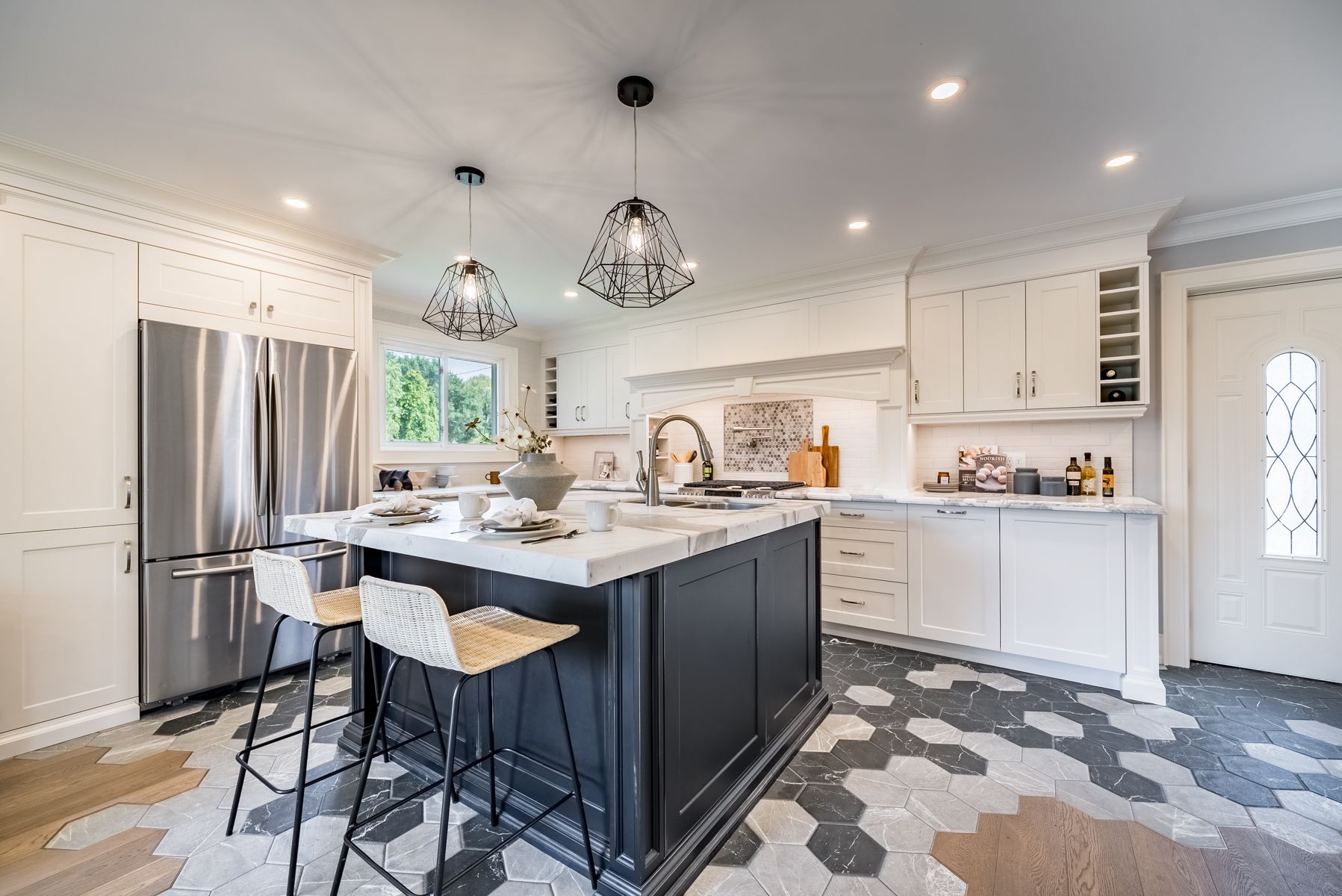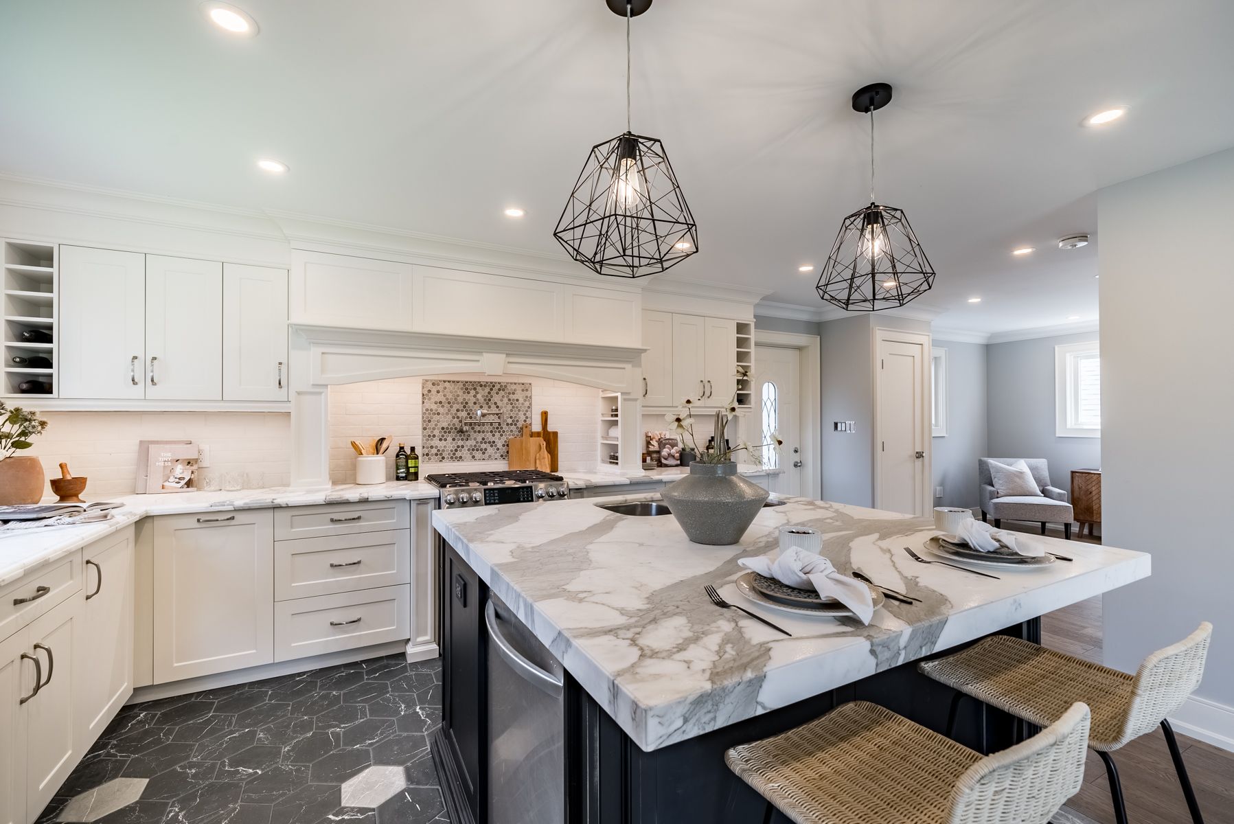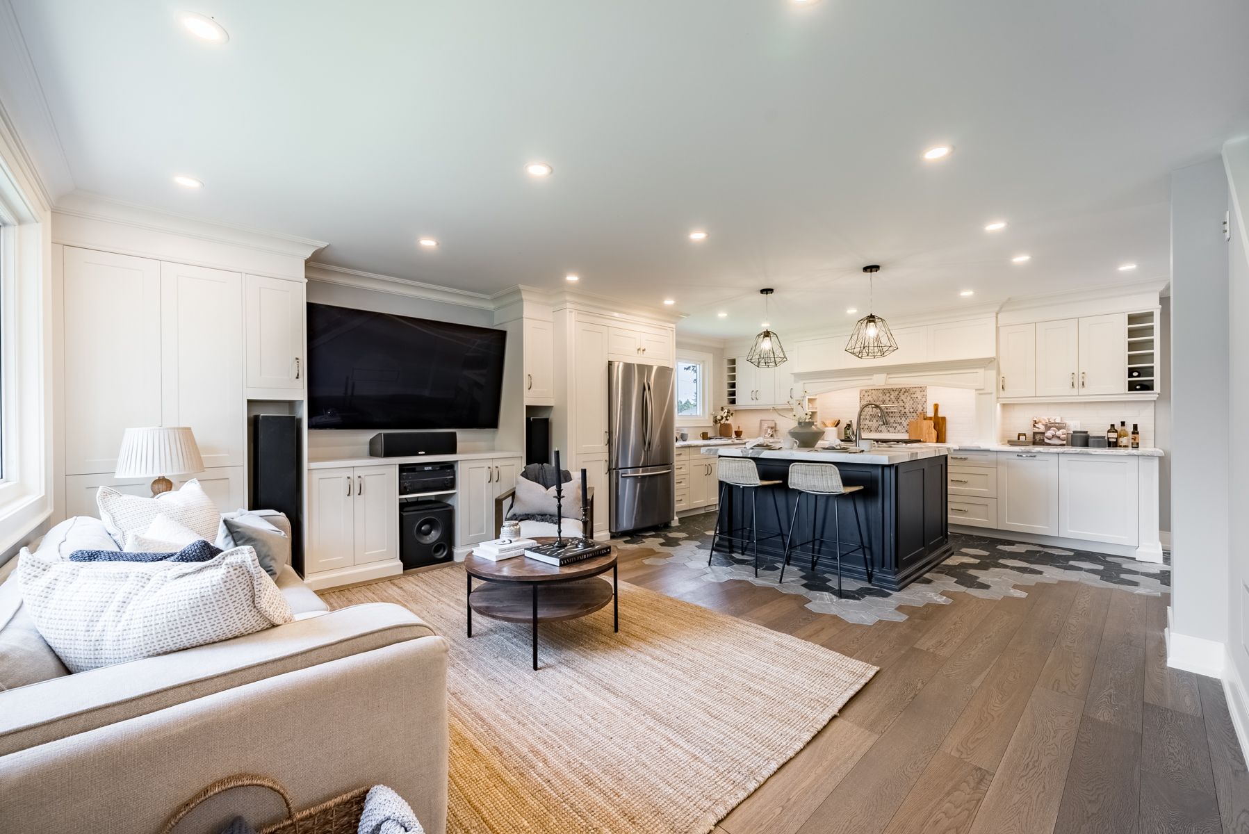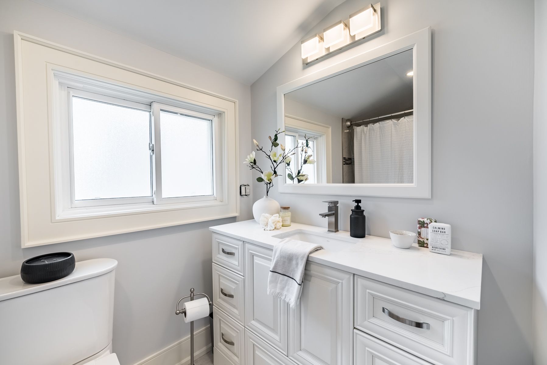 Wow! This absolutely stunning home sits on a premium 50x200 feet lot in Downtown Whitby and has been expertly and luxuriously finished from top to bottom! Enter into the open concept living, family, and dining area with new hardwood flooring, custom tiles, potlights, and a custom kitchen with carrera marble countertops, gas stove w/ dual ovens, pot filler, and wine bar. Head up the illuminated stairs to two fully renovated bedrooms with customized, built-in dressers and cabinetry, as well as a brand new 4 piece bathroom. The basement boasts an additional bedroom, den/family room, as well as a stunning three piece bathroom with customized glass shower and bench. Handyman's garage is fully insulated/heated w/ rough-in for water. Absolutely gorgeous backyard oasis feat 16x32 heated pool with armor stone waterfall, pool lights, cabana, shed, new fence and gazebo! Double-wide gate at the side of the property is perfect for RV, trailer, construction equipment or build an additional dwelling!Everything is new/professionally installed! Full reno (2021-2023), Furnace (2023), A/C (2023), Electrical (2021), spray foam (2021), windows (2021), pot lights (2021), custom tile/hardwood (2021-2023), garage siding (2023). List attached.