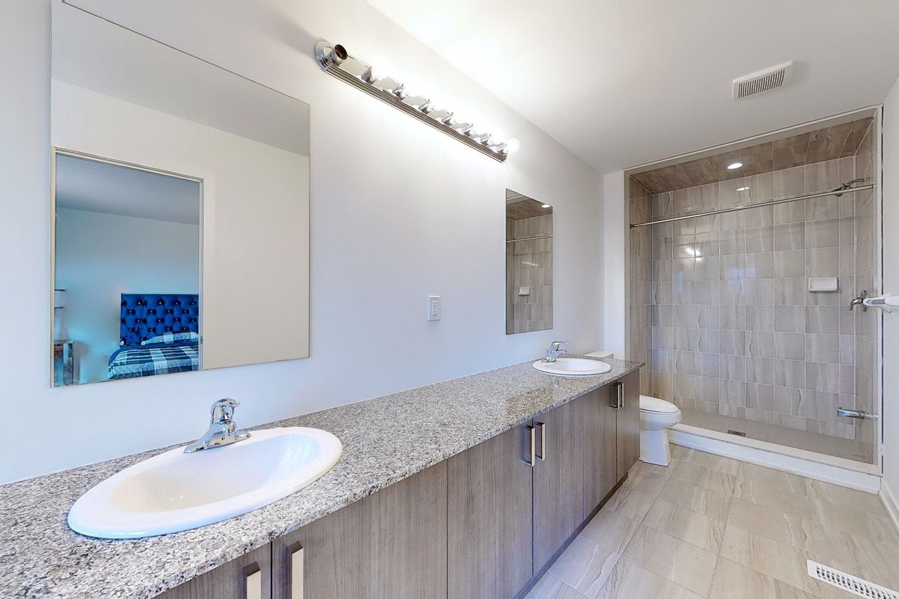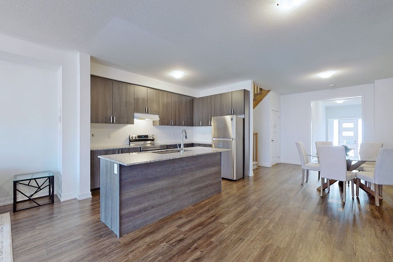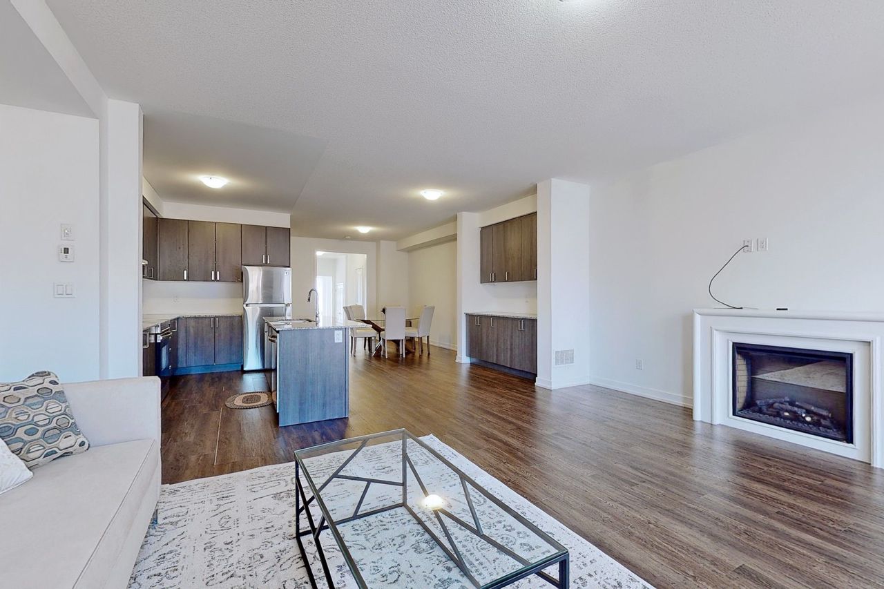 VERY MODERN AND SPACIOUS FREEHOLD TOWNHOUSE IN PRESTIGIOUS WILLIAMSBURG COMMUNITY, OVER 2000 SQ. FT OF LIVING SPACE, 9' CEILINGS ON MAIN, BRIGHT, SPACIOUS, OPEN CONCEPT, LARGE WINDOWS THROUGHOUT, FIREPLACE, HIS/HER WALK-IN CLOSESTS IN PRIMARY BR, 2ND FLOOR LAUNDRY, ALL AMENITIES AT WALKING DISTANCE: SUPERSTORE, WALMART, COFFEE, BANKS, ETC. CLOSE ACCESS TO BUS STOP.BUILDER TO COMPLETE THE GRASS NEXT TO THE DRIVEWAY, SOD & WALK OUT DECK. FULLY TARION WARRANTIED HOME. ALL APPLIANCES ARE NEW . LARGE UPR LAUNDRY.