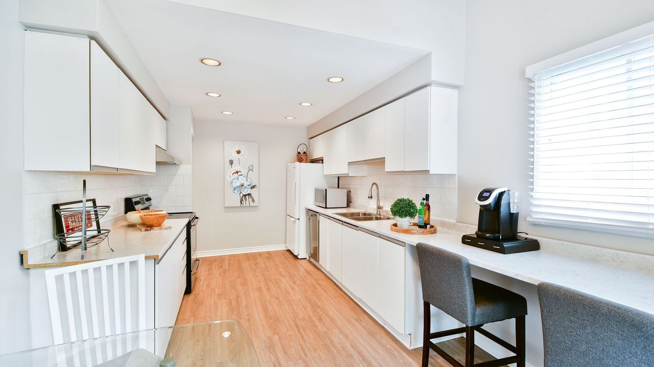 Breakfast Bar O/Looks Backyard Eat-In Kitchen