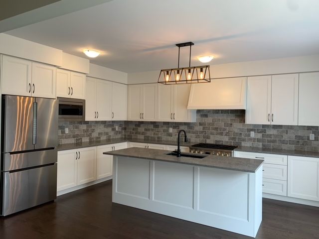 NEWLY BUILT 2 STOREY DETACHED HOUSE FOR RENT – Large house model in neighborhood (3251sqft). 4 bedrooms/4.5 baths. Each bdrm with ensuite with master having a 5-pc ensuite. Newly fenced backyard. Open concept kitchen with luxury stainless appliances with a gas range. Hardwood flooring and granite counters with stone backsplash in the kitchen. Located on a quiet street in a family friendly neighborhood within close walking distance to a future park.