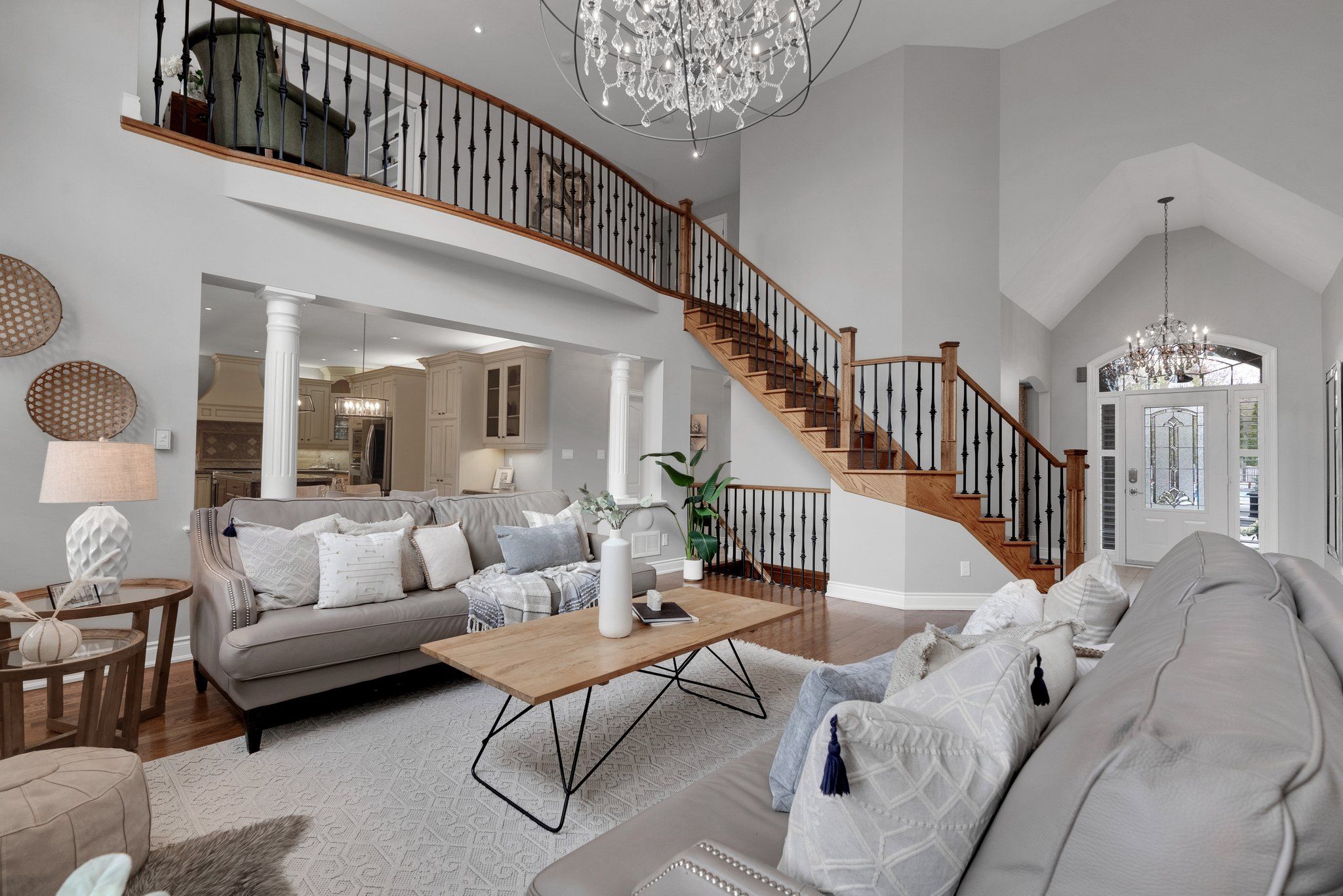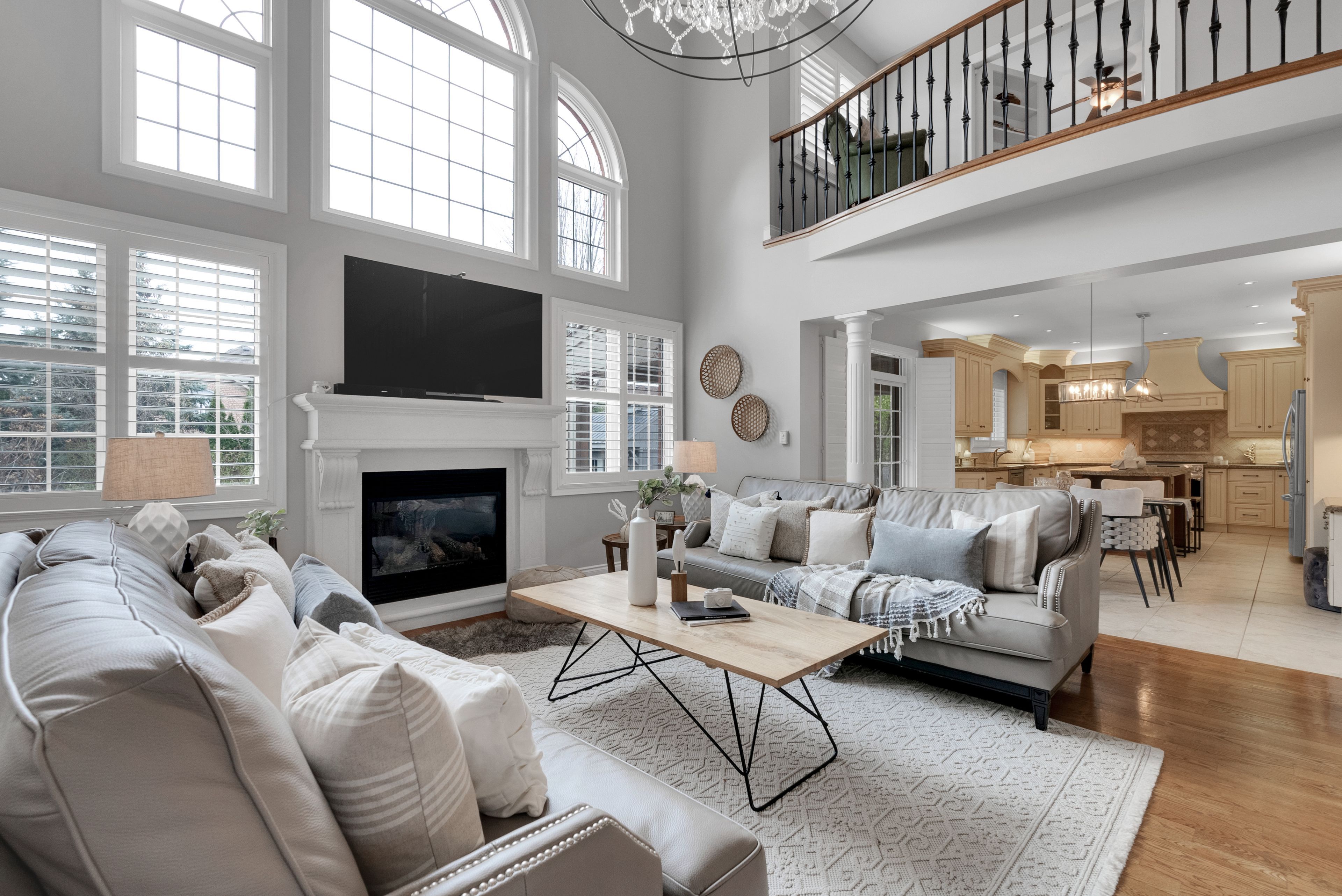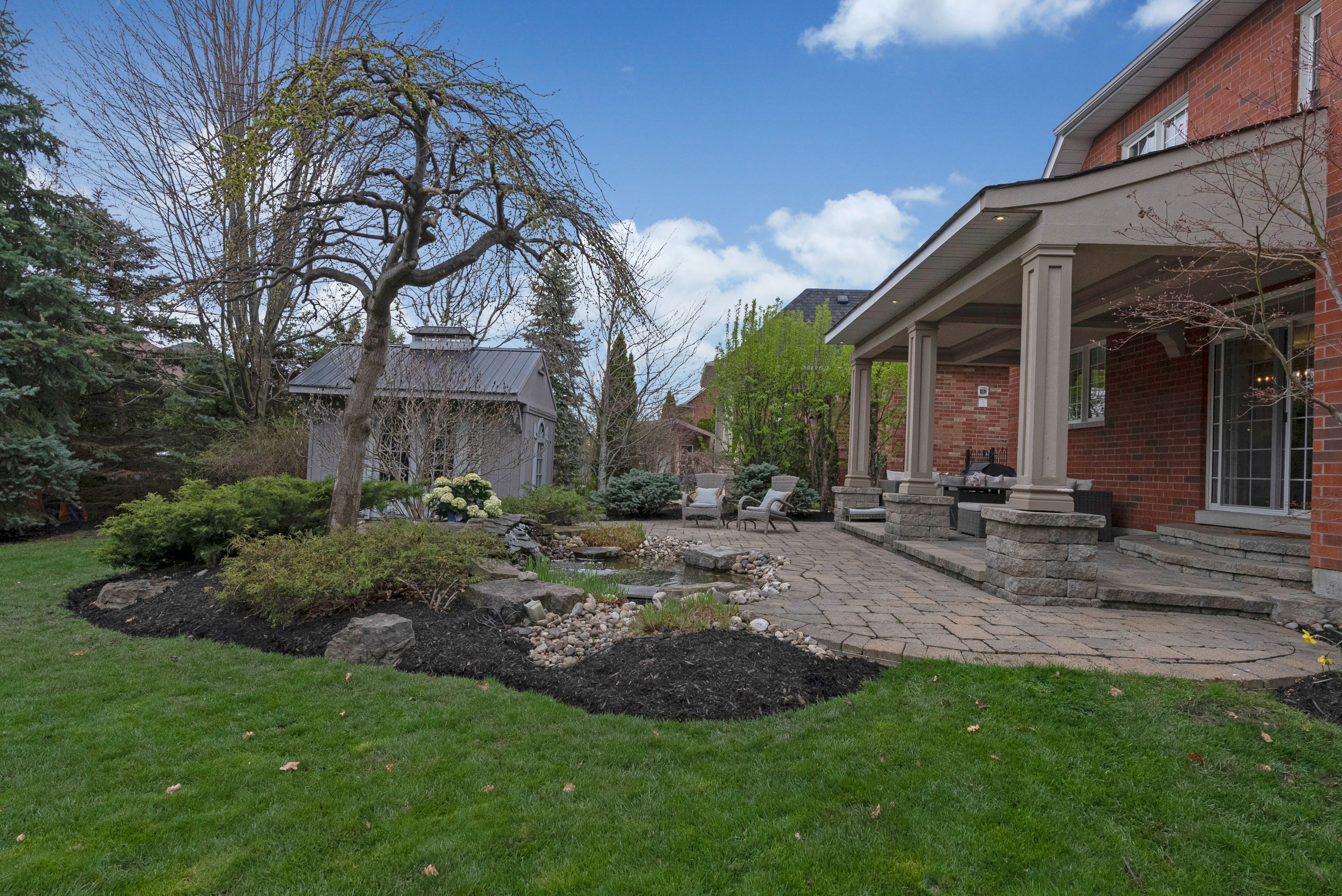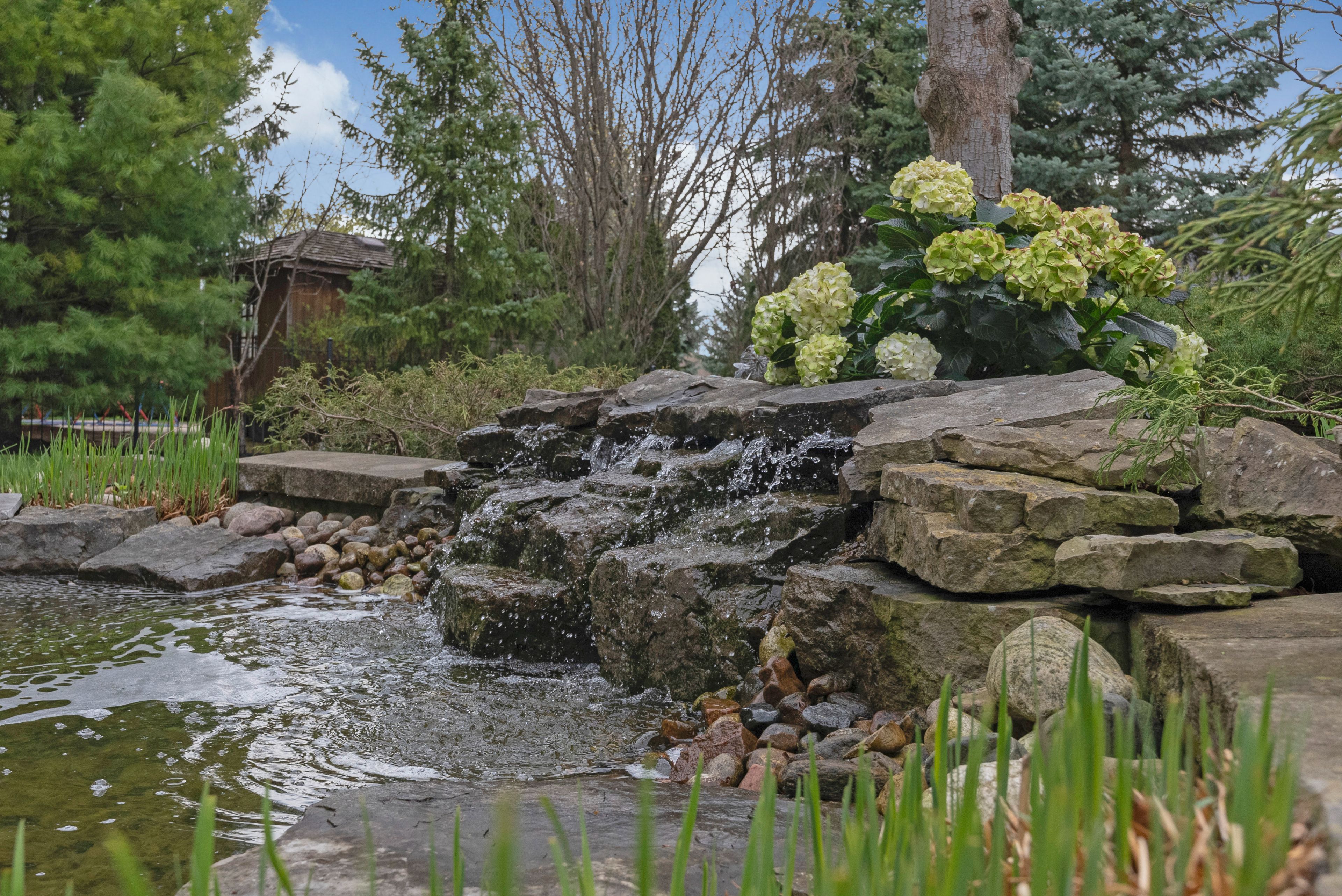 Indulge in luxury living in this exquisite Williamsburg bungaloft. This Delta Rae Home exudes sophistication and warmth. The open-concept layout integrates the ktchen, dining and living spacs, fostering an atmosphere of connectivity and effortless entertaining. Vaulted ceilings and 2-dtorey windows usher in an abundance of natural light. Gourmet kitchen with stainless steel appliances, two ovens, custom cabinetry and premium finishes. A spacious island and gleaming granite countertops provide ample space for meal preparation and casual dining. Retreat to the primary bedroom sanctuary with ensuite and walk-in closet. Upstairs, discover a versatile hidden room adaptable to your lifestyle and large bedrooms. Your private outdoor oasis is complete with a waterfall, koi pond, expansive patio, loggia, and lush landscaping. Your luxury living extends into the finnished basement:familyroom, fireplace, bar, bedroom, ensuite, office, gym.All kitchen appliances, washer/dryer, all ELF, bar fridge/microwave