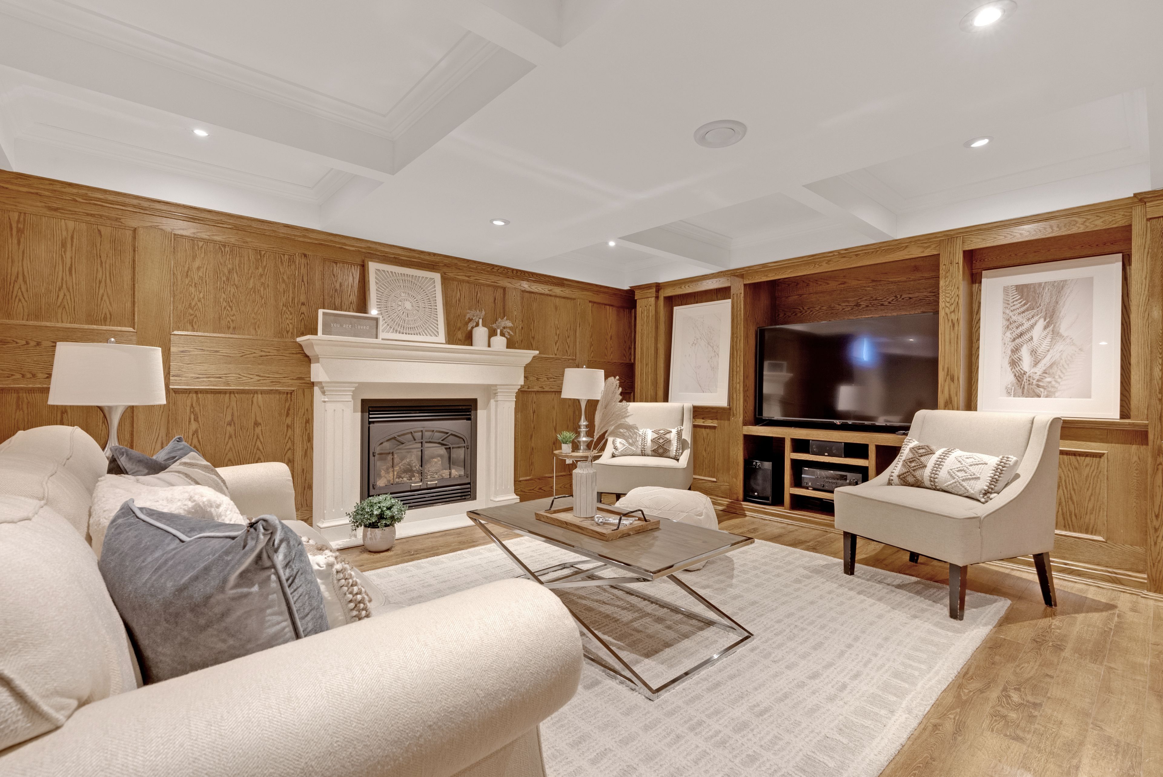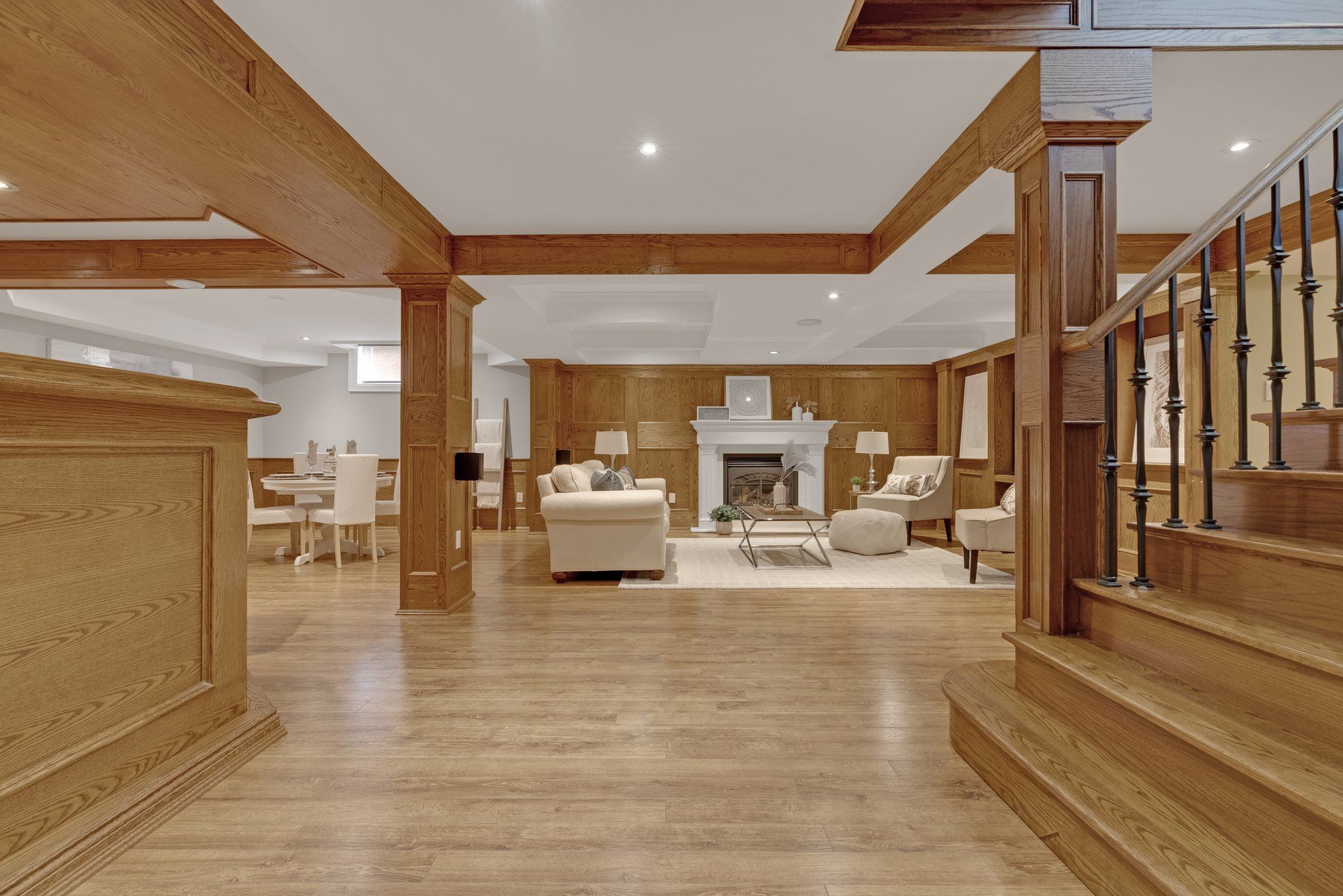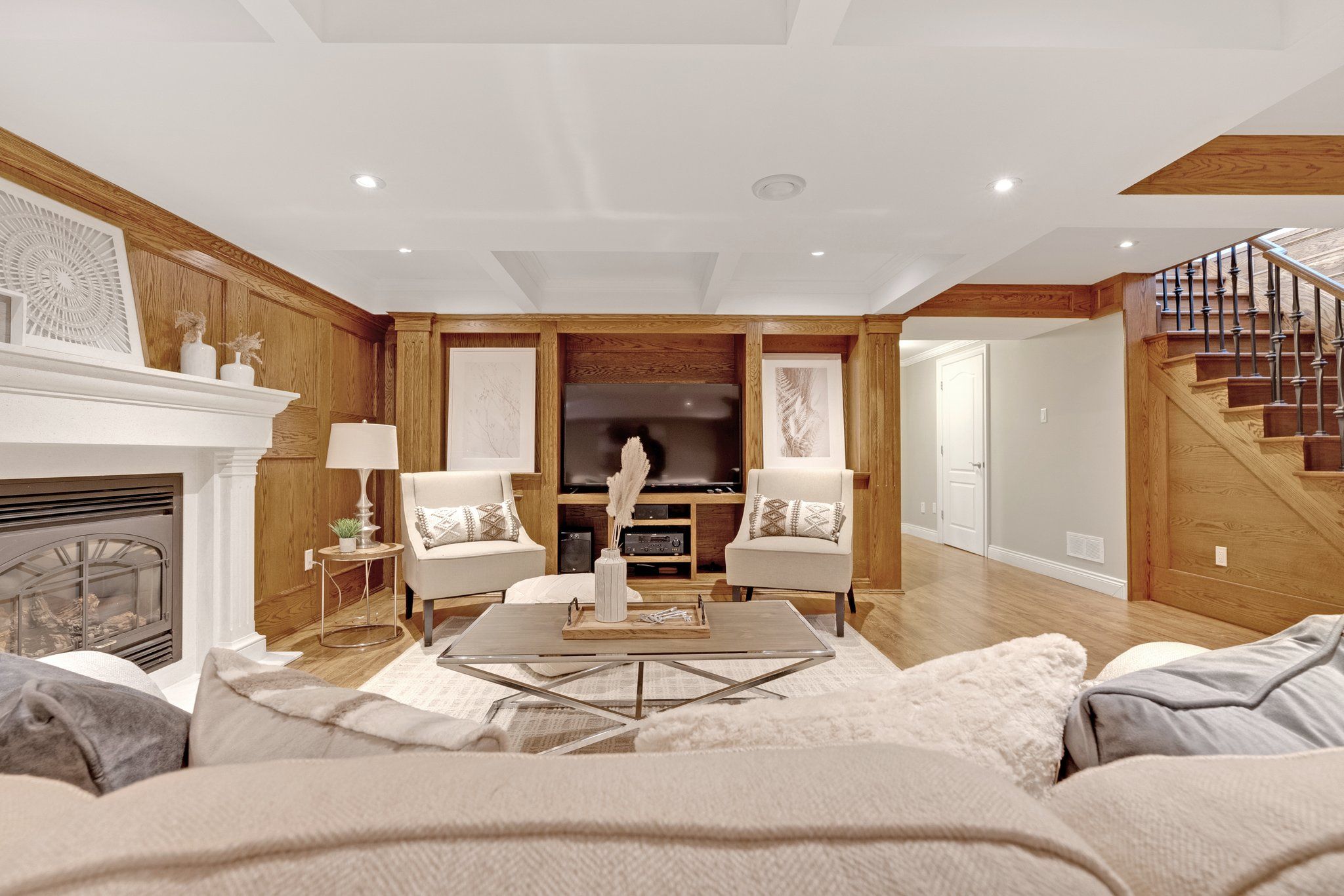 Indulge in luxury living in this exquisite Williamsburg bungaloft. This Delta Rae Home exudes sophistication and warmth. The open-concept layout integrates the ktchen, dining and living spacs, fostering an atmosphere of connectivity and effortless entertaining. Vaulted ceilings and 2-dtorey windows usher in an abundance of natural light. Gourmet kitchen with stainless steel appliances, two ovens, custom cabinetry and premium finishes. A spacious island and gleaming granite countertops provide ample space for meal preparation and casual dining. Retreat to the primary bedroom sanctuary with ensuite and walk-in closet. Upstairs, discover a versatile hidden room adaptable to your lifestyle and large bedrooms. Your private outdoor oasis is complete with a waterfall, koi pond, expansive patio, loggia, and lush landscaping. Your luxury living extends into the finnished basement:familyroom, fireplace, bar, bedroom, ensuite, office, gym.All kitchen appliances, washer/dryer, all ELF, bar fridge/microwave