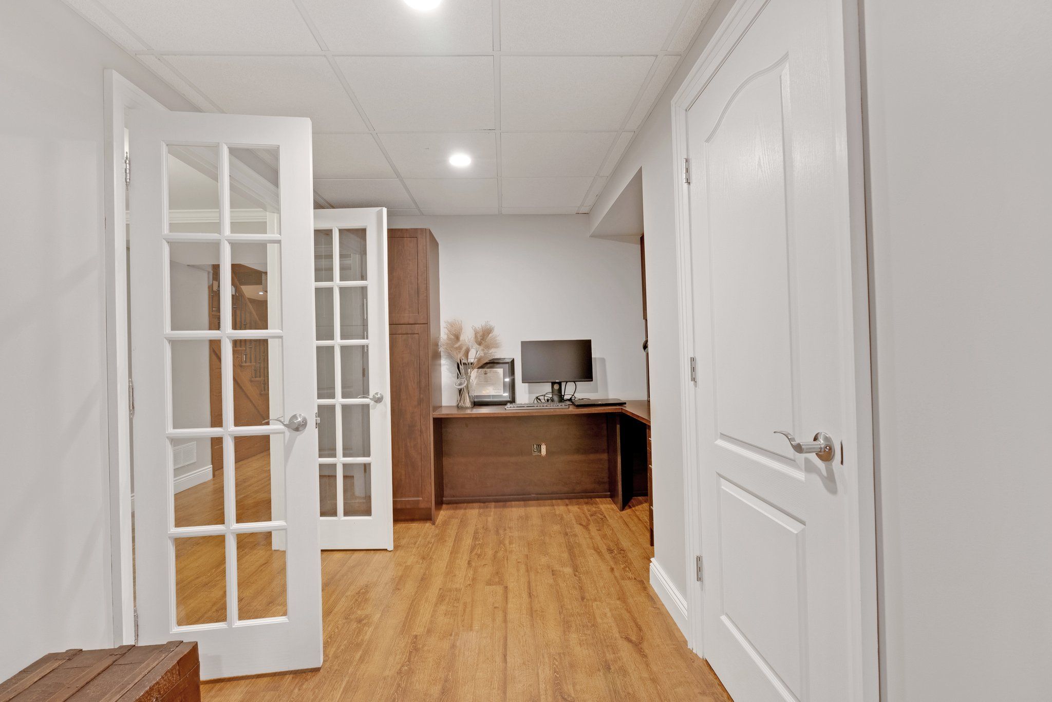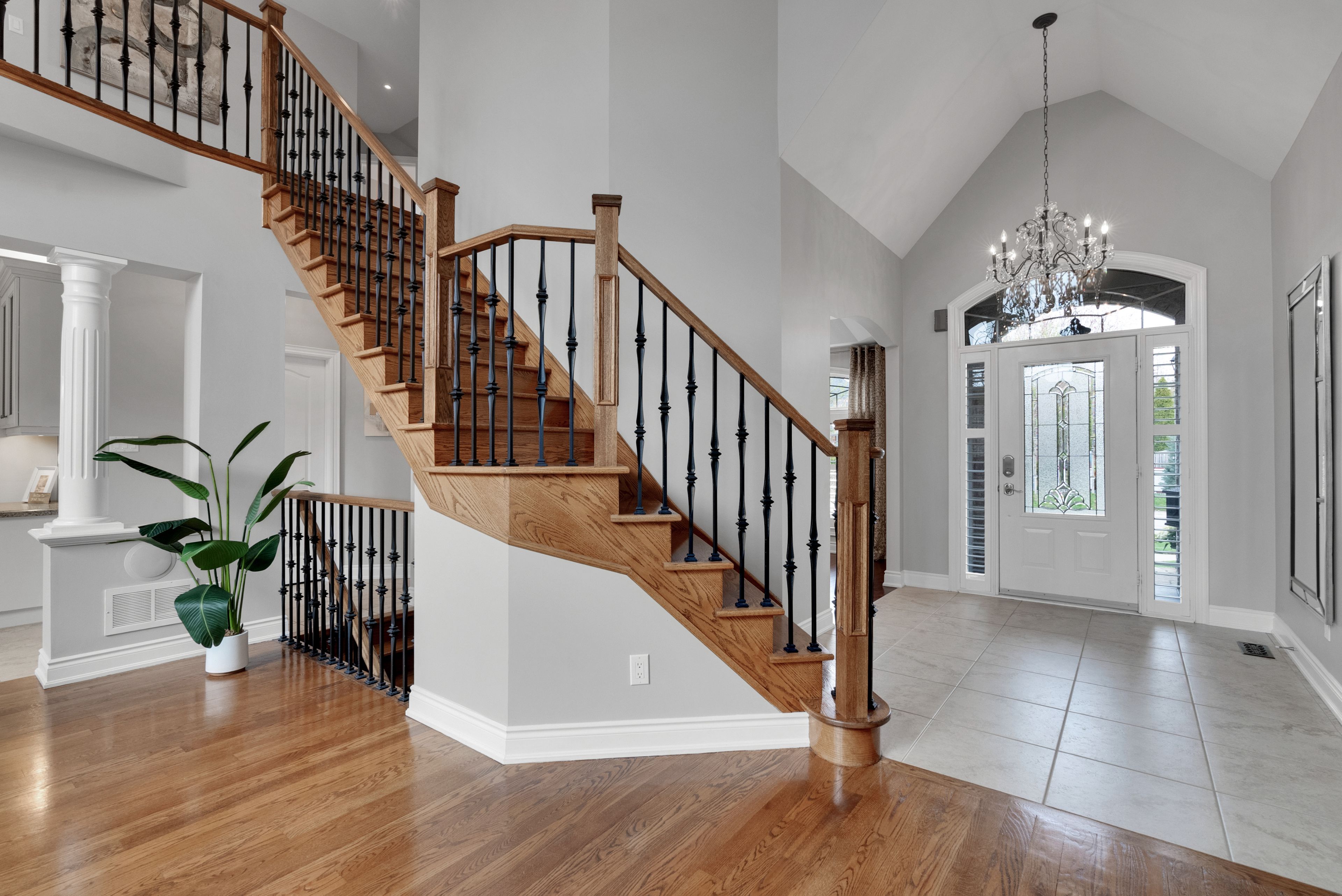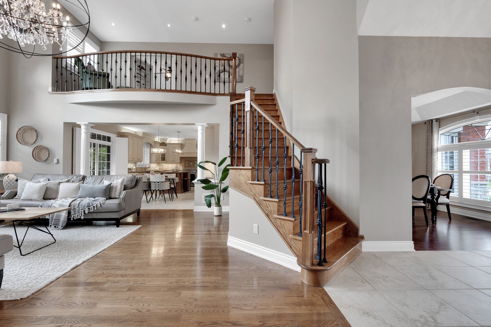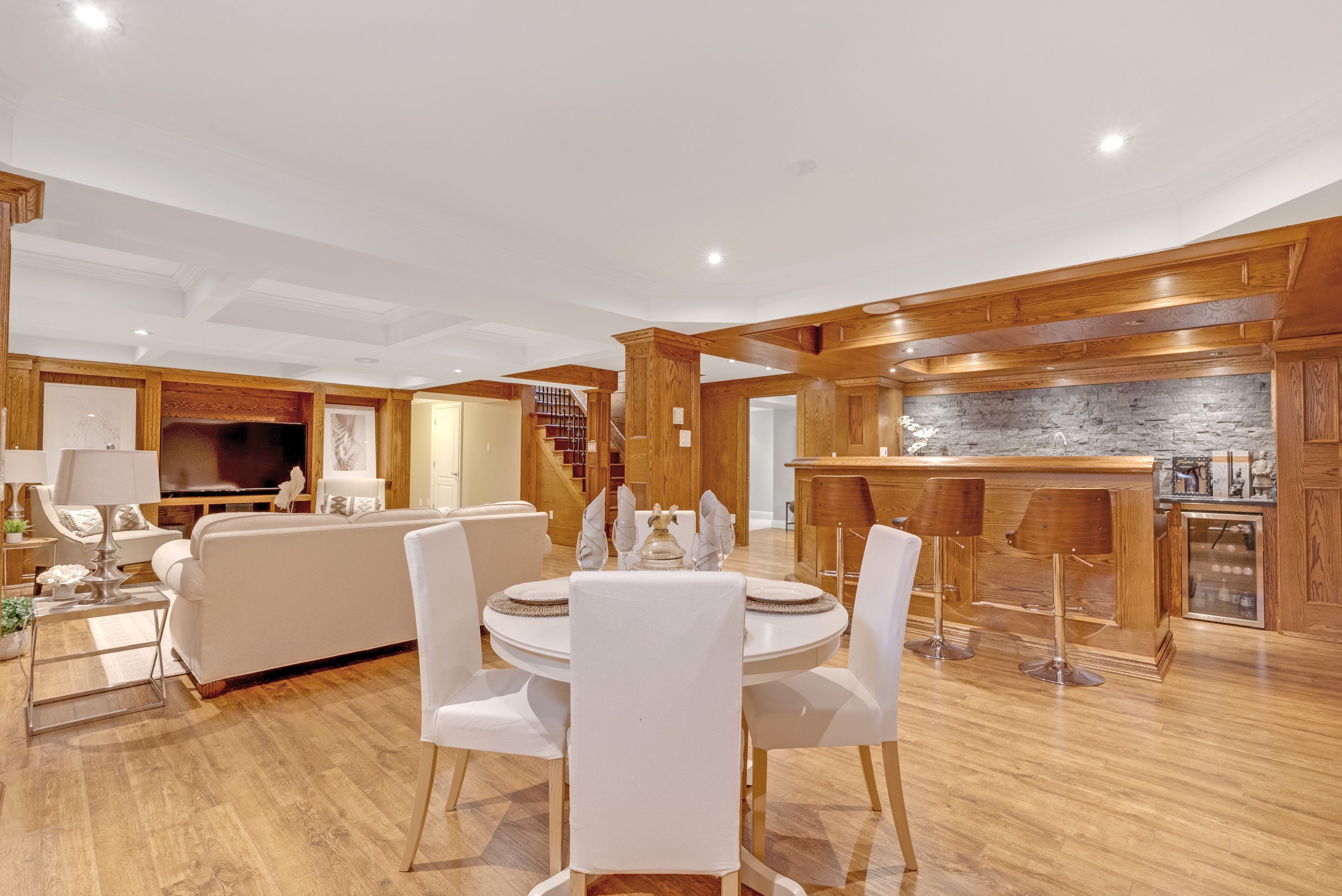 Indulge in luxury living in this exquisite Williamsburg bungaloft. This Delta Rae Home exudes sophistication and warmth. The open-concept layout integrates the ktchen, dining and living spacs, fostering an atmosphere of connectivity and effortless entertaining. Vaulted ceilings and 2-dtorey windows usher in an abundance of natural light. Gourmet kitchen with stainless steel appliances, two ovens, custom cabinetry and premium finishes. A spacious island and gleaming granite countertops provide ample space for meal preparation and casual dining. Retreat to the primary bedroom sanctuary with ensuite and walk-in closet. Upstairs, discover a versatile hidden room adaptable to your lifestyle and large bedrooms. Your private outdoor oasis is complete with a waterfall, koi pond, expansive patio, loggia, and lush landscaping. Your luxury living extends into the finnished basement:familyroom, fireplace, bar, bedroom, ensuite, office, gym.All kitchen appliances, washer/dryer, all ELF, bar fridge/microwave