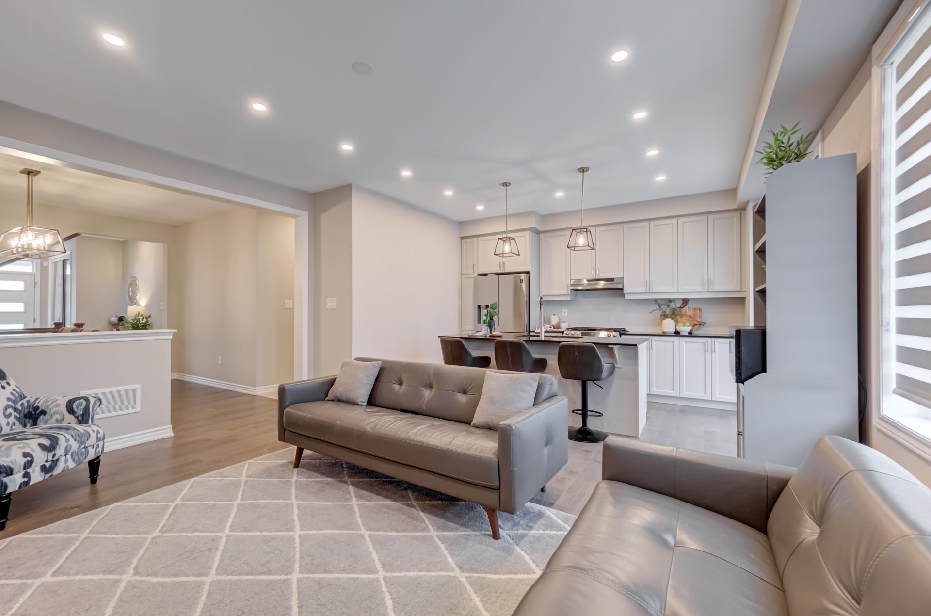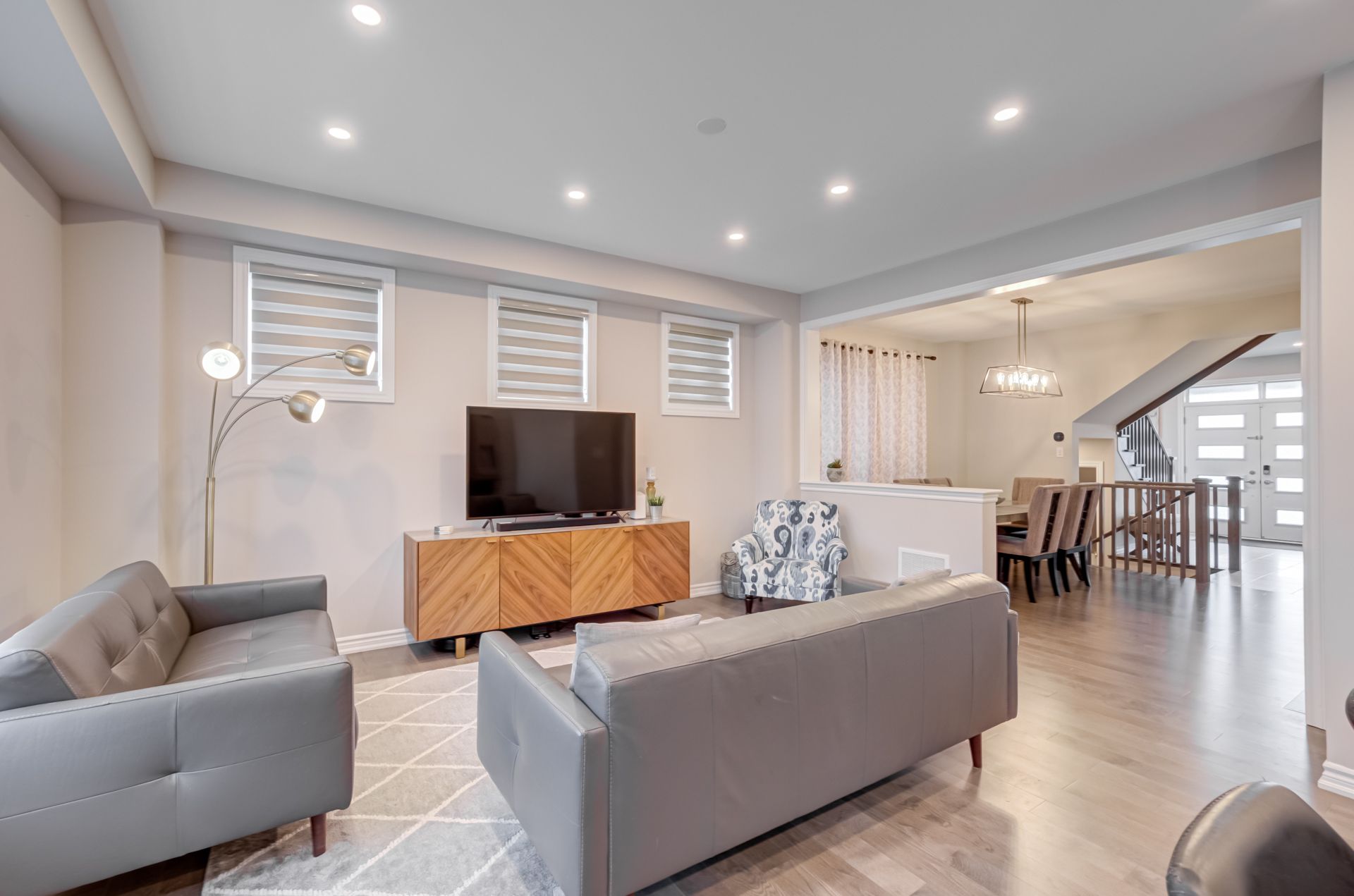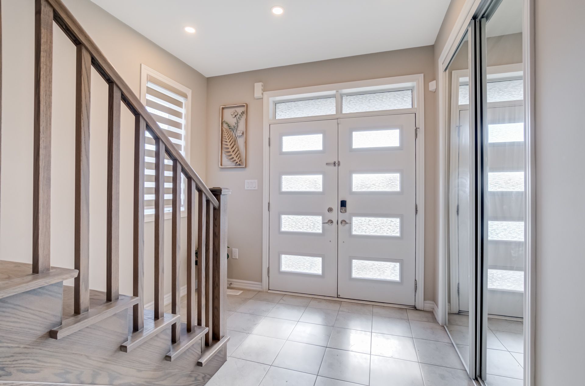 Premium Corner Lot - 2 Year New Built By Mattamy Homes. Fantastic Family Friendly Community. The Double Door Entrance Leads To An Inviting Foyer With Grand Open To Above Ceilings. Featuring 9 Ft Smooth Ceilings On Main Floor, Modern Hardwood Floors, Potlights and Designer Chandeliers. Open Concept Layout With Separate Dining & Great Room Both Overlooking The Kitchen Which Boasts, Granite Counters, Center Island/Breakfast Bar, New S/S Appliances, Gas Stove and walk Out TO Large Backyard - Premium Double Lot. The Oak Staircase Leads To The 2nd Flr. Convenient 2nd Flr Laundry Room W/Additional Storage. 4 Bedroom Model Changed To 3 Bedroom With Open Concept Living Area On 2nd Floor. Primary Bedroom Boasts Walk In Closet & 3 Pc Ensuite W/ Full Glass Shower. Tastefully Decorated & Freshly Painted Throughout. Close To All Amenities, easy access to the 401, 412, and 407 highways,Large Basement Awaits Your Personalized touches, Has 3 Pc R/I. Direct Access To Garage From Home. X-Large Driveway - 4 Car Parking Total.