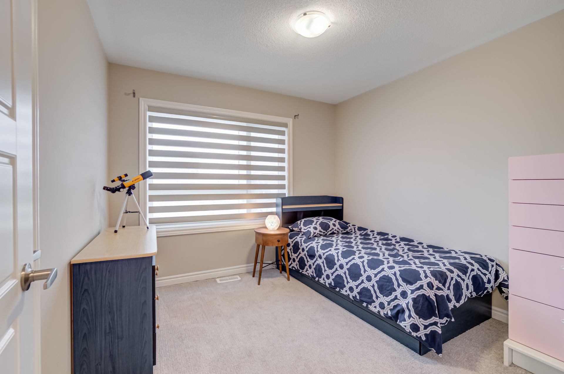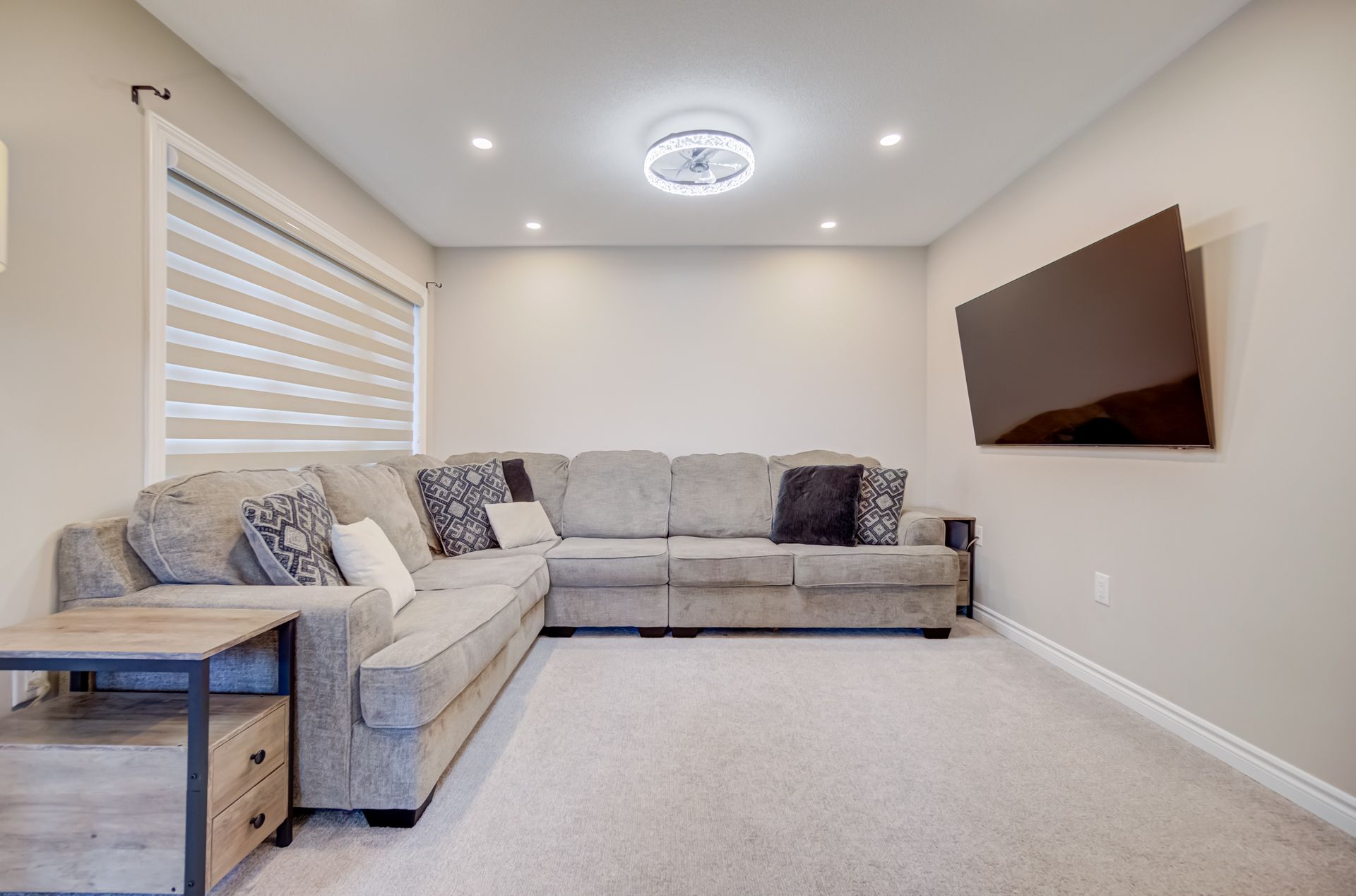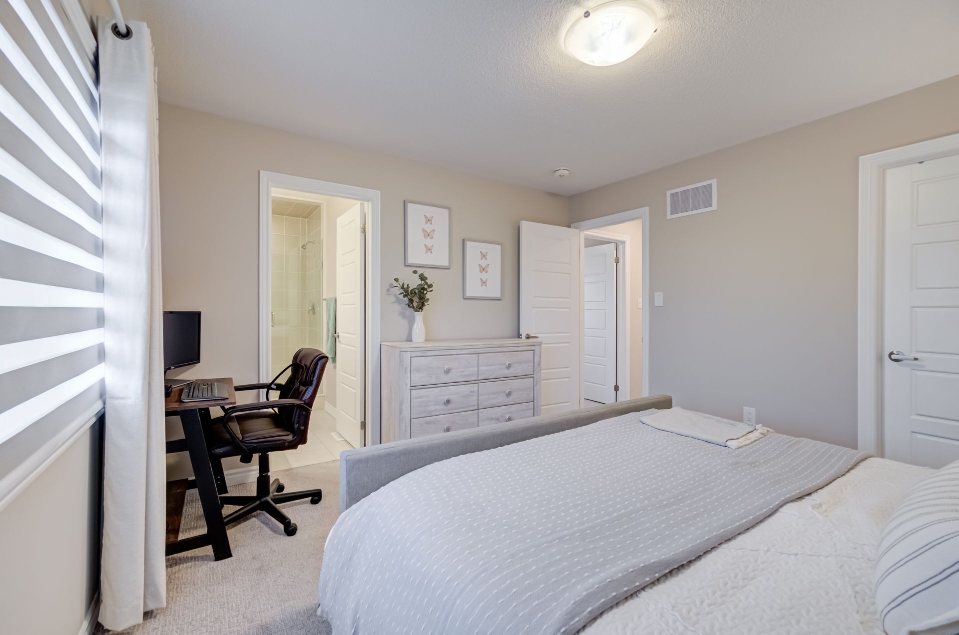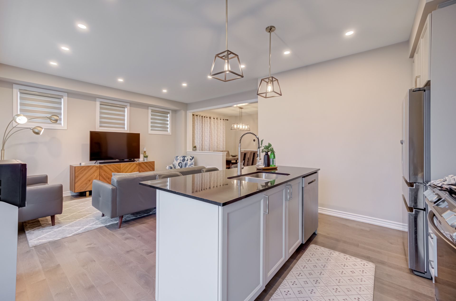 Premium Corner Lot - 2 Year New Built By Mattamy Homes. Fantastic Family Friendly Community. The Double Door Entrance Leads To An Inviting Foyer With Grand Open To Above Ceilings. Featuring 9 Ft Smooth Ceilings On Main Floor, Modern Hardwood Floors, Potlights and Designer Chandeliers. Open Concept Layout With Separate Dining & Great Room Both Overlooking The Kitchen Which Boasts, Granite Counters, Center Island/Breakfast Bar, New S/S Appliances, Gas Stove and walk Out TO Large Backyard - Premium Double Lot. The Oak Staircase Leads To The 2nd Flr. Convenient 2nd Flr Laundry Room W/Additional Storage. 4 Bedroom Model Changed To 3 Bedroom With Open Concept Living Area On 2nd Floor. Primary Bedroom Boasts Walk In Closet & 3 Pc Ensuite W/ Full Glass Shower. Tastefully Decorated & Freshly Painted Throughout. Close To All Amenities, easy access to the 401, 412, and 407 highways,Large Basement Awaits Your Personalized touches, Has 3 Pc R/I. Direct Access To Garage From Home. X-Large Driveway - 4 Car Parking Total.