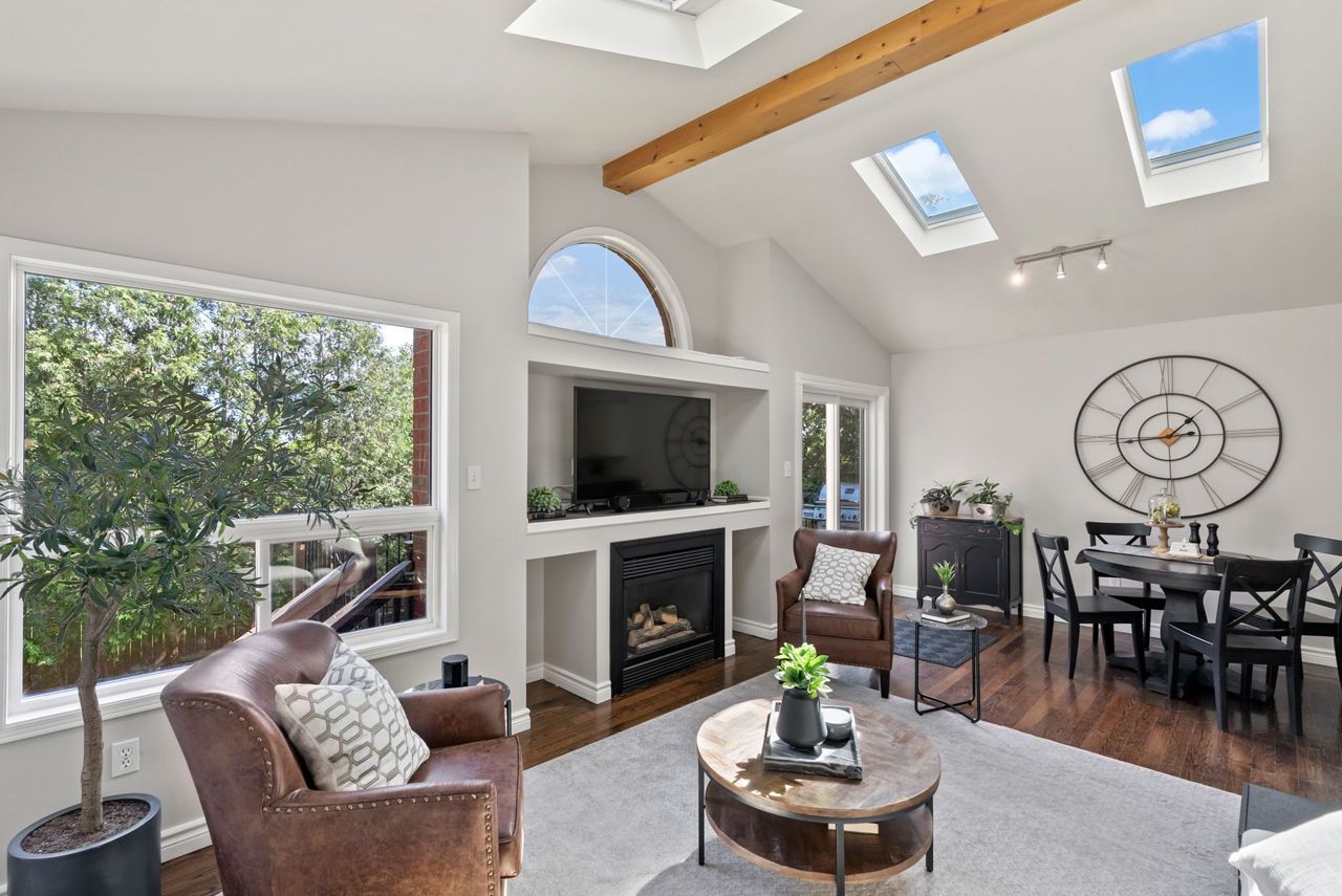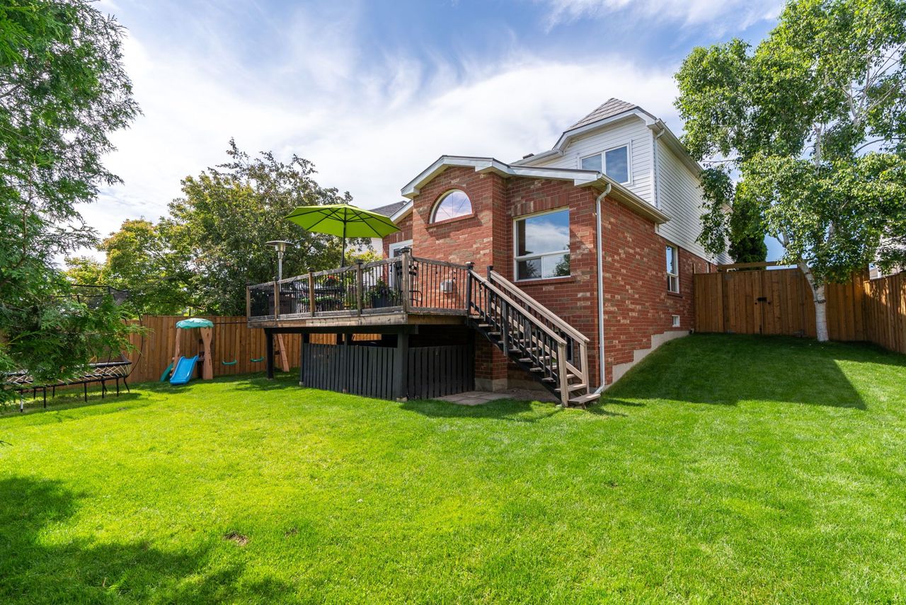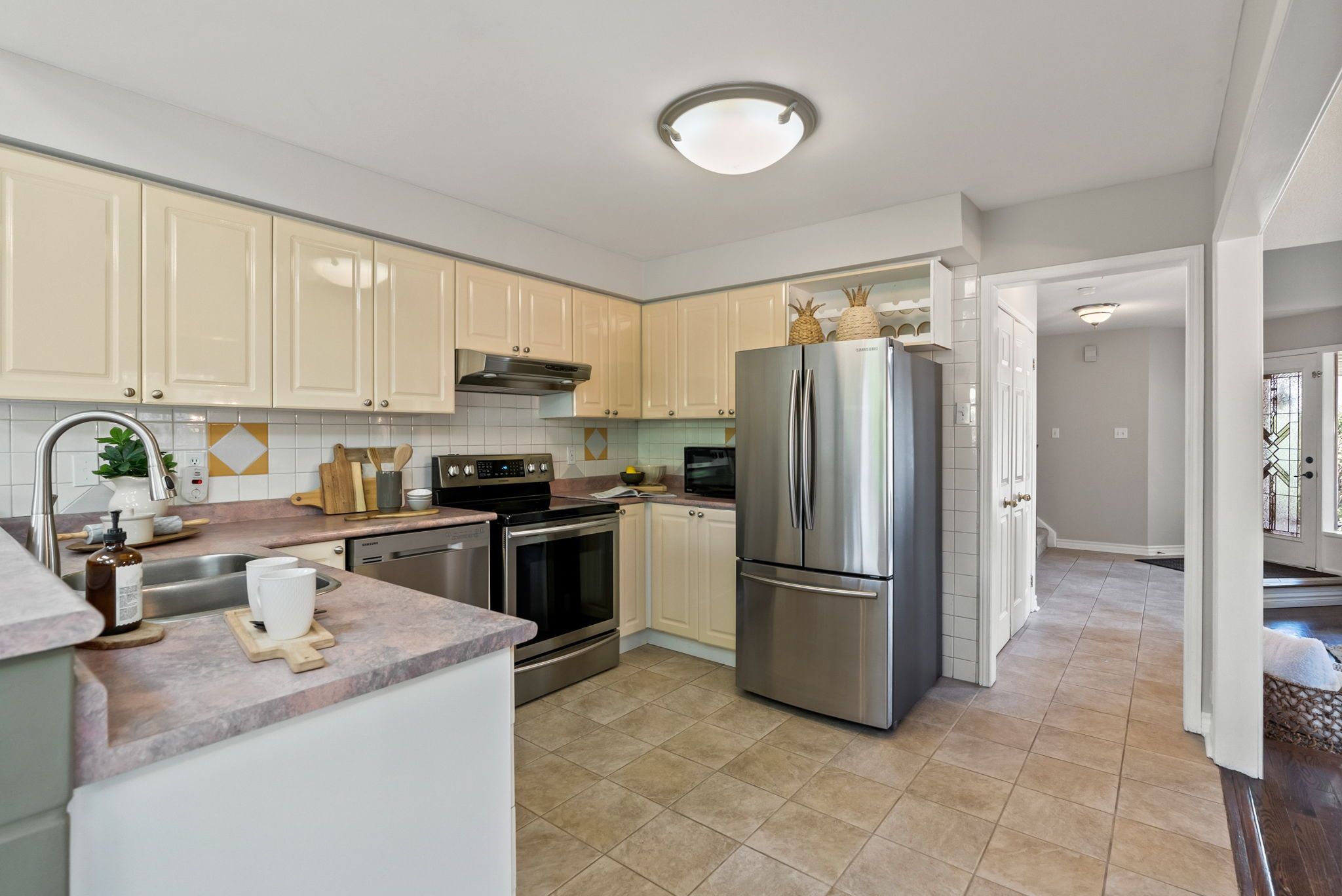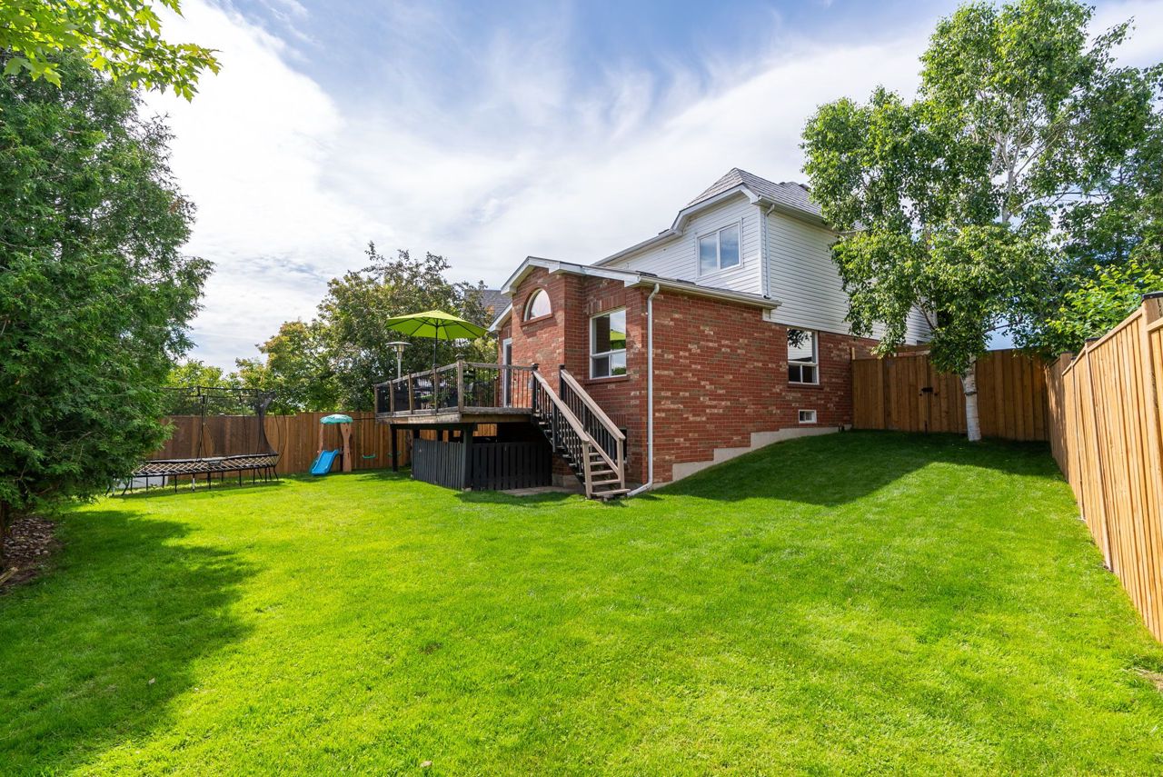 Bright and spacious 3-bedroom family home, ideally located walking distance to excellent schools. Features of this lovely home include the sunken living room with vaulted ceilings, creating an inviting & airy atmosphere. One of many highlights of this home is the family room, complete with a gas fireplace, vaulted ceilings, & four skylights, filling the room with natural light & creating a cozy ambiance, a perfect gathering place for family & friends. Large bright & sunny eat-in kitchen. Hardwood floors can be found throughout the main level. The primary bedroom is a tranquil retreat, with laminate flooring, walk-in closet, & an ensuite bathroom complete with tub & shower. A finished basement offers additional living space, perfect for a home office, media room, or play area for children. Step outside onto the large deck, where you can entertain guests or simply enjoy the outdoors, with a gas BBQ hook-up & stunning view of the pond & ravine, this space is perfect for summer gatherings.Privacy is paramount in this home, as there are no neighbors behind, providing a peaceful & secluded setting. Close to shopping, parks, public transit and all amenities. Don't miss the opportunity to make this remarkable family home yours.