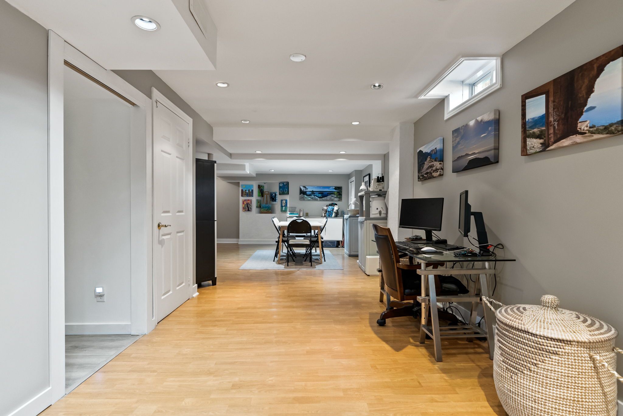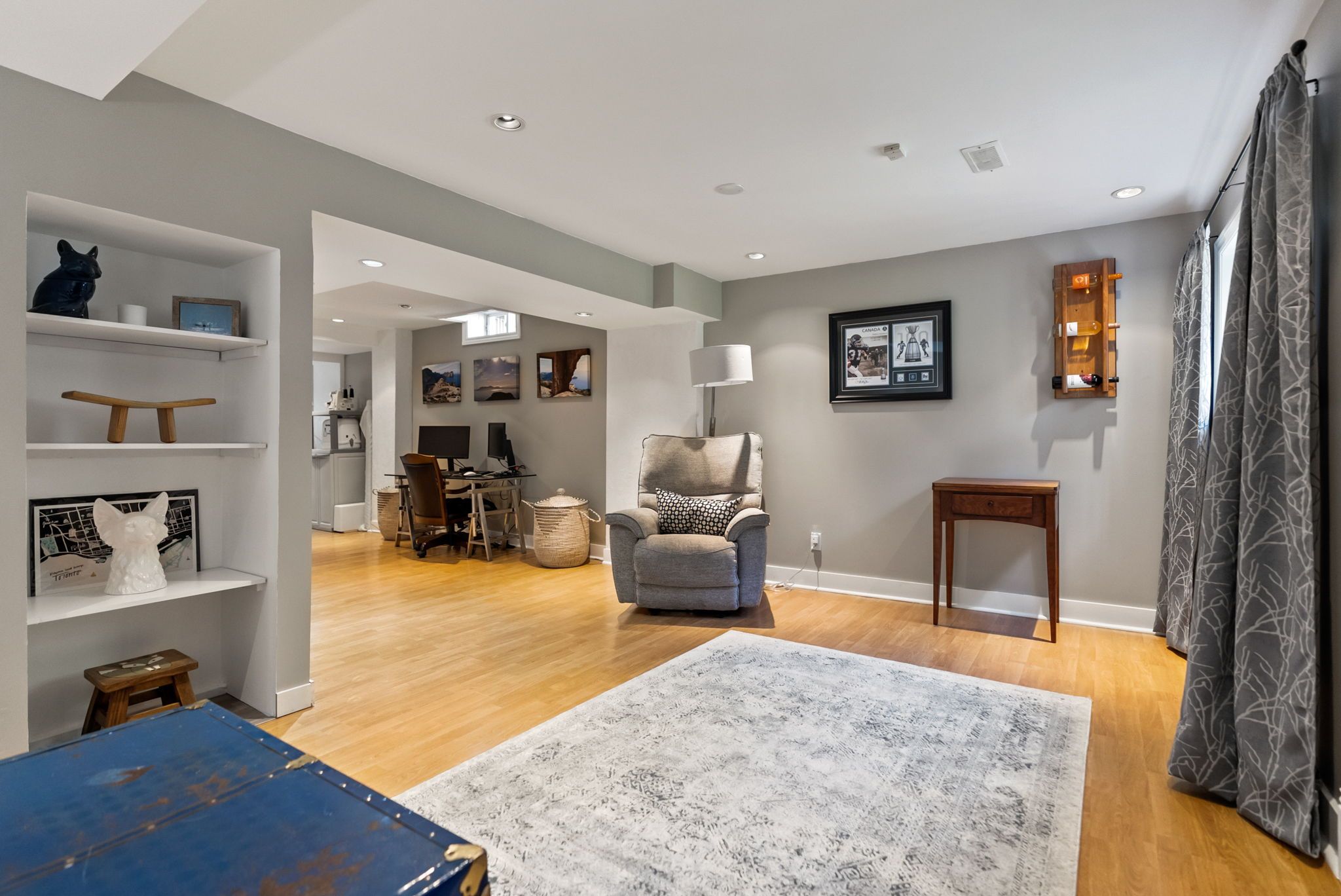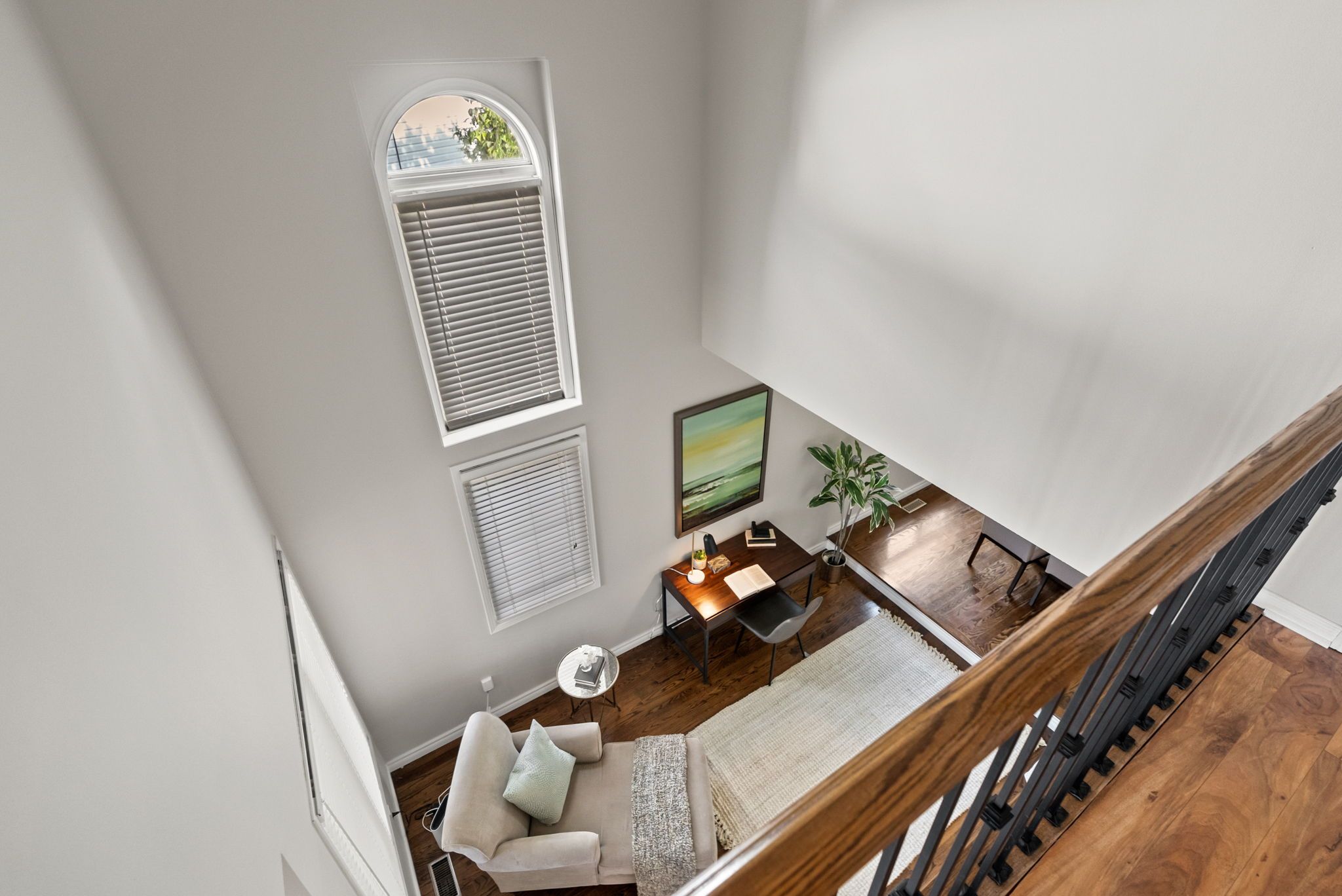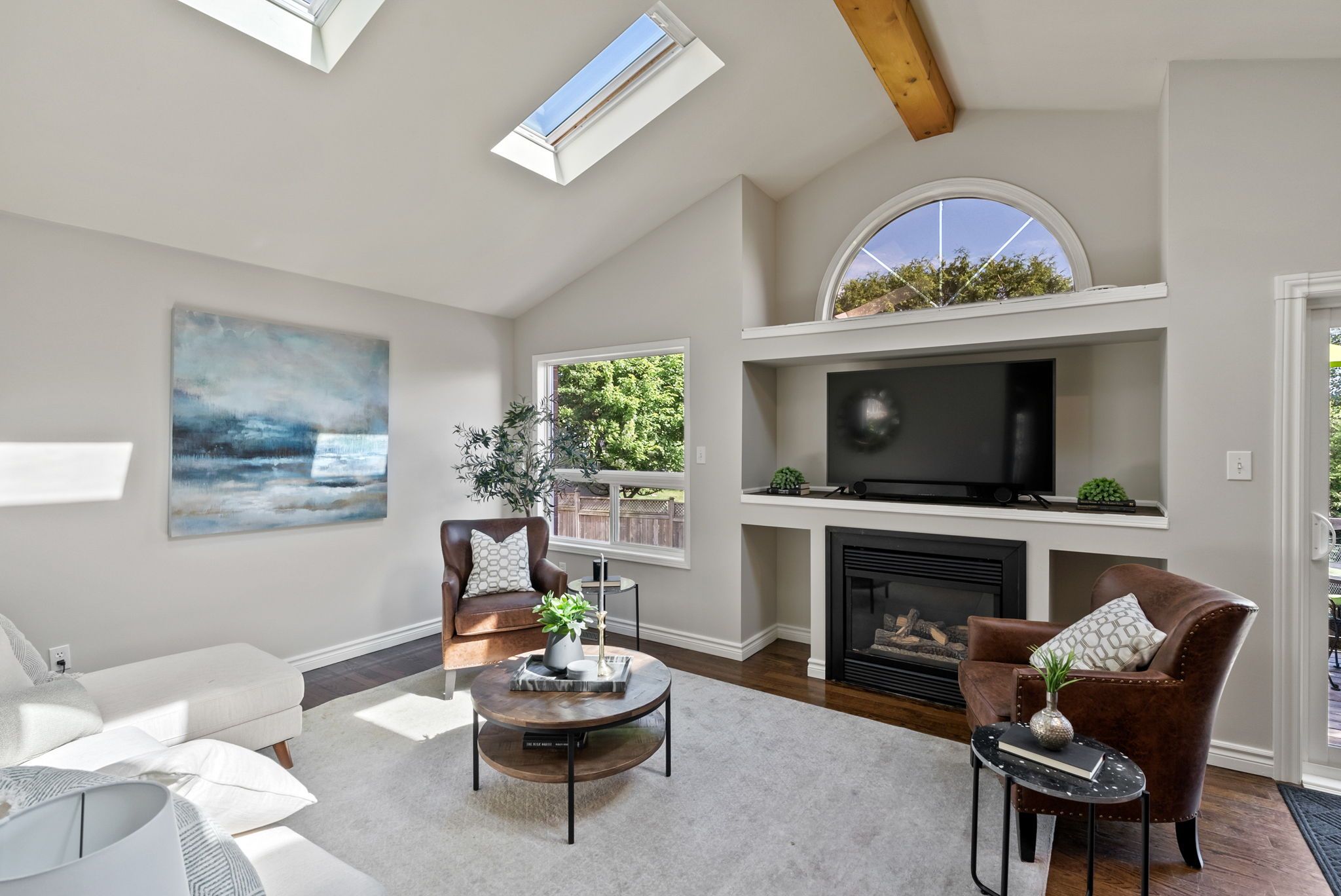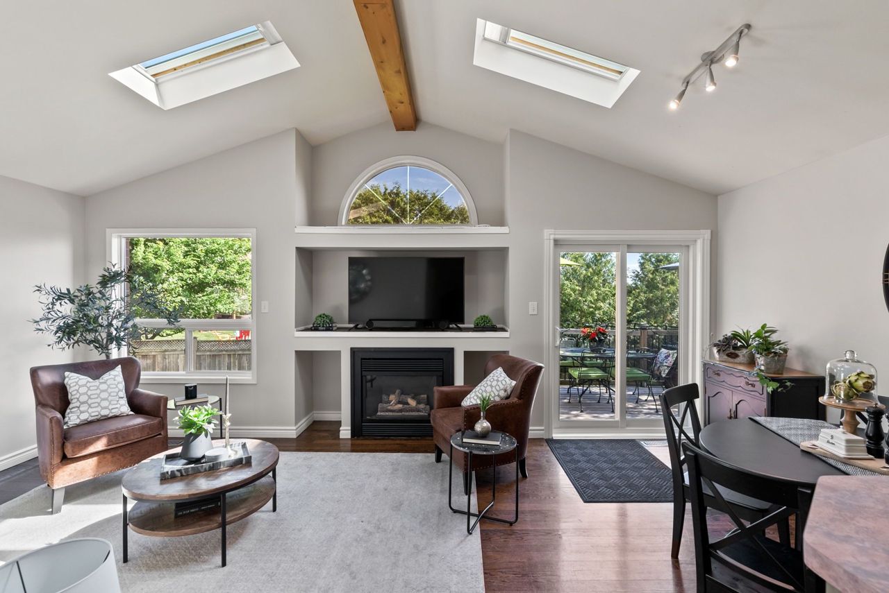 Hardwood Floor Sunken Room Vaulted Ceiling