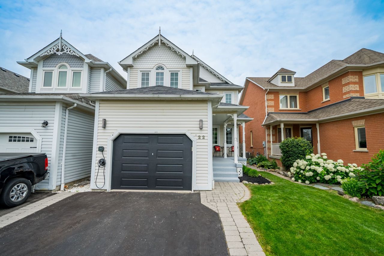Welcome to 22 Wells Cres! This beautiful 3 bedroom Tribute family home situated in family friendly Brooklin! Steps to schools, parks, transit, downtown shops & hwy 407 access. Sun filled open concept living & dining room featuring hardwood flooring. Great sized kitchen boasting stainless steel appliances, breakfast bar & ceramic flooring. Breakfast area offers wainscotting, a cozy gas fireplace & walk-out to large deck & fully fenced backyard with lots of privacy trees - perfect for entertaining! Upstairs features 3 generous bedrooms including the primary retreat with walk-in closet & 4pc ensuite. Additional living space in the fully finished basement complete with 4th bedroom, spacious rec room wired for surround sound, pot lights, laminate floors, finished laundry area, cold cellar & ample storage space. This home is finished top to bottom & is move in ready!All wndws '20 incl garage/patio dr (Optima Windows/Doors), washer/dryer '22, dishwasher '22, range/hood '20, upgraded R60 attic insul '22, furnace & central air '17, roof '13, main/bsmt smooth ceilings '23 & freshly painted thru!