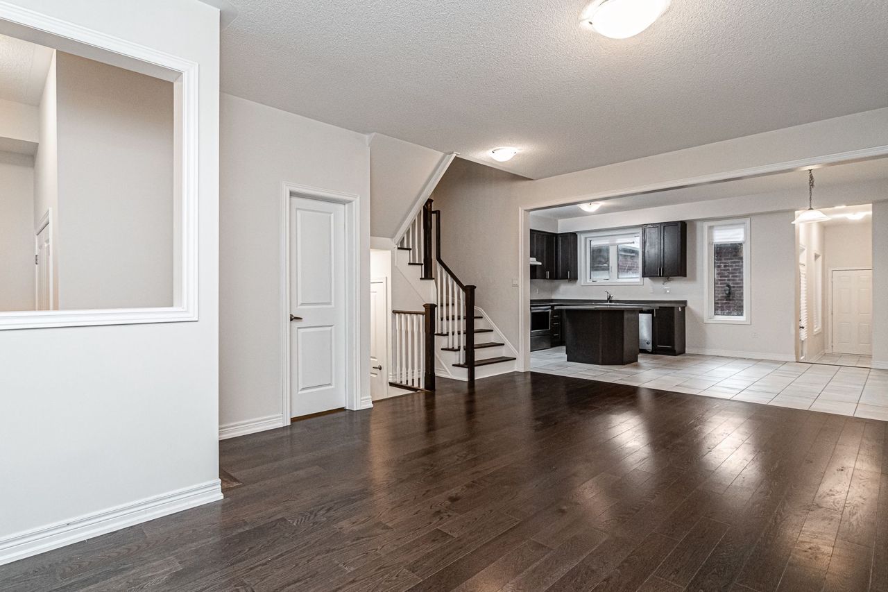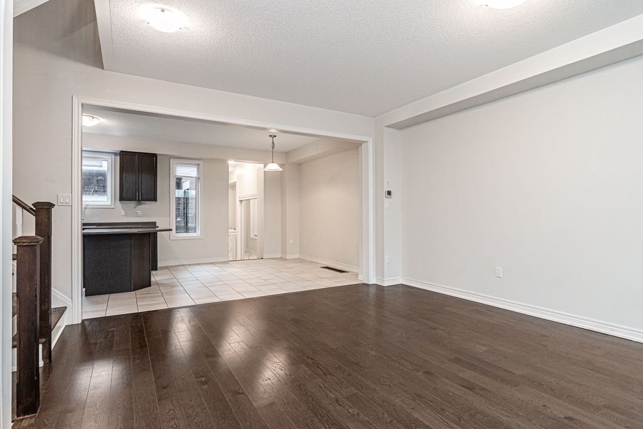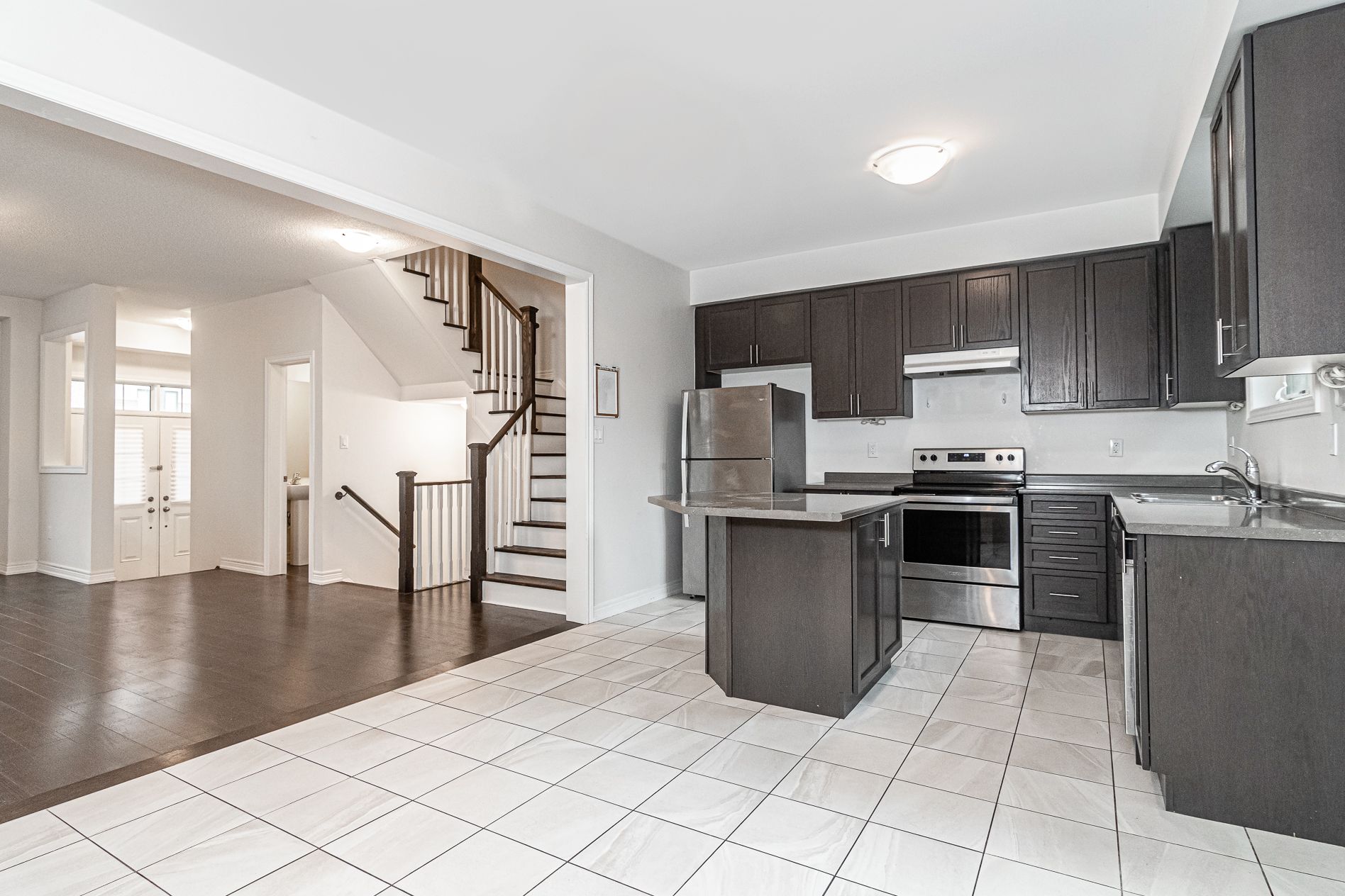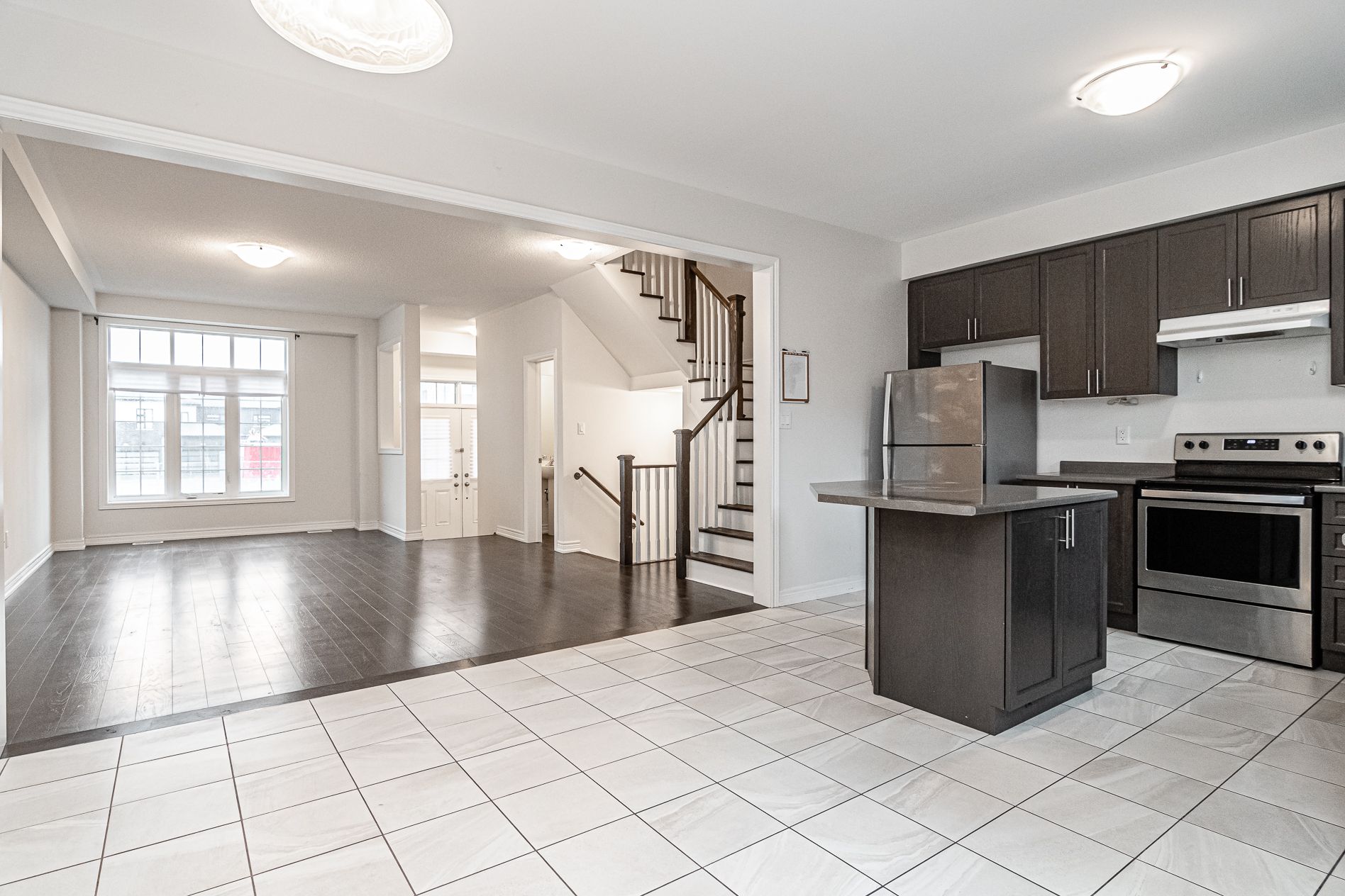 Beautiful 3.5 year old freehold townhouse, 2 car garage, 3 bedrooms, 3 bathrooms, 9ft ceiling on both first and second floors. Open concept main floor features combined living and dining room, Eat In kitchen with plenty of counter tops and cupboard space and breakfast area. Hardwood and ceramic flooring on main floor, professionally finished hardwood staircase, second floor has high-end laminate flooring. Primary bedroom with walk-in closet and large en-suite bathroom with separate shower and soaker tub, double sink. Basement has plumbing roughed in for a Bathroom. Interior access to the 2 car garage.200 AMP service