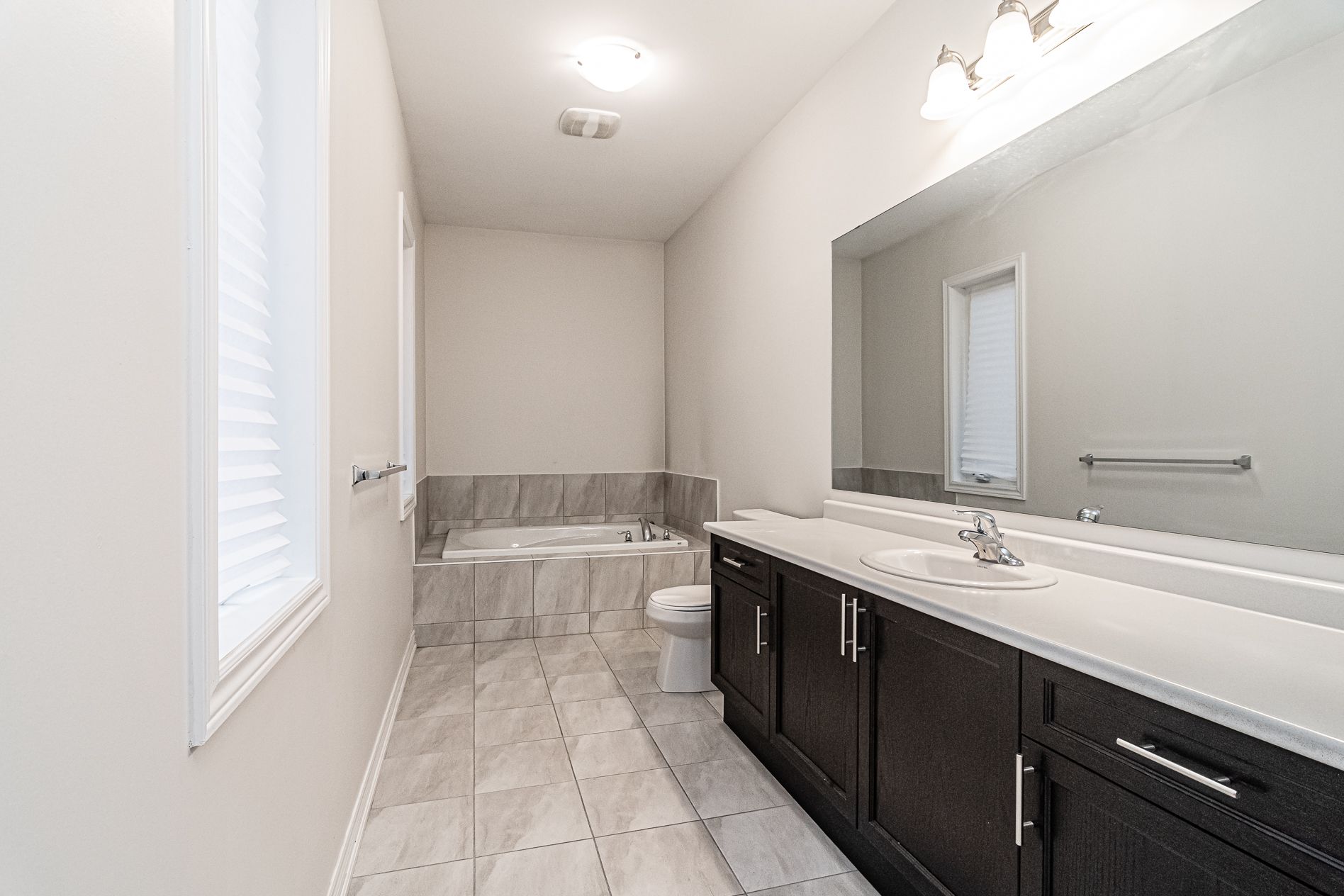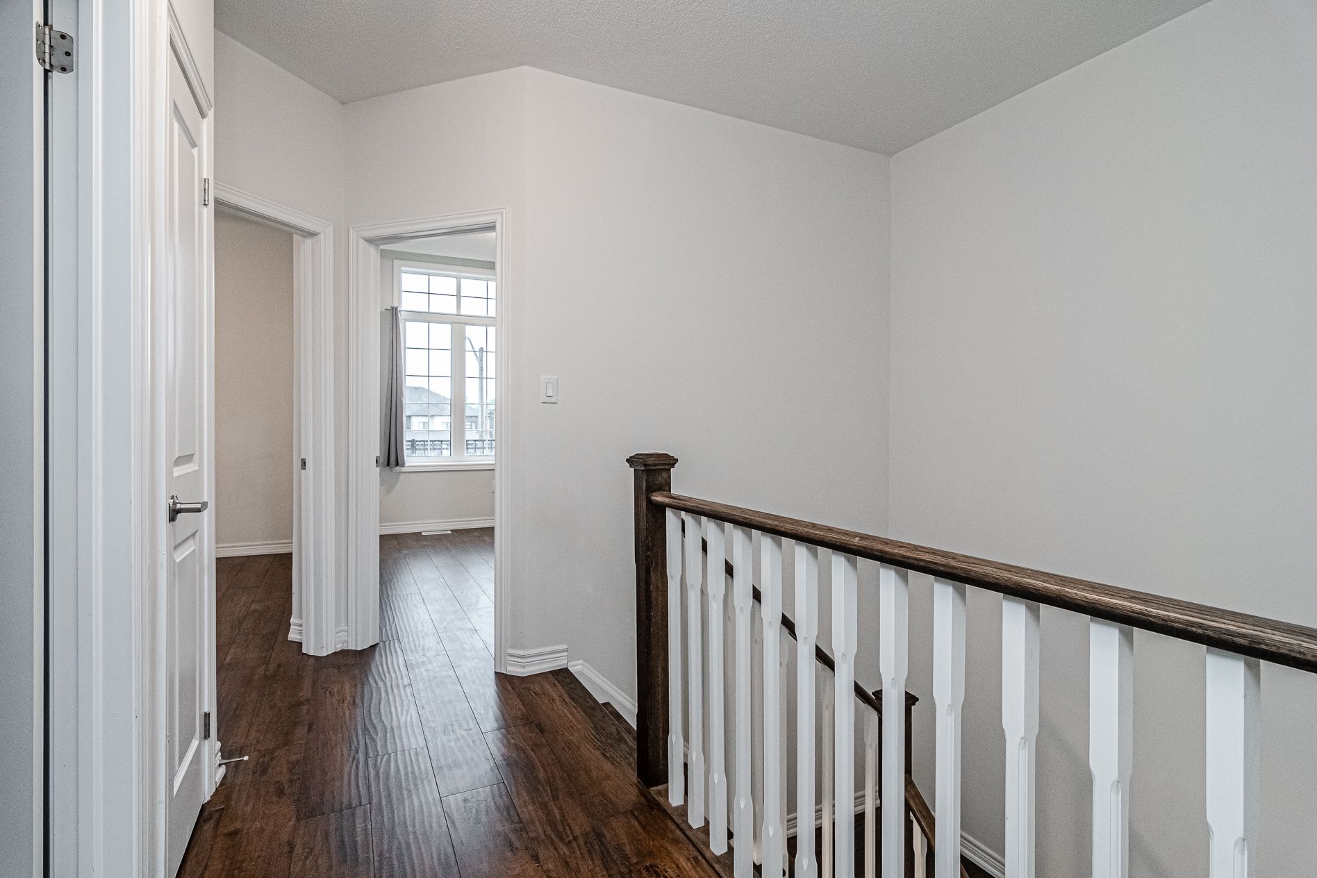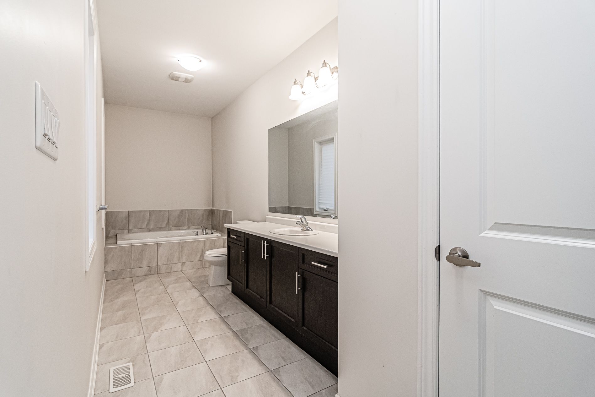 Beautiful 3.5 year old freehold townhouse, 2 car garage, 3 bedrooms, 3 bathrooms, 9ft ceiling on both first and second floors. Open concept main floor features combined living and dining room, Eat In kitchen with plenty of counter tops and cupboard space and breakfast area. Hardwood and ceramic flooring on main floor, professionally finished hardwood staircase, second floor has high-end laminate flooring. Primary bedroom with walk-in closet and large en-suite bathroom with separate shower and soaker tub, double sink. Basement has plumbing roughed in for a Bathroom. Interior access to the 2 car garage.200 AMP service