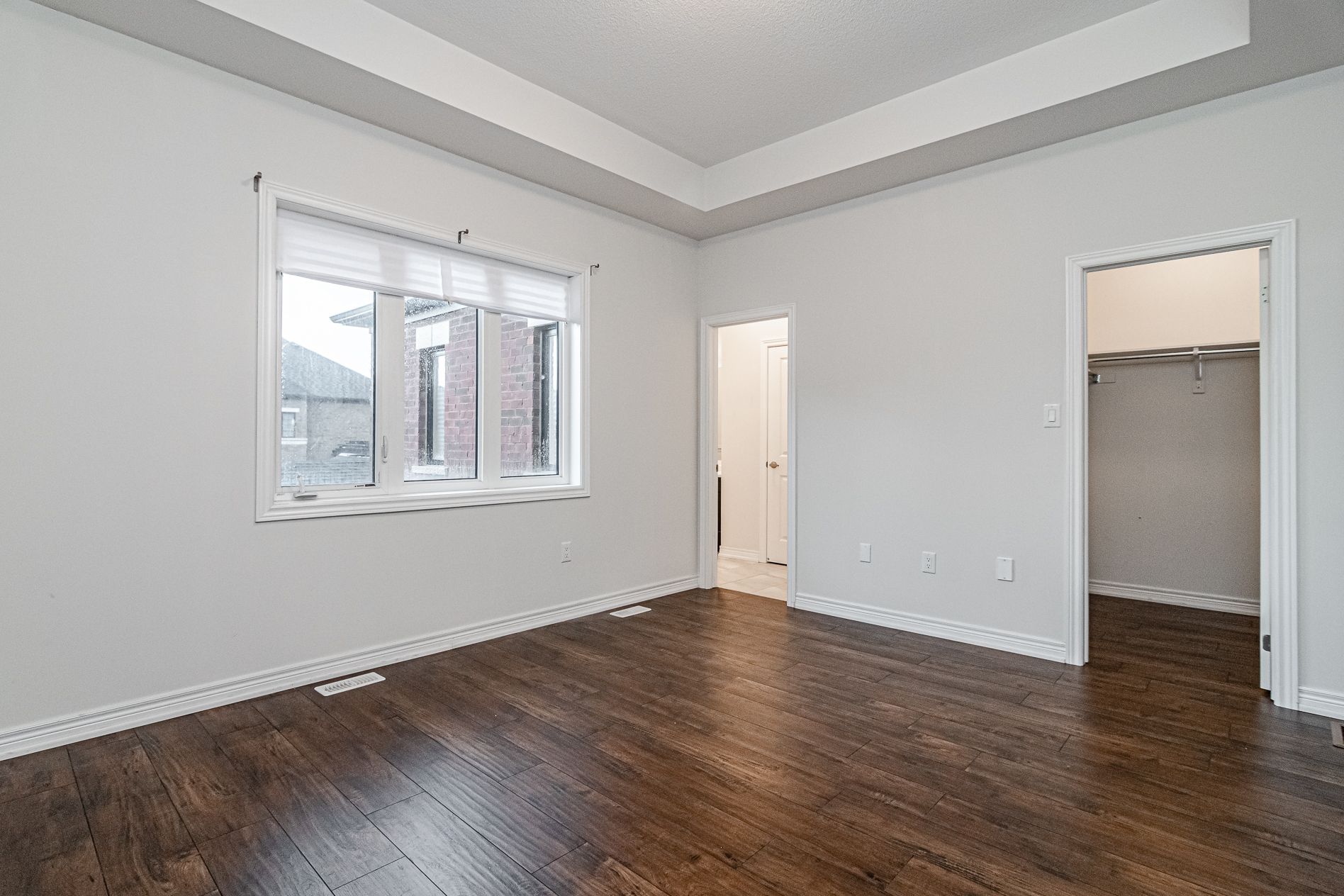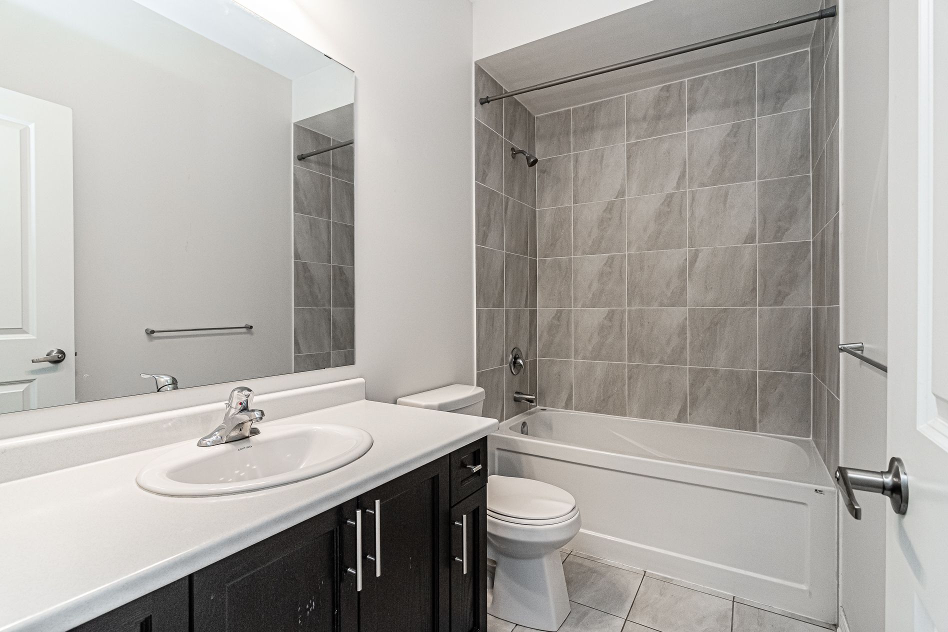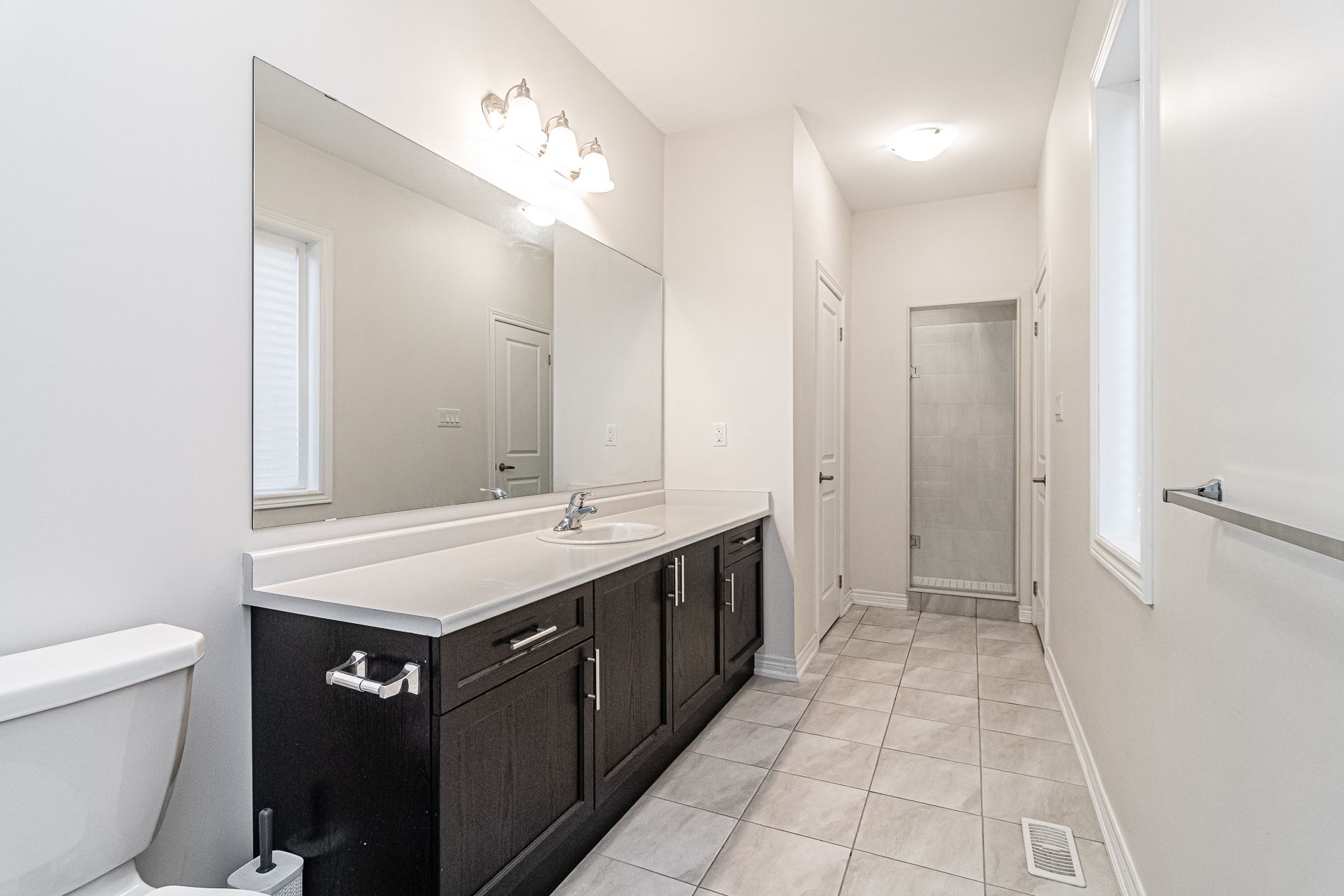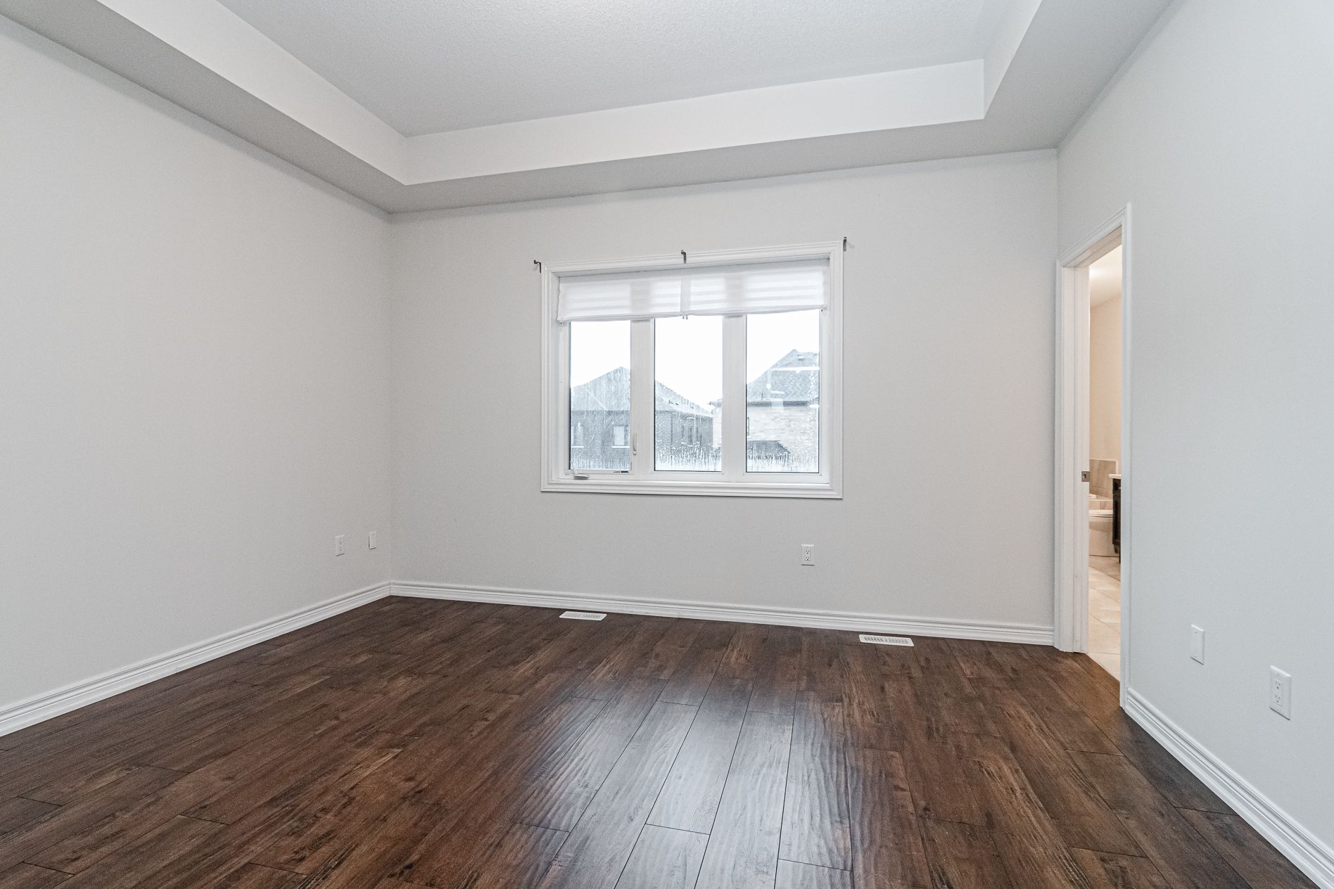 Beautiful 3.5 year old freehold townhouse, 2 car garage, 3 bedrooms, 3 bathrooms, 9ft ceiling on both first and second floors. Open concept main floor features combined living and dining room, Eat In kitchen with plenty of counter tops and cupboard space and breakfast area. Hardwood and ceramic flooring on main floor, professionally finished hardwood staircase, second floor has high-end laminate flooring. Primary bedroom with walk-in closet and large en-suite bathroom with separate shower and soaker tub, double sink. Basement has plumbing roughed in for a Bathroom. Interior access to the 2 car garage.200 AMP service