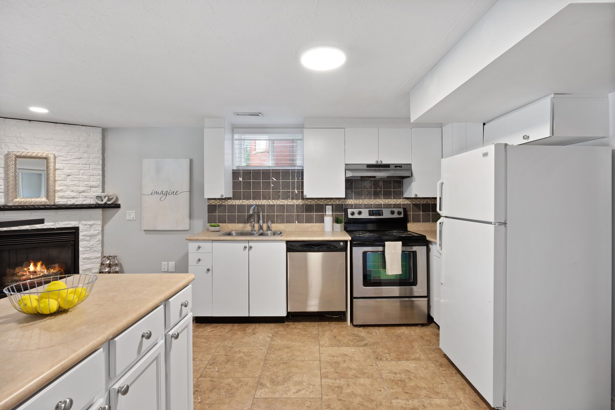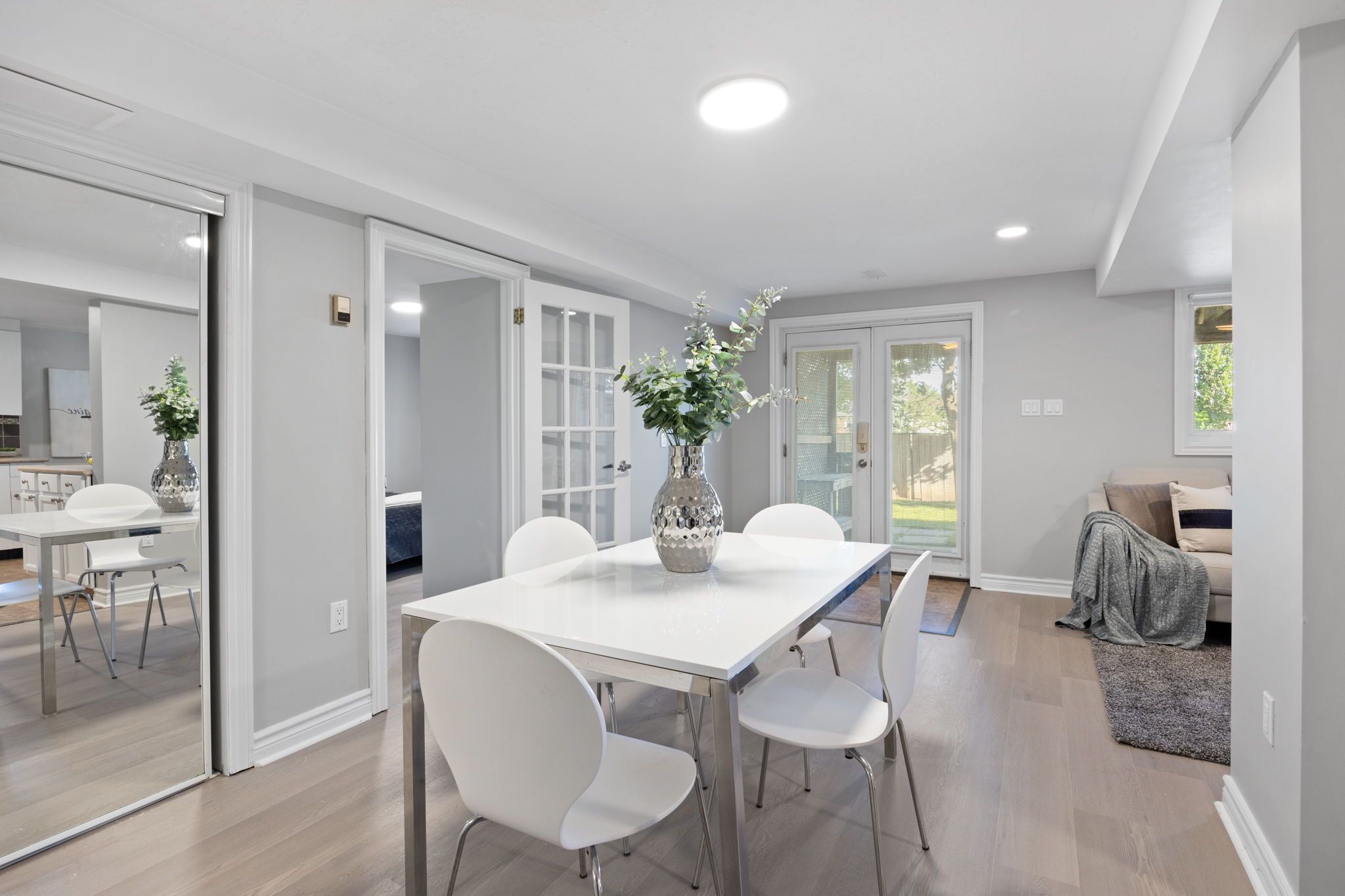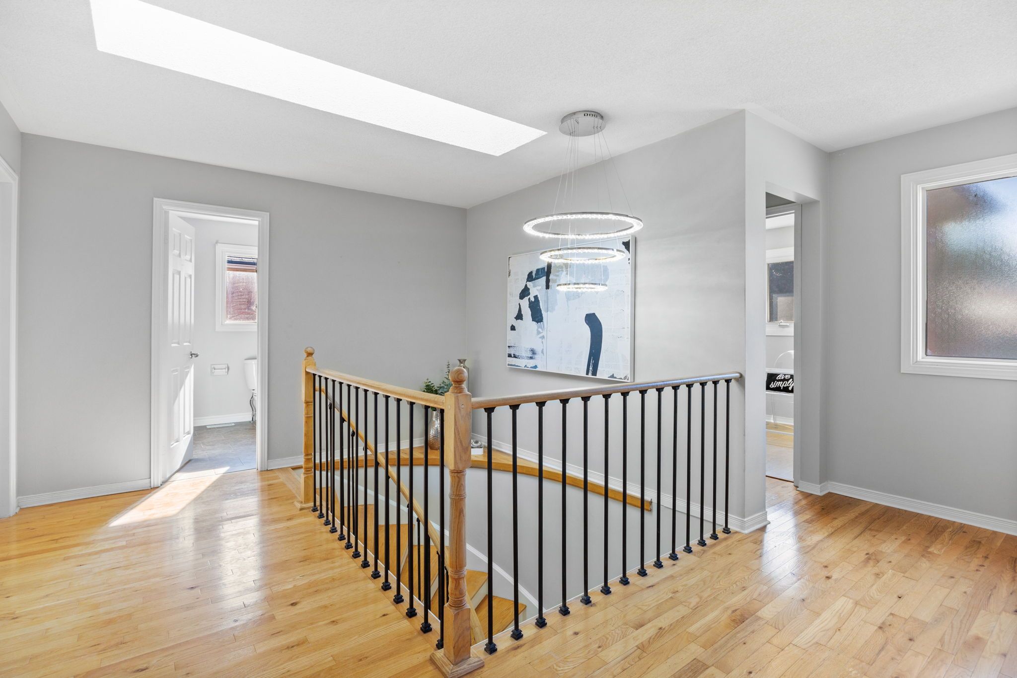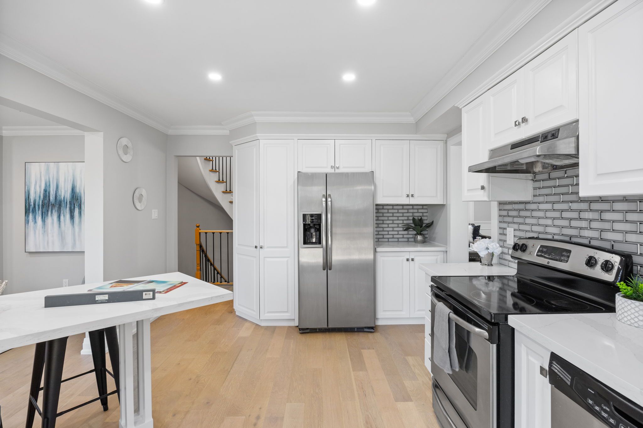 This stunning newly renovated home is nestled on quite cul de sac, perfect for young families and children. Enjoy this rarely offered 5 br room house, with adequate space to work from home with a decadent curved staircase and skylight. It offers 5 fire places w/ thermostats conveniently located throughout the home including a oversized garage that is easily heated during the winter months. Relish in tasteful renovations that includes; brand new engineer hardwood floors on the main floor/ 2nd floor, brand new primary room ensuite bathroom with soaker tub, new patio door, new laminate floors in the basement, quartz counter tops with backsplash in the main kitchen, flatten ceilings on main floor with pot lights. Discover hidden a laundry chute from upstairs bathroom to laundry room. The W/O basement offers copious amounts of sunlight, 2br 2wr renovated apartment with a separate entrance, 200 AMP electrical service with a cozy fire place.