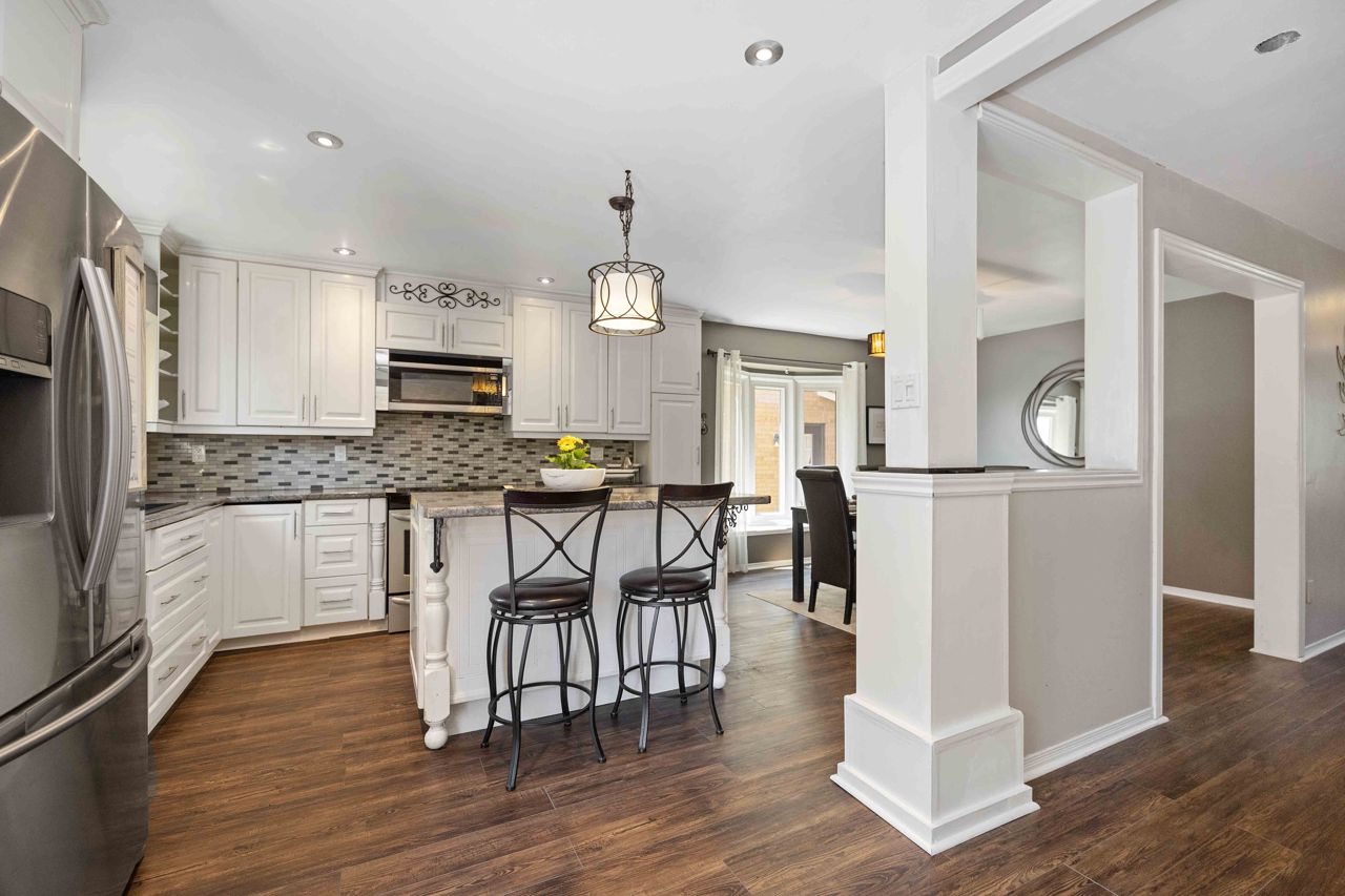 Income potential! Mature trees, gardens, interlock patio, gazebo & upper deck. Well maintained & move-in ready! Close to all amenities incl schools, parks, shopping, restaurants & rec facilities. Easy access to public transit, Hwy 401 & GO for commuters. Hardwood flooring, chef's kitchen w island & w/out to deck, family room w fireplace. Primary BR w hardwood, walk-in closet & 4 pc ensuite. Lower level separate entrance, full 2nd kitchen, living room, 2 BR's & 4 pc bath. Parking for 4 cars.