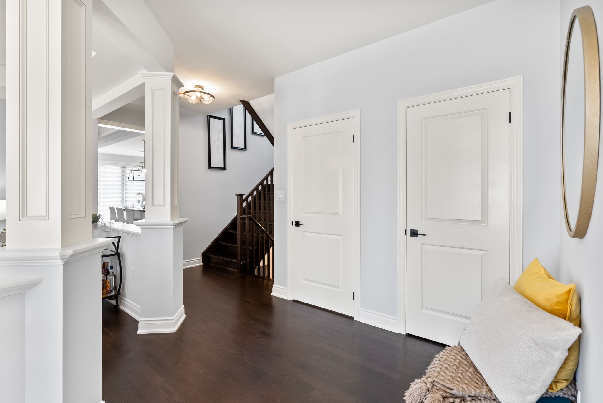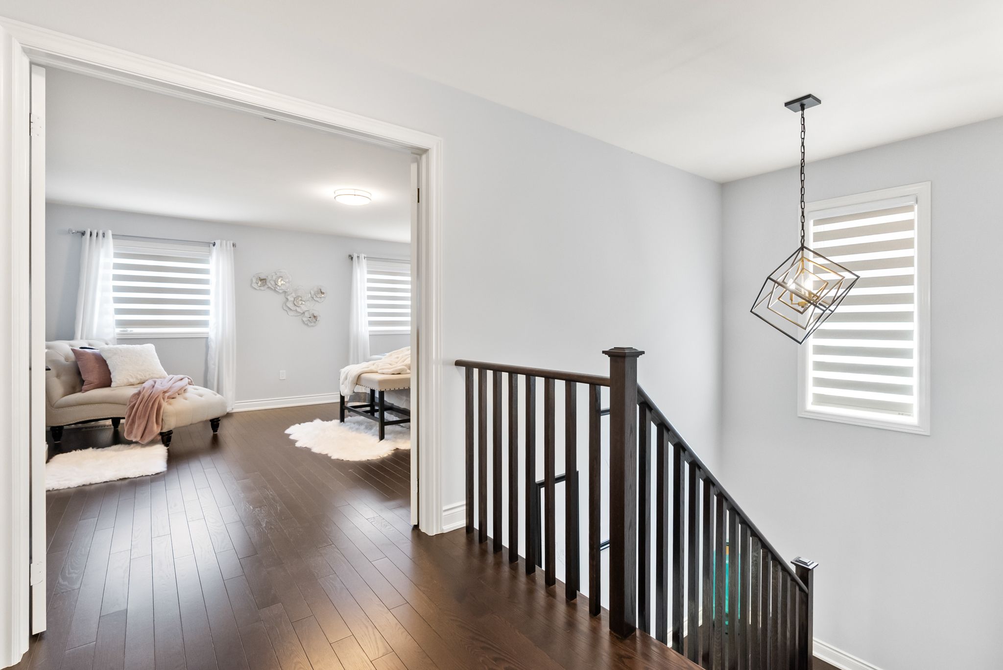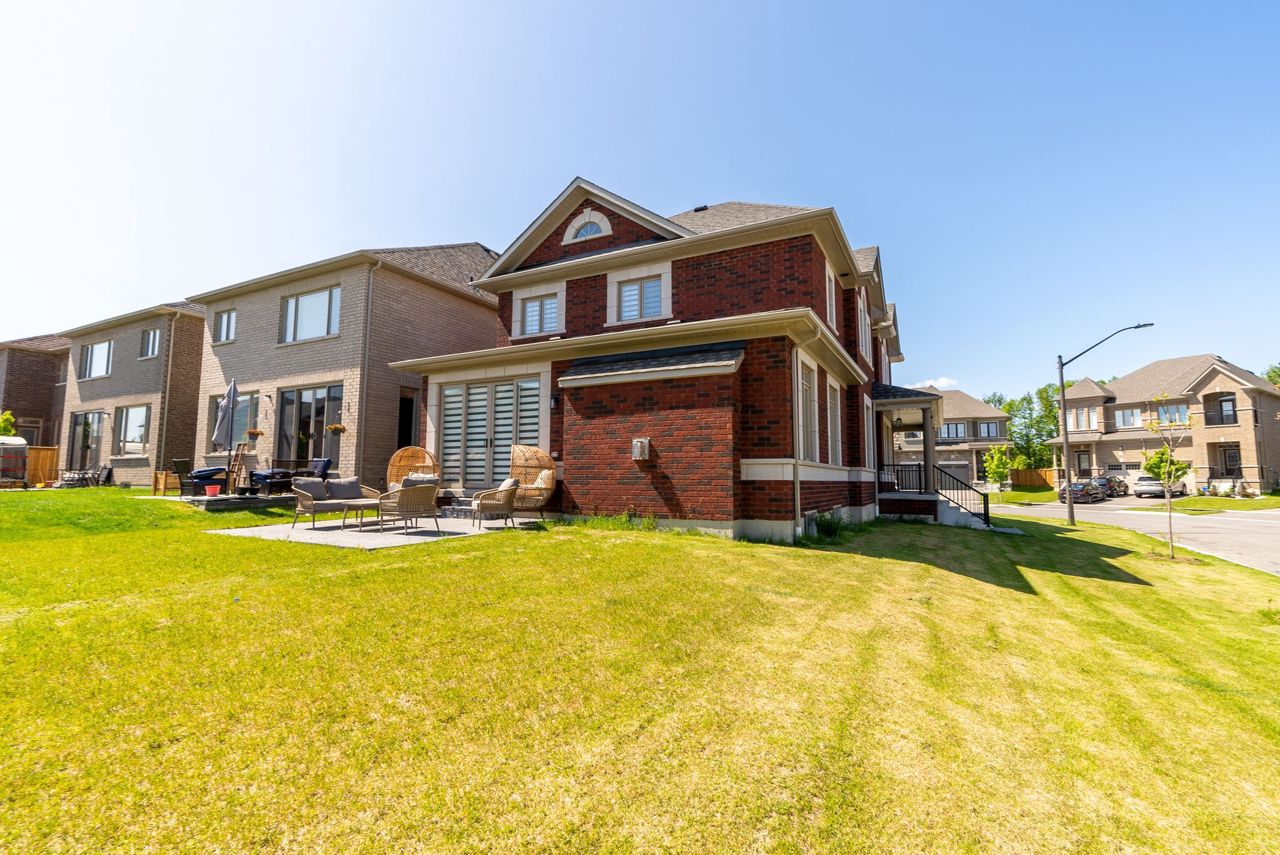 DESIGNER MOVE IN READY! Gorgeous DeNoble Built Cardinal Model, nestled in a prime location a short walk away from Heber Downs Conservation. Situated on a desirable corner lot, this 4 bed, 5 bath home exudes charm with its inviting wrap-around porch & welcoming first impression. 9' Ceilings on main floor, Hardwood floors throughout, main floor laundry w/garage access & large family room w/coffered ceilings, gas fireplace & built-in shelves. The main floor boasts a versatile den, perfect for a home office or study. Open concept kitchen with stainless steel appliances & centre island. All four bedrooms offer the luxury of ensuite access. The basement finished by DeNoble Homes adds valuable living space & a bonus 3 piece bath creating an ideal area for recreation, hobbies, or gatherings.Located just a short drive away from the 412 and 407 Highways, commuting and exploring the surrounding areas are a breeze. Experience the perfect blend of natural beauty and modern convenience with this exceptional property.