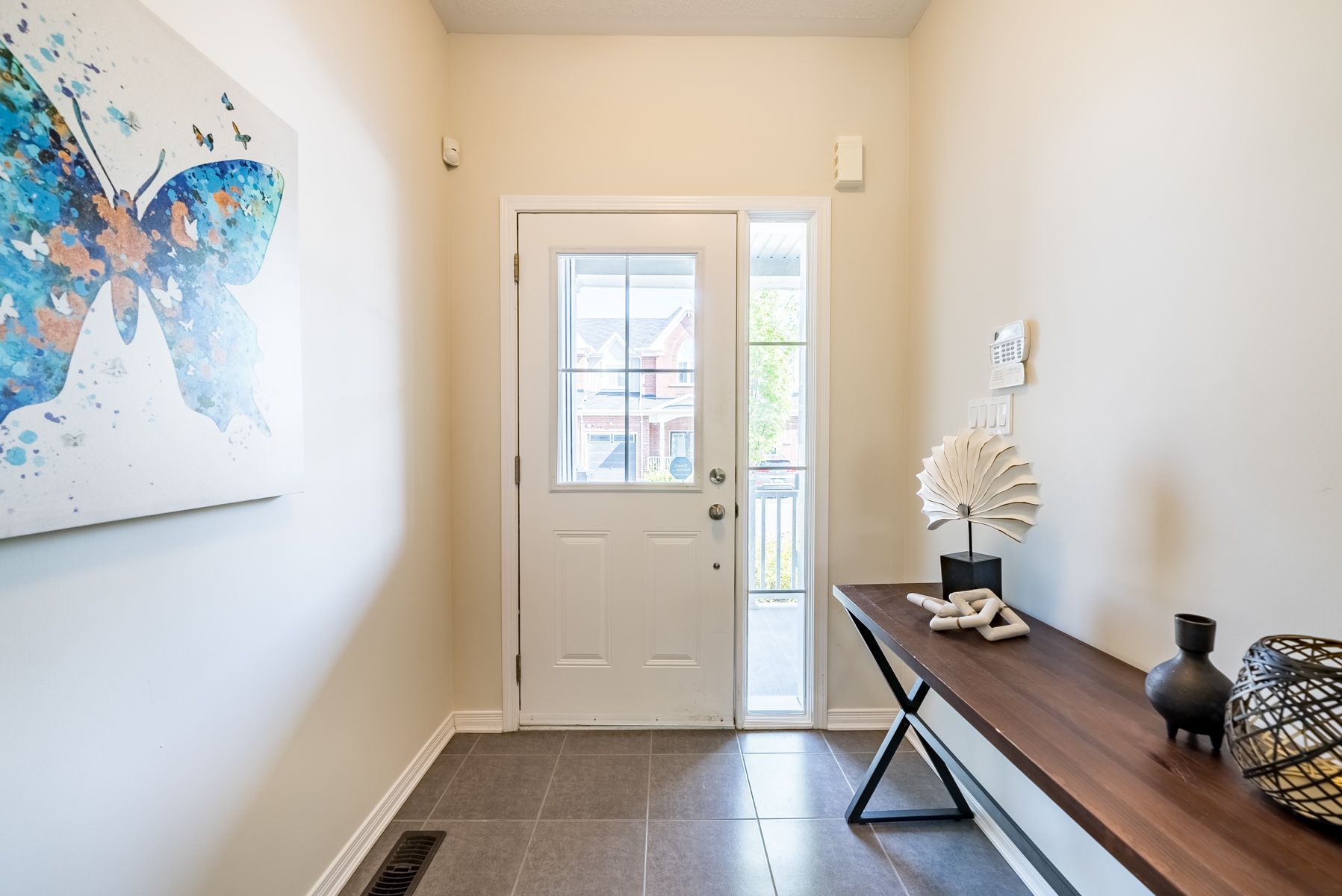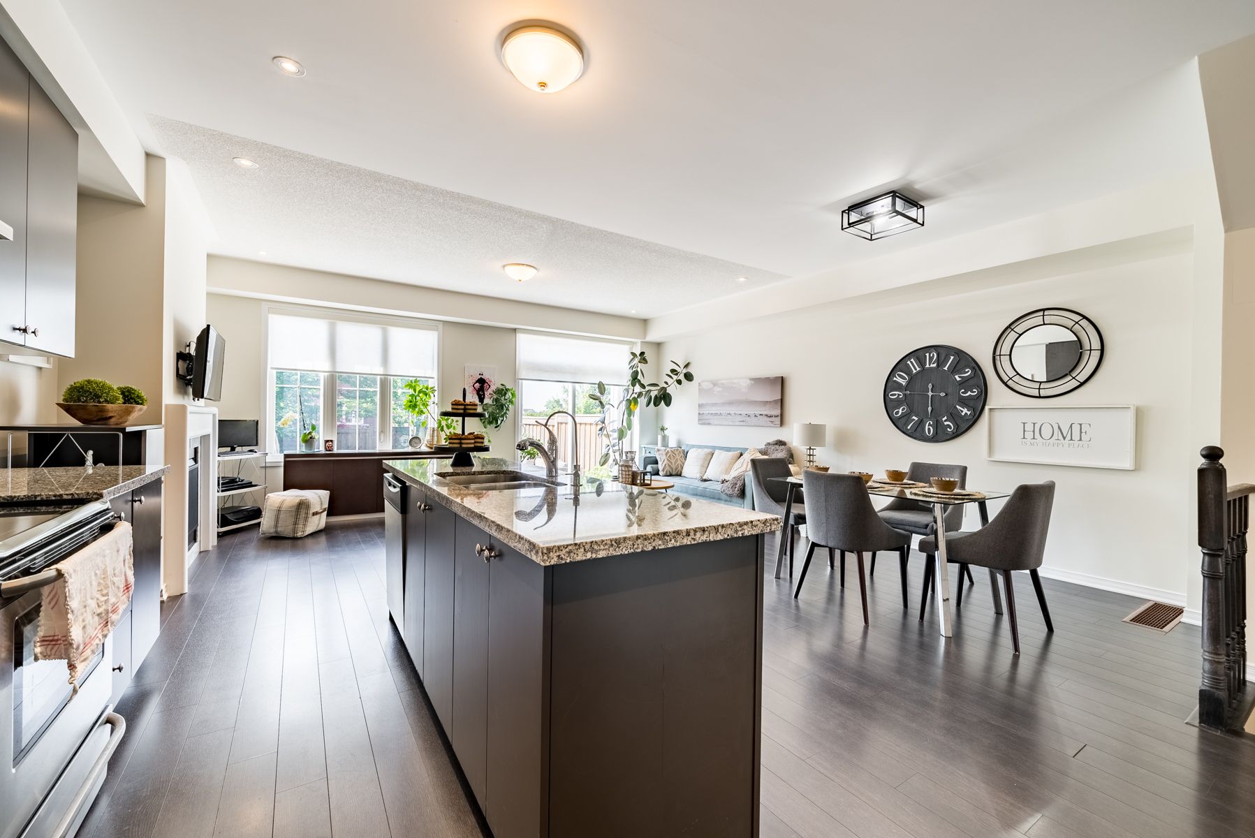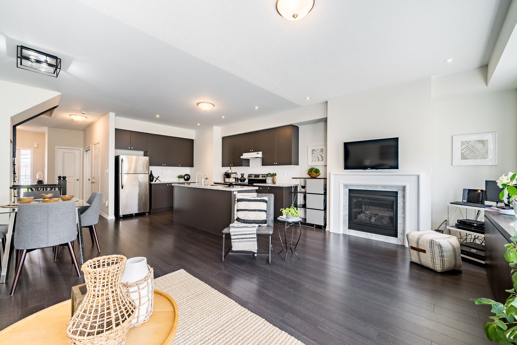 Look no further! This Stunning 4 Bedroom, 3 bath Executive Townhome is Situated in Family Friendly Brooklin! Enter the inviting foyer to the open concept main floor plan featuring 9ft ceilings, gorgeous laminate floors & gourmet kitchen complete with granite counters, centre island, subway tile backsplash, stainless steel appliances, pot lights & spacious dining area. The great room is warmed by the cozy gas fireplace & offers a sliding glass walk-out to the South Facing Backyard - perfect For Entertaining! Upstairs offers 4 Well Appointed Bedrooms including the Primary retreat With Walk-In Closet & beautiful 4pc Ensuite. Convenient Direct Access To Garage, unspoiled basement with rough-in bath & cold cellar. Steps To Ravine & tranquil walking trails, Mins To Hwy 407 & transits & only walking distance to demand schools, parks & more! This home has it all & truly exemplifies pride of ownership throughout!POTL maintenance fee covers common areas, garbage & snow removal.
