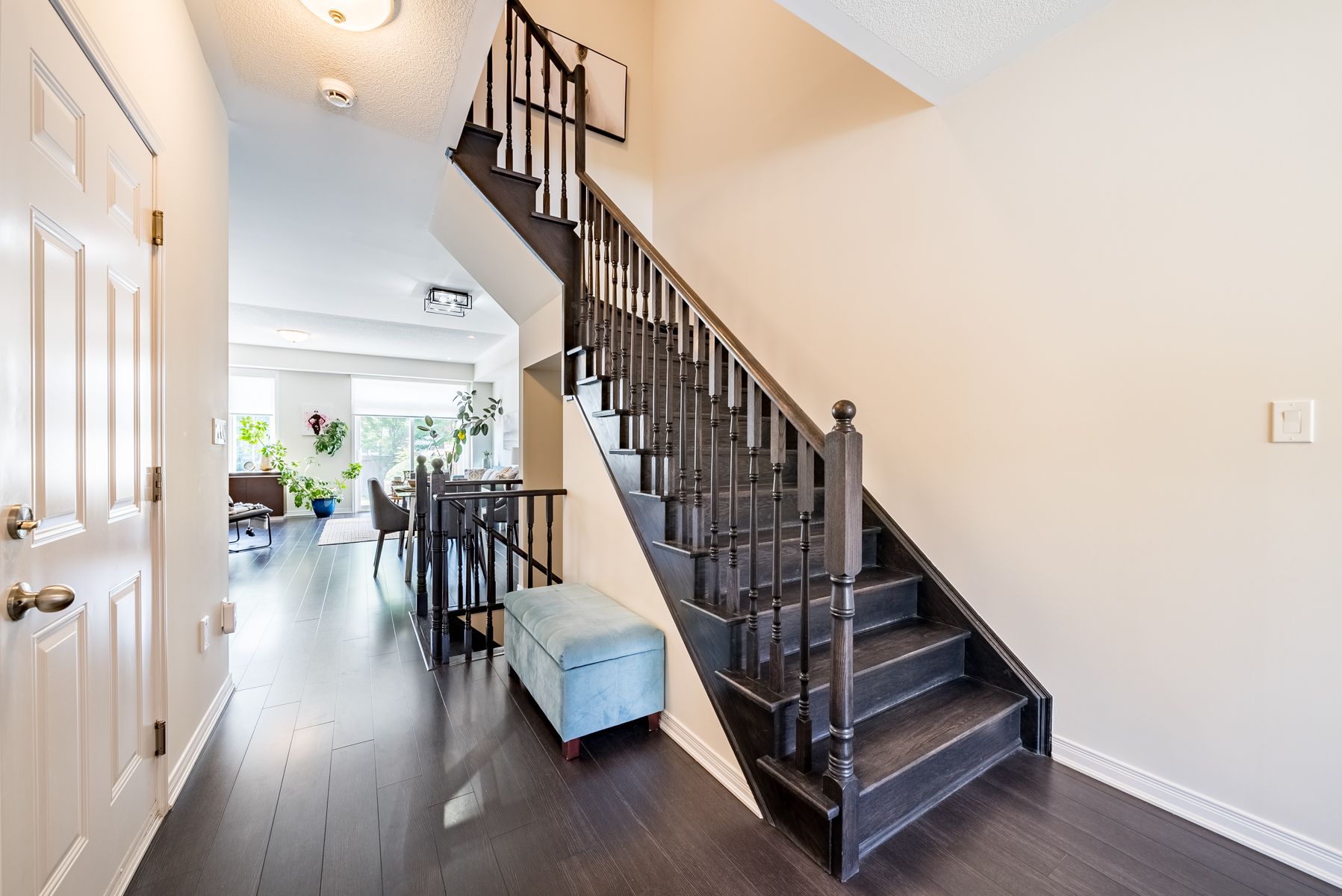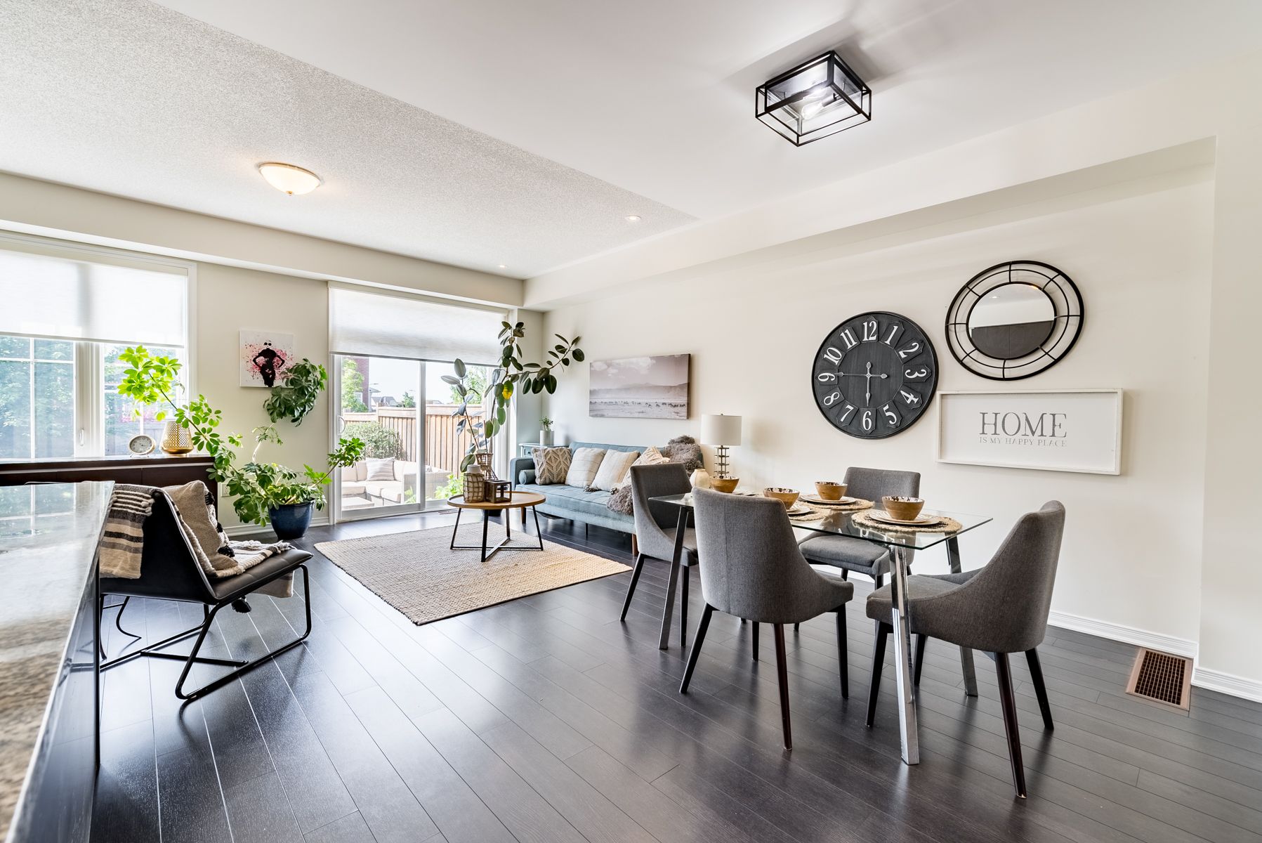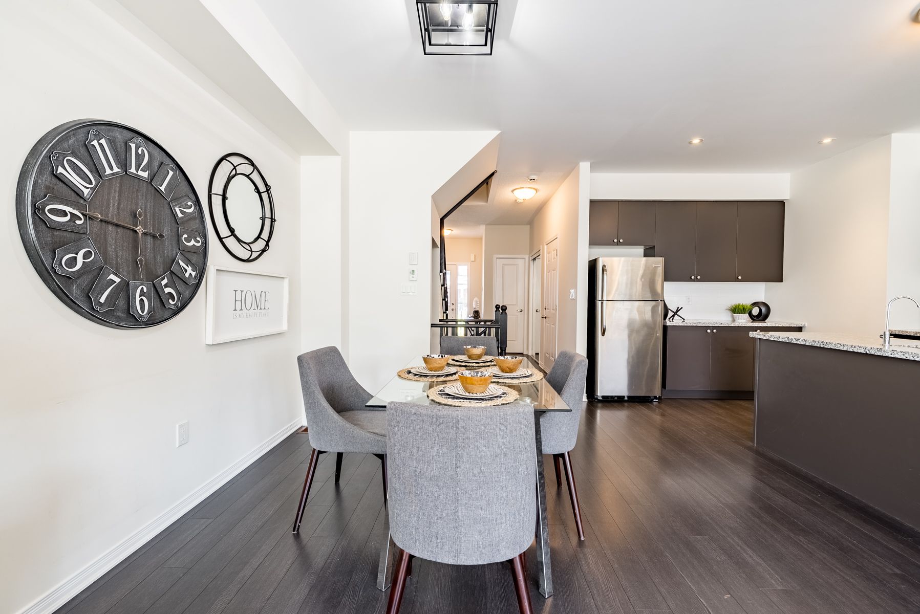 Look no further! This Stunning 4 Bedroom, 3 bath Executive Townhome is Situated in Family Friendly Brooklin! Enter the inviting foyer to the open concept main floor plan featuring 9ft ceilings, gorgeous laminate floors & gourmet kitchen complete with granite counters, centre island, subway tile backsplash, stainless steel appliances, pot lights & spacious dining area. The great room is warmed by the cozy gas fireplace & offers a sliding glass walk-out to the South Facing Backyard - perfect For Entertaining! Upstairs offers 4 Well Appointed Bedrooms including the Primary retreat With Walk-In Closet & beautiful 4pc Ensuite. Convenient Direct Access To Garage, unspoiled basement with rough-in bath & cold cellar. Steps To Ravine & tranquil walking trails, Mins To Hwy 407 & transits & only walking distance to demand schools, parks & more! This home has it all & truly exemplifies pride of ownership throughout!POTL maintenance fee covers common areas, garbage & snow removal.