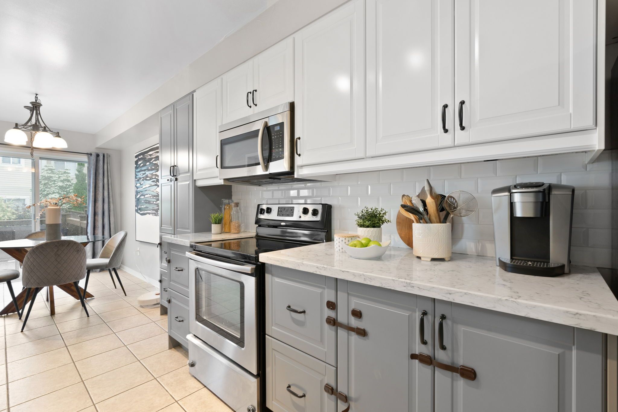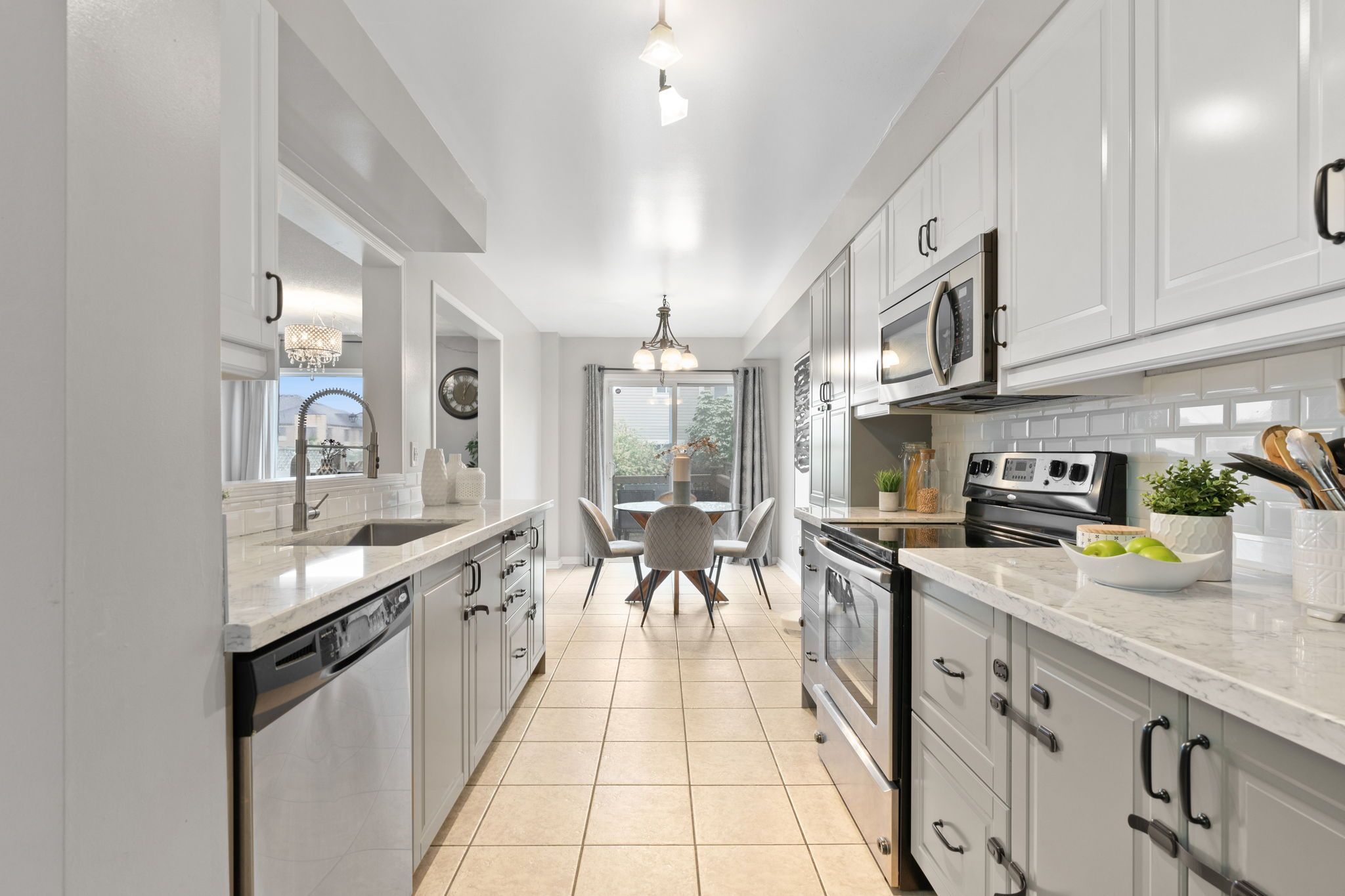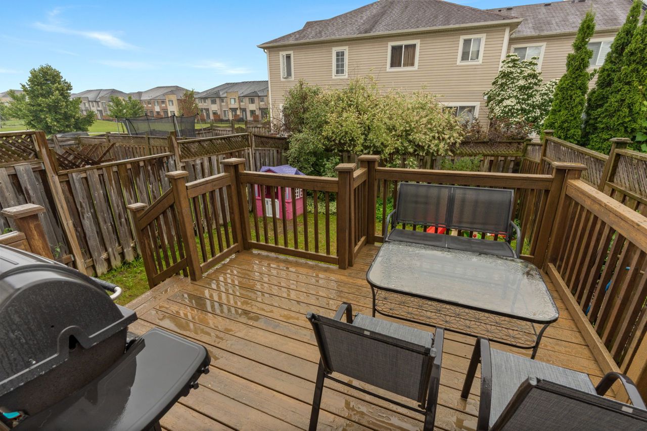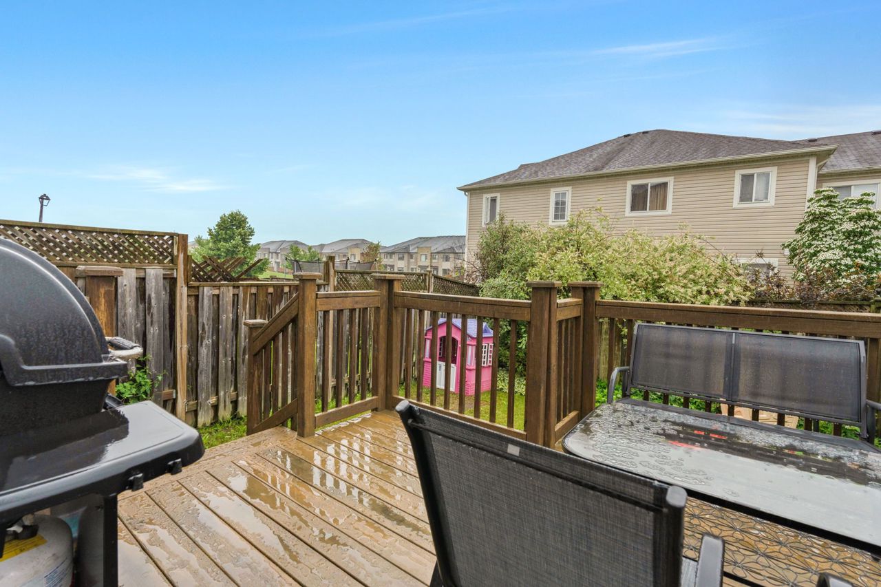 Welcome To This Freehold Townhouse In The Highly Sought After Pringle Creek Neighborhood Close To Every Convenience. This Spacious Townhouse Features 3 Bedrooms And A Modern Updated Kitchen Equipped With Quartz Counter Top, Back Splash And Stainless Steel Appliances. Large Window In The Living Room Area Allow Plenty Of Natural Light To Flood In, Creating A Bright And Welcoming Atmosphere. Kitchen And Breakfast Area Flows Out Onto The Freshly Painted Deck With The BBQ Gas Connection In The Backyard All Ready For The Summer To Enjoy.Vinyl Flooring in the Living Room 2022 & Roof 2020. Conveniently Located Near Hwy 401, Schools, Parks, Banks And Restaurants.