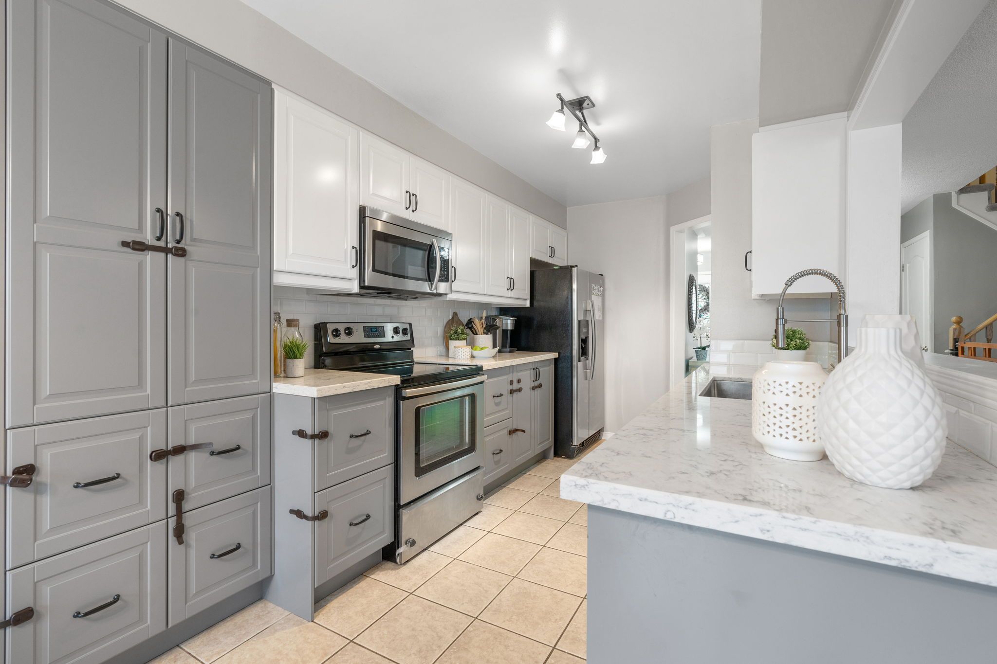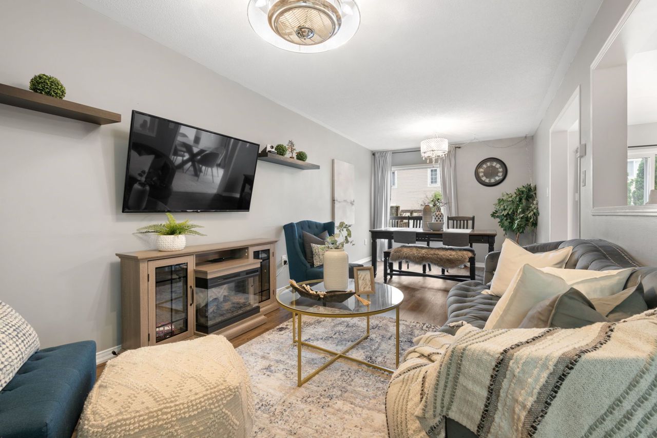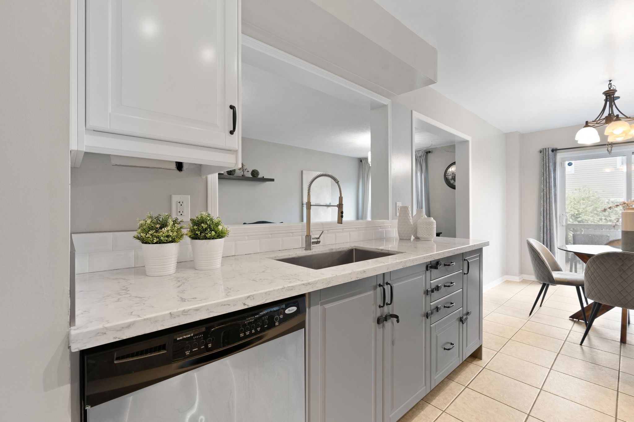 Welcome To This Freehold Townhouse In The Highly Sought After Pringle Creek Neighborhood Close To Every Convenience. This Spacious Townhouse Features 3 Bedrooms And A Modern Updated Kitchen Equipped With Quartz Counter Top, Back Splash And Stainless Steel Appliances. Large Window In The Living Room Area Allow Plenty Of Natural Light To Flood In, Creating A Bright And Welcoming Atmosphere. Kitchen And Breakfast Area Flows Out Onto The Freshly Painted Deck With The BBQ Gas Connection In The Backyard All Ready For The Summer To Enjoy.Vinyl Flooring in the Living Room 2022 & Roof 2020. Conveniently Located Near Hwy 401, Schools, Parks, Banks And Restaurants.