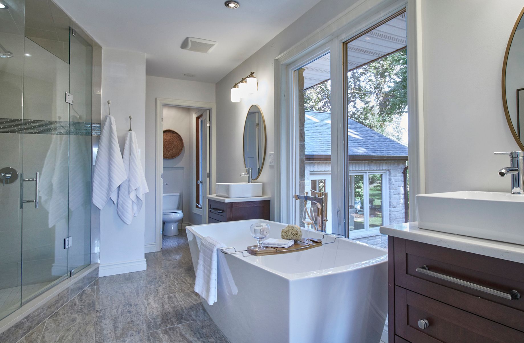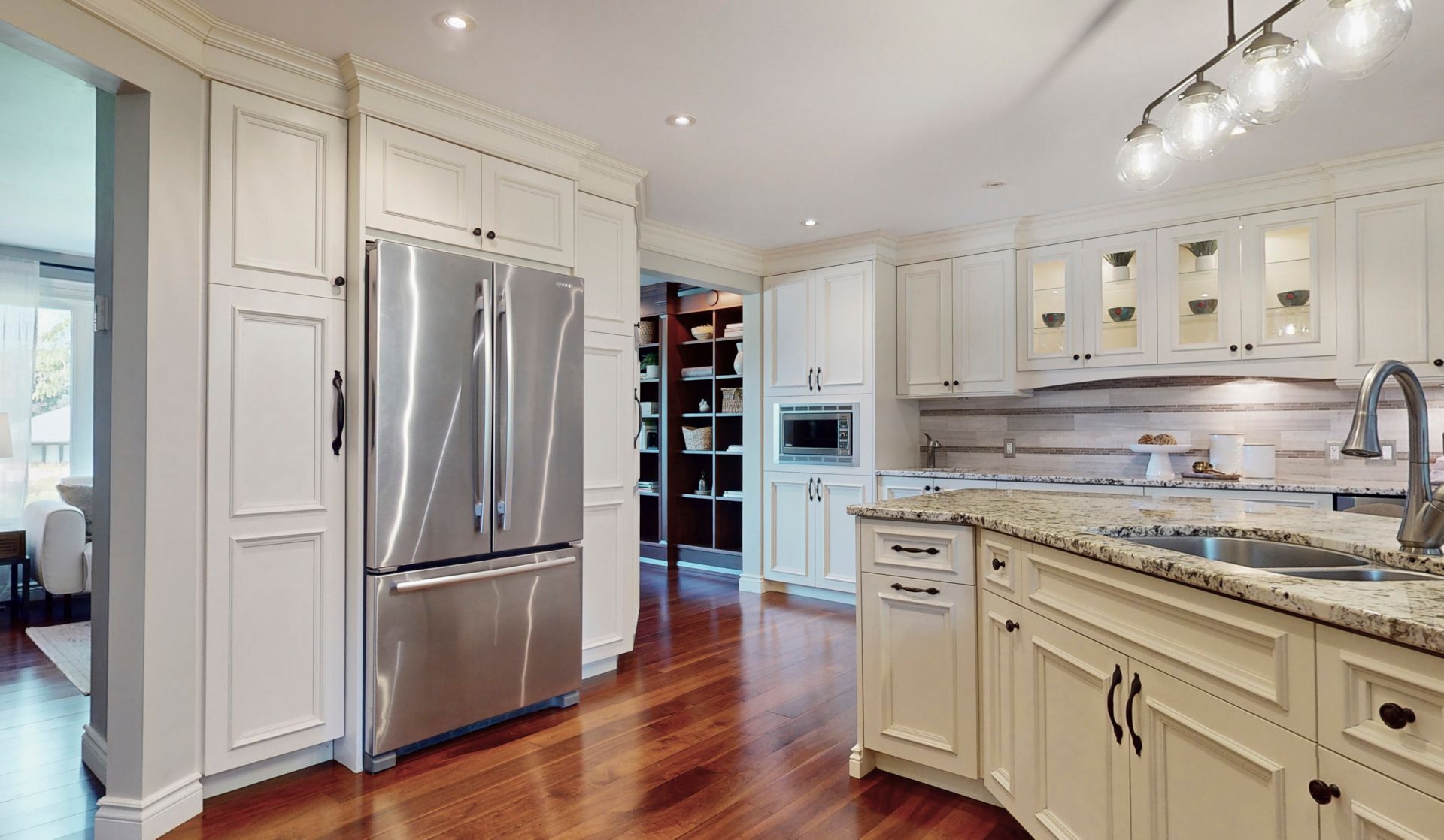 Pride of ownership shines throughout this exceptional home, located in Whitby's sought after neighborhood of Lynde Creek. Stone exterior, eave pot lighting, attached Tandem garage walks up to back yard. Beautiful open concept addition, with cathedral ceilings, Great room, Kitchen, & dining area. Floor to ceiling stunning gas fireplace, multiple walk outs, gleaming wide plank Walnut flooring, Granite counter tops, with marble backsplash, large centre breakfast bar, side counter with 2nd sink, show piece glass cupboards, and stainless steel appliances. Oasis 5 piece ensuite in Primary bedroom with walk out to sundeck. Enjoy morning coffee, or evening cocktails overlooking private mature yard. Walk to schools, parks, transit, easy access to 401, & 407. Custom quality upgrades, a pleasure to view and a incredible place to call home!Efficient Forced Air gas Boiler heating system, with heated flooring in the front entrance
