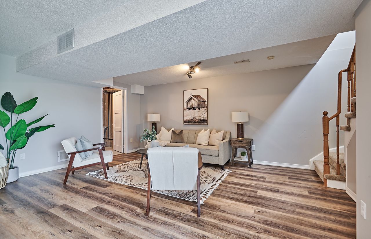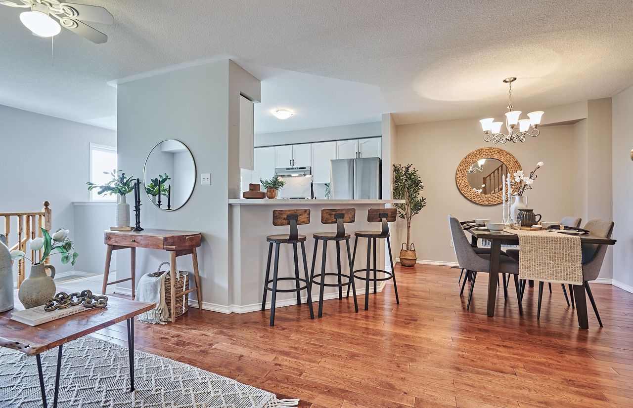 Stunning & Spotless 3 Bed 3 Bath Freehold Townhome / Desirable Williamsburg / Hardwood Floors / Open Concept / Kitchen Features New Quartz Counter & Stainless Steel Appliances / Backs Onto & Overlooks Pond & Greenspace / Private Fenced Yard & Deck / Walk Out Basement with New Vinyl Plank Flooring / Huge Ensuite & W.I.C.C. / Direct Access to Garage / Lots of Storage/ Close to 3 Great Schools, Transit, Shopping, 412 & 401.Freshly Painted Throughout, New Broadloom, New - Quartz Counter, Washer, Fridge, Stove & B.I. Dishwasher, Roof’18