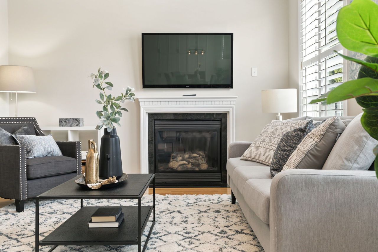 Gas Fireplace O/Looks Backyard Hardwood Floor