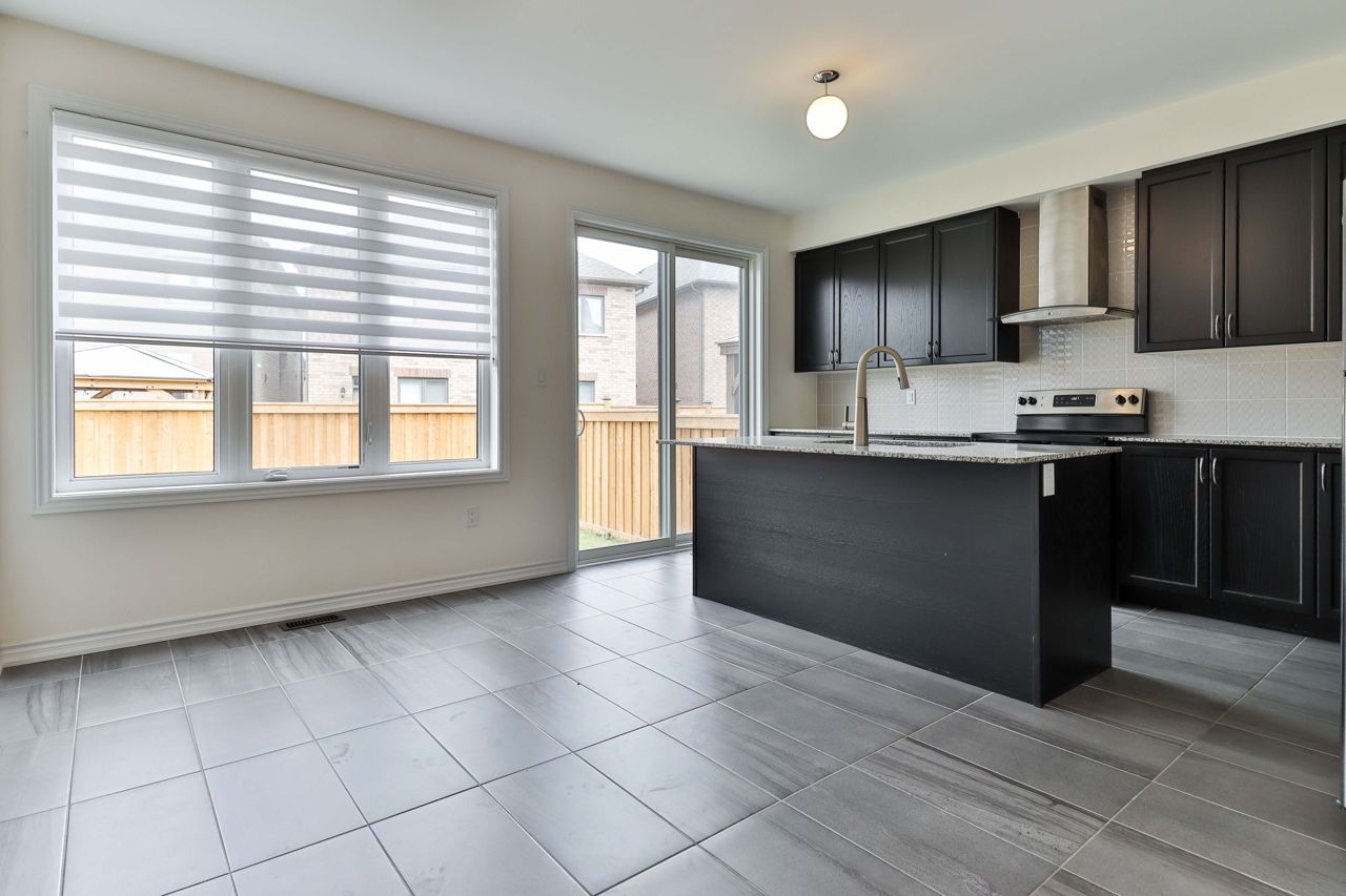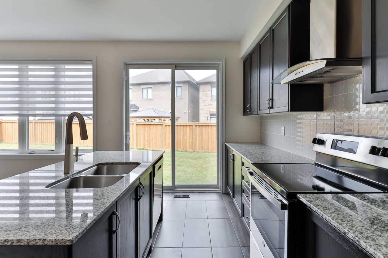 Bright & Spacious 2130 sq ft 4 Bdrm detached with huge backyard, still under Tarion Warranty. $$$ spent on upgrades w/builder. Easy access to hwy 401/412. Smooth 9 Ft ceiling on main flr, gas fireplace in living rm. An entertainer's kitchen w/granite counter top, modern cabinets, gas stove & stainless steel appliances. Master with upgraded ensuite & Walk-in closet. Basement with separate side entrance and rough-in washroom.