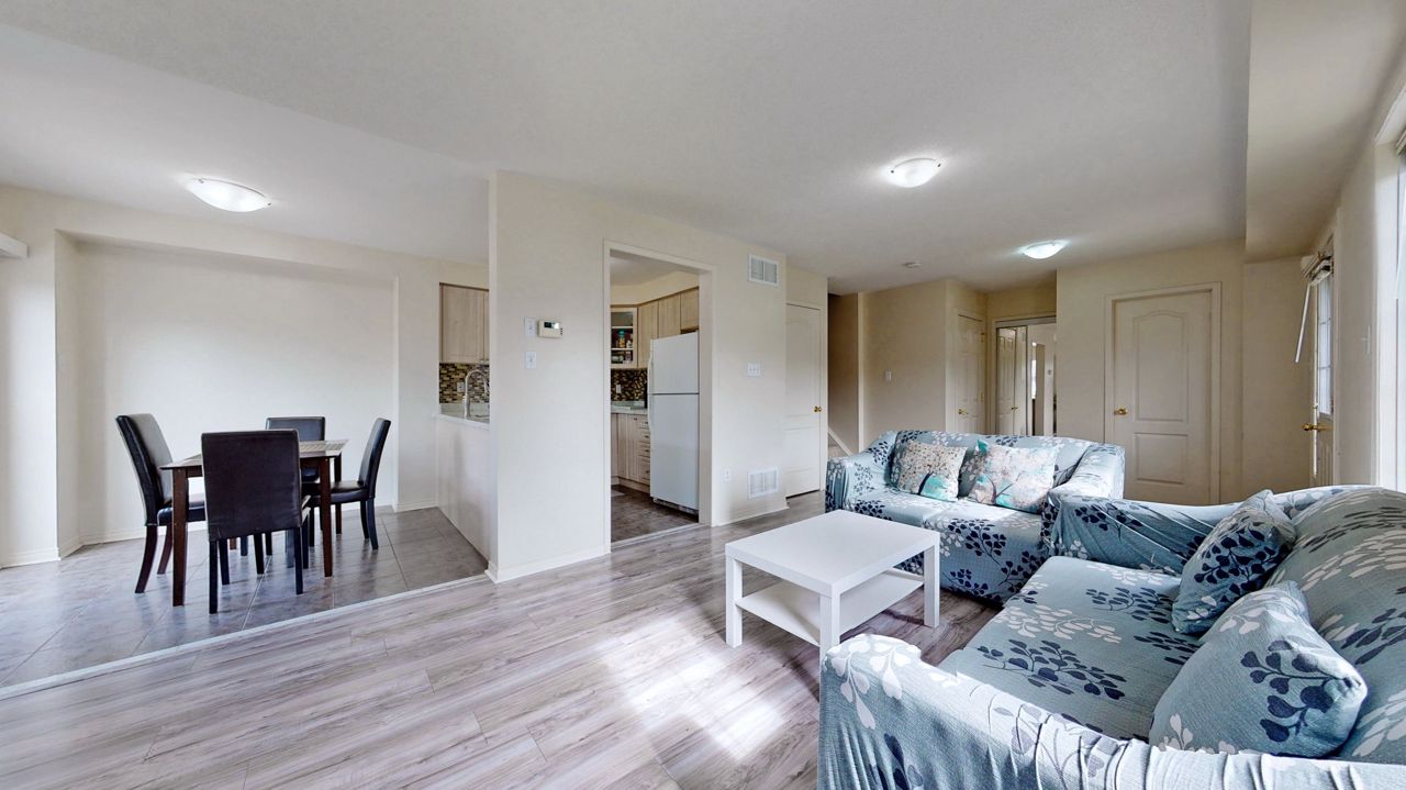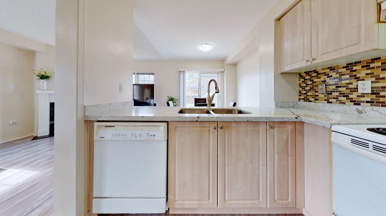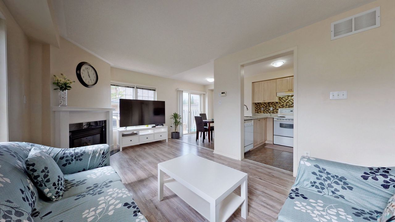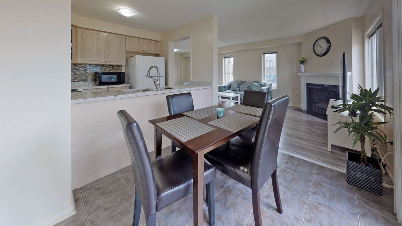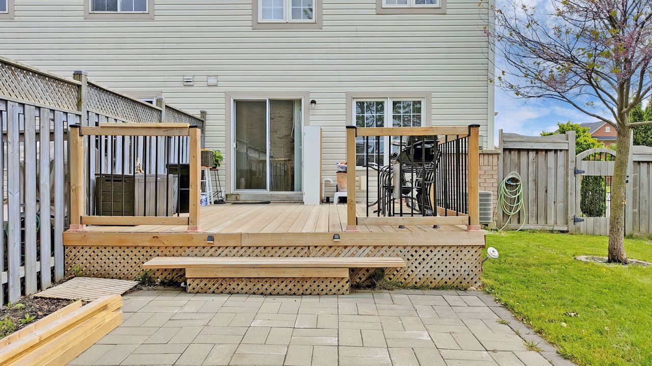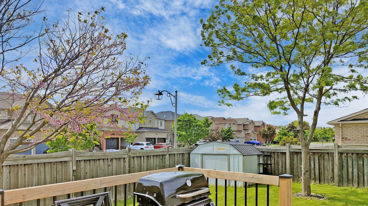 It's Hot Hot Hot - Summer In The Air - This Home Is Ideal For Family With Children -Location Speaks It All ! Home Facing Unobstructed View Of Community Water Splash Park -This Impressive Rare Corner Lot Townhouse Features A Wrap Around Porch & Fenced Yard With 16 x 14 Feet Deck & Garden Shed. Located on the North Side of the Street With Main Door On The East Side. Feels Like A Semi With A Very Open Concept Layout And Updated Laminate Flooring , Gas Fireplace And Direct Access From Garage. 3 Decent Size Bedrooms And 4 Bathrooms. Master Bedroom Features Large Walk-In Closet And Ensuite Bath. A Modern Kitchen With Upgraded Quartz Counter Top & New Sinks. Backyard Is Fenced & Gets You Quite A Privacy. Professionally Finished Basement With A 3 Piece Full Bathroom & Laminate Flooring Adds More To Your Living Space. Very High Demand Location & In Sought In Pringle Creek Area, Close To Shopping, Transit & Highways 401, 407 & 412.Overnight notice for showing. All Elfs, Gas Fireplace, Air Conditioner Unit, Wrap Around Front Porch. New Fridge , Stove, B/I Dishwasher, Washer, Dryer, Garden Shed, Door Opener & Remote(S).