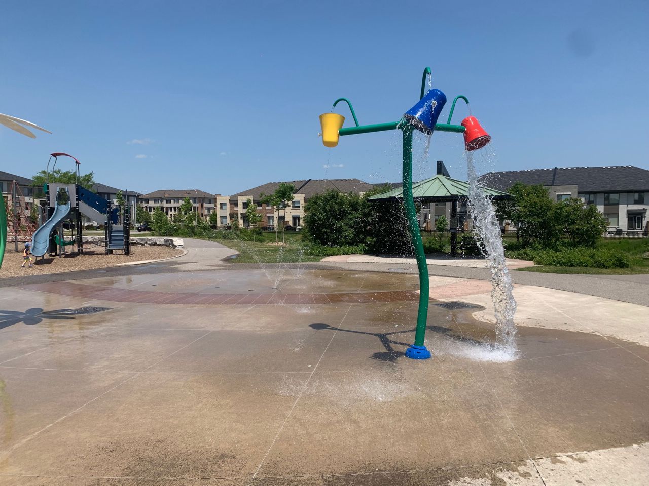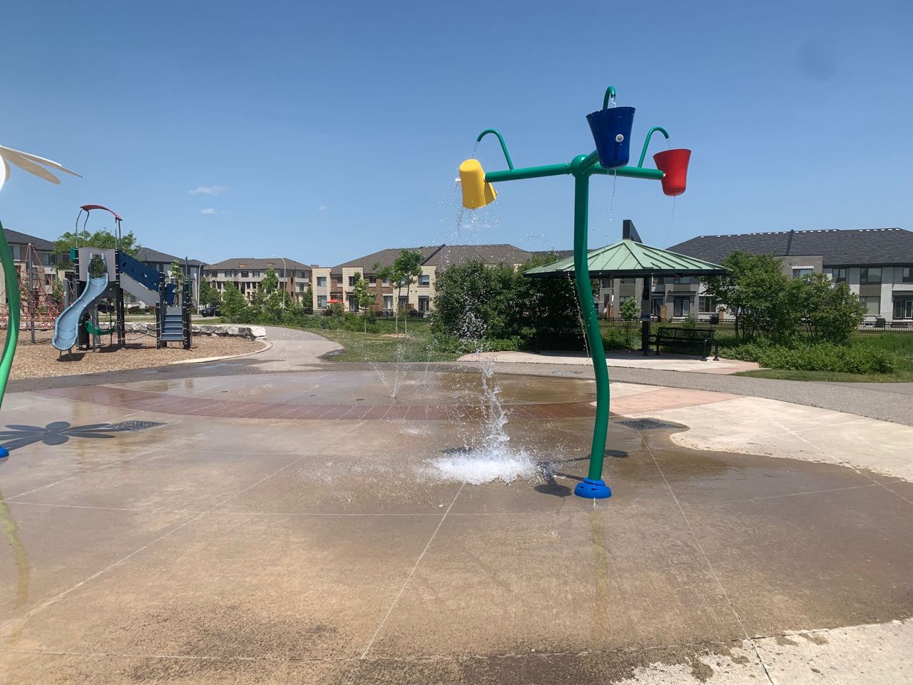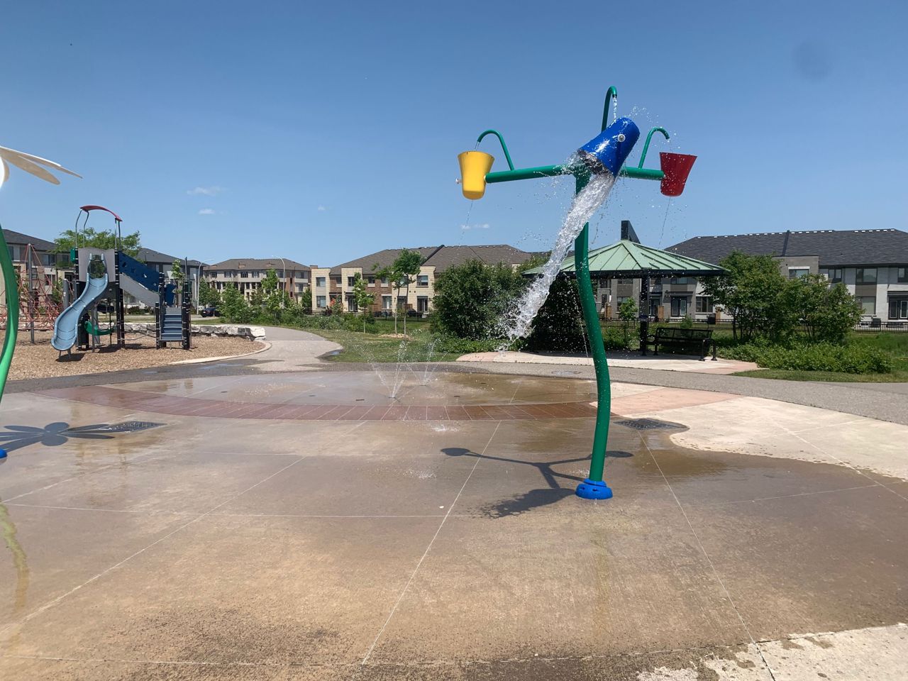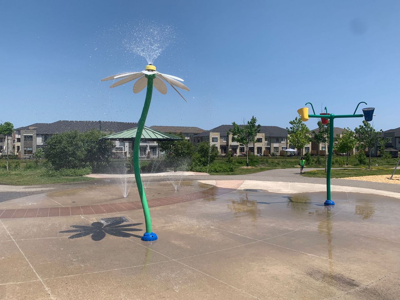 It's Hot Hot Hot - Summer In The Air - This Home Is Ideal For Family With Children -Location Speaks It All ! Home Facing Unobstructed View Of Community Water Splash Park -This Impressive Rare Corner Lot Townhouse Features A Wrap Around Porch & Fenced Yard With 16 x 14 Feet Deck & Garden Shed. Located on the North Side of the Street With Main Door On The East Side. Feels Like A Semi With A Very Open Concept Layout And Updated Laminate Flooring , Gas Fireplace And Direct Access From Garage. 3 Decent Size Bedrooms And 4 Bathrooms. Master Bedroom Features Large Walk-In Closet And Ensuite Bath. A Modern Kitchen With Upgraded Quartz Counter Top & New Sinks. Backyard Is Fenced & Gets You Quite A Privacy. Professionally Finished Basement With A 3 Piece Full Bathroom & Laminate Flooring Adds More To Your Living Space. Very High Demand Location & In Sought In Pringle Creek Area, Close To Shopping, Transit & Highways 401, 407 & 412.Overnight notice for showing. All Elfs, Gas Fireplace, Air Conditioner Unit, Wrap Around Front Porch. New Fridge , Stove, B/I Dishwasher, Washer, Dryer, Garden Shed, Door Opener & Remote(S).