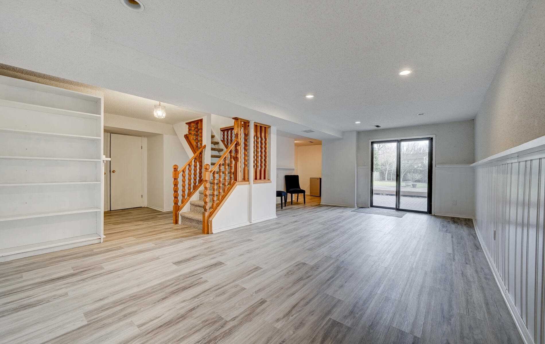 Hardwood Floor Crown Moulding O/Looks Backyard