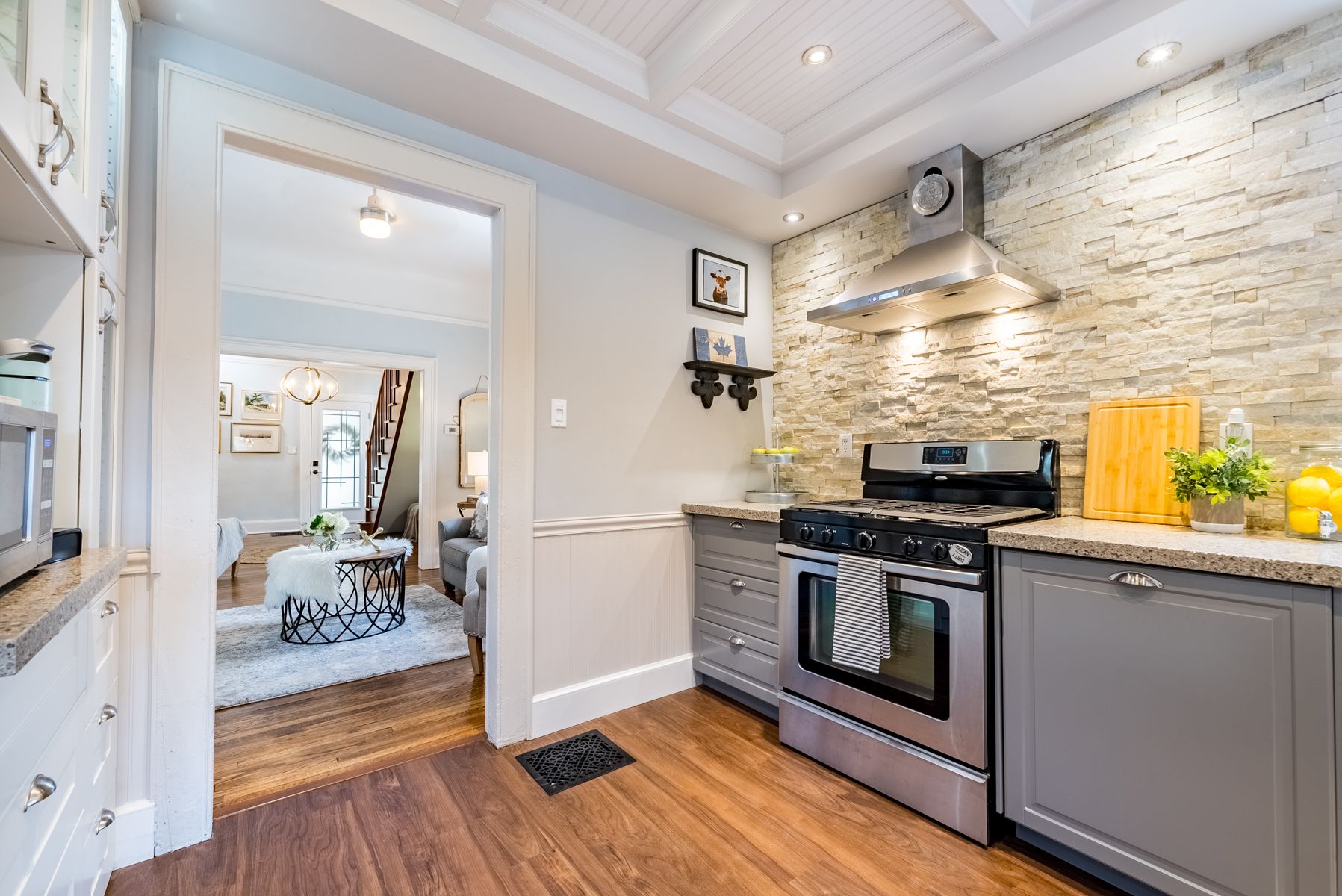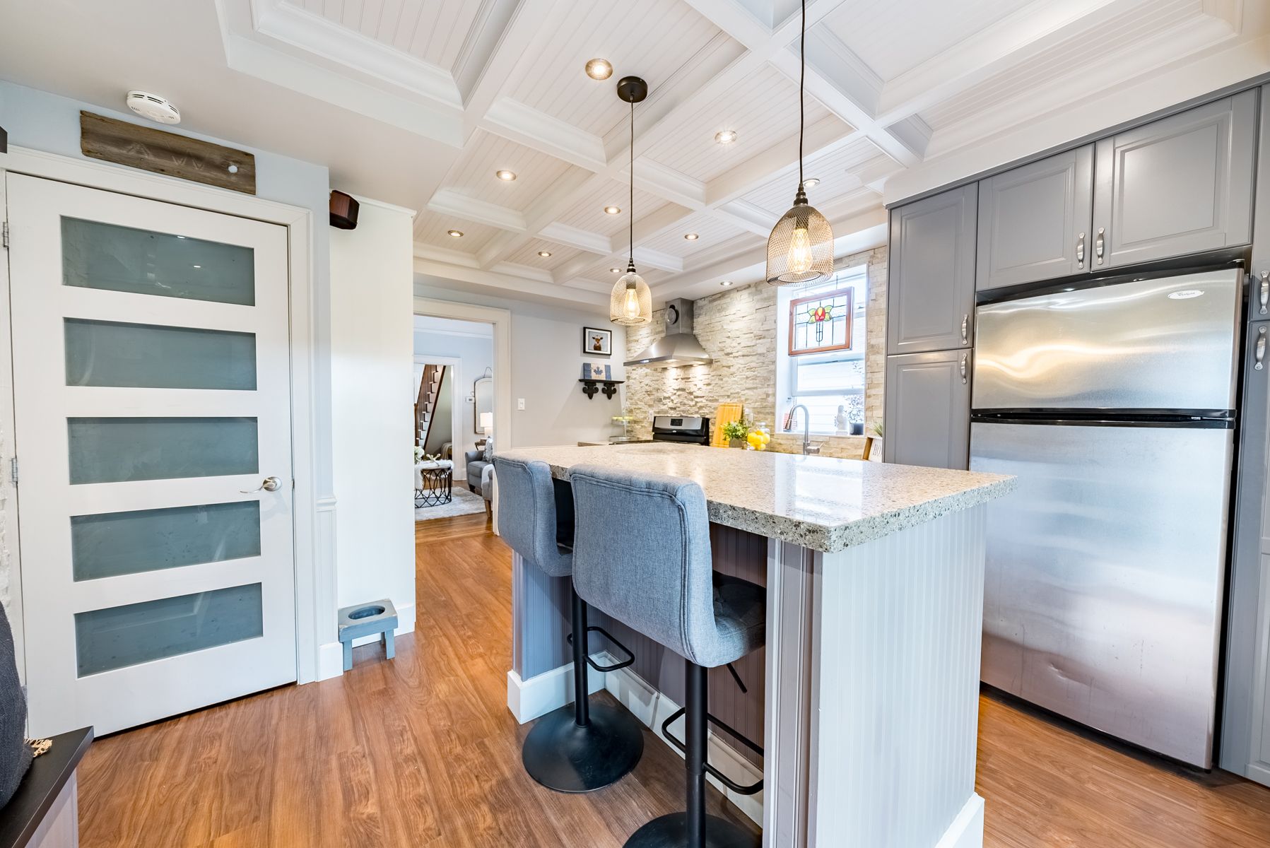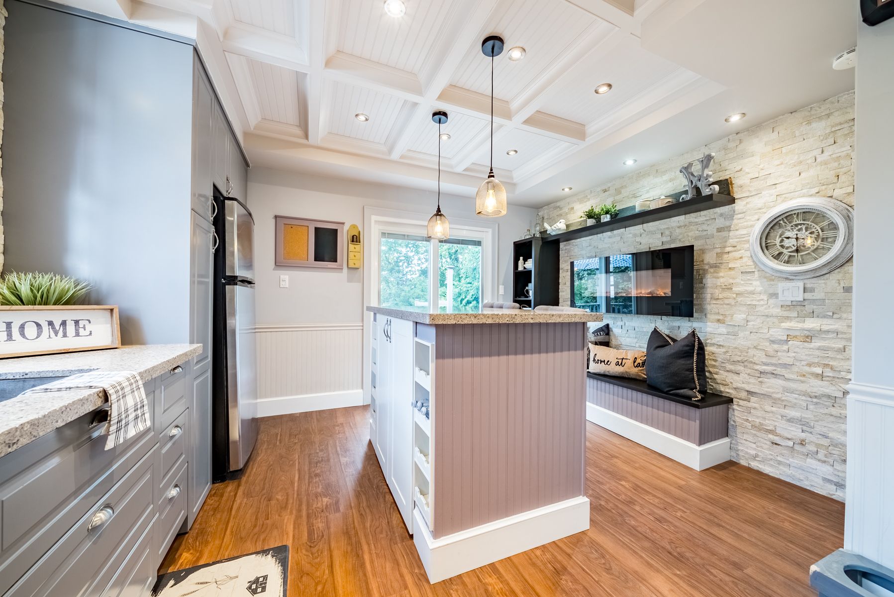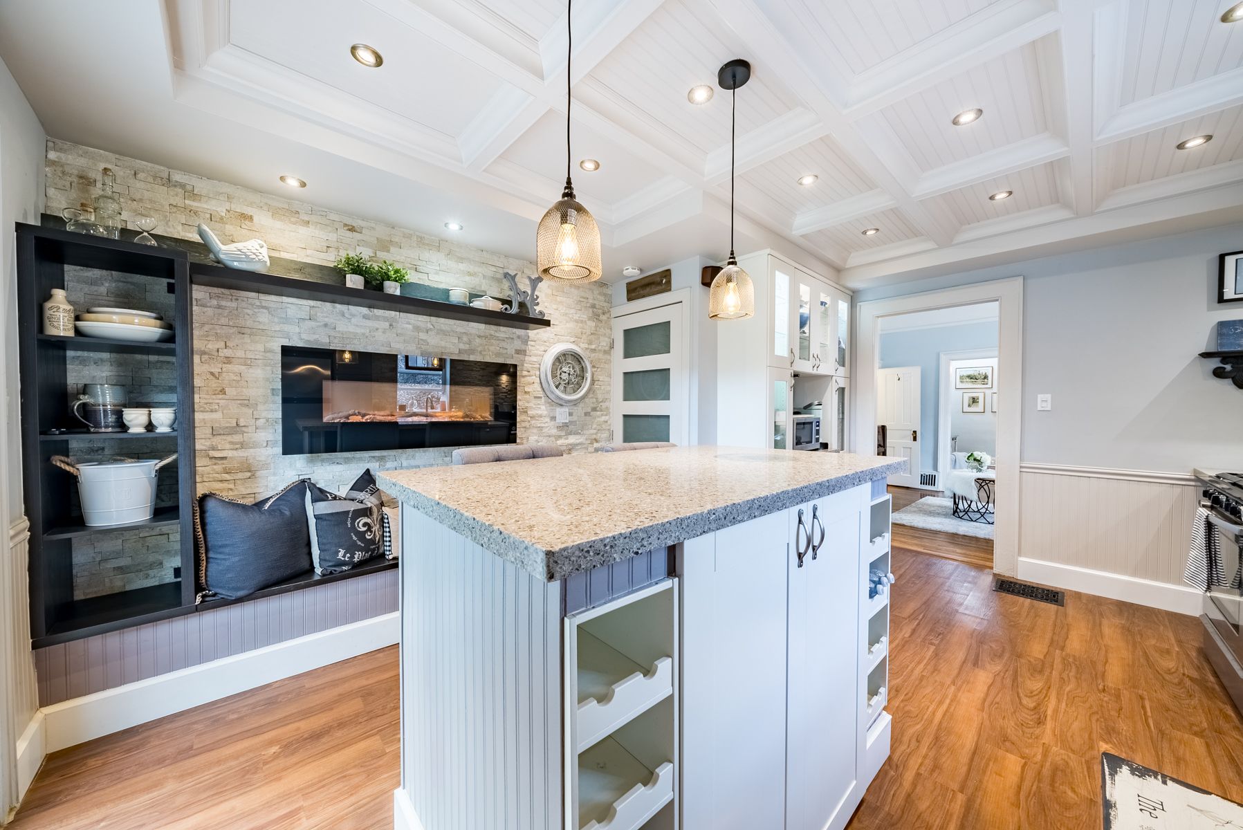 Granite Counter Stainless Steel Appl Coffered Ceiling