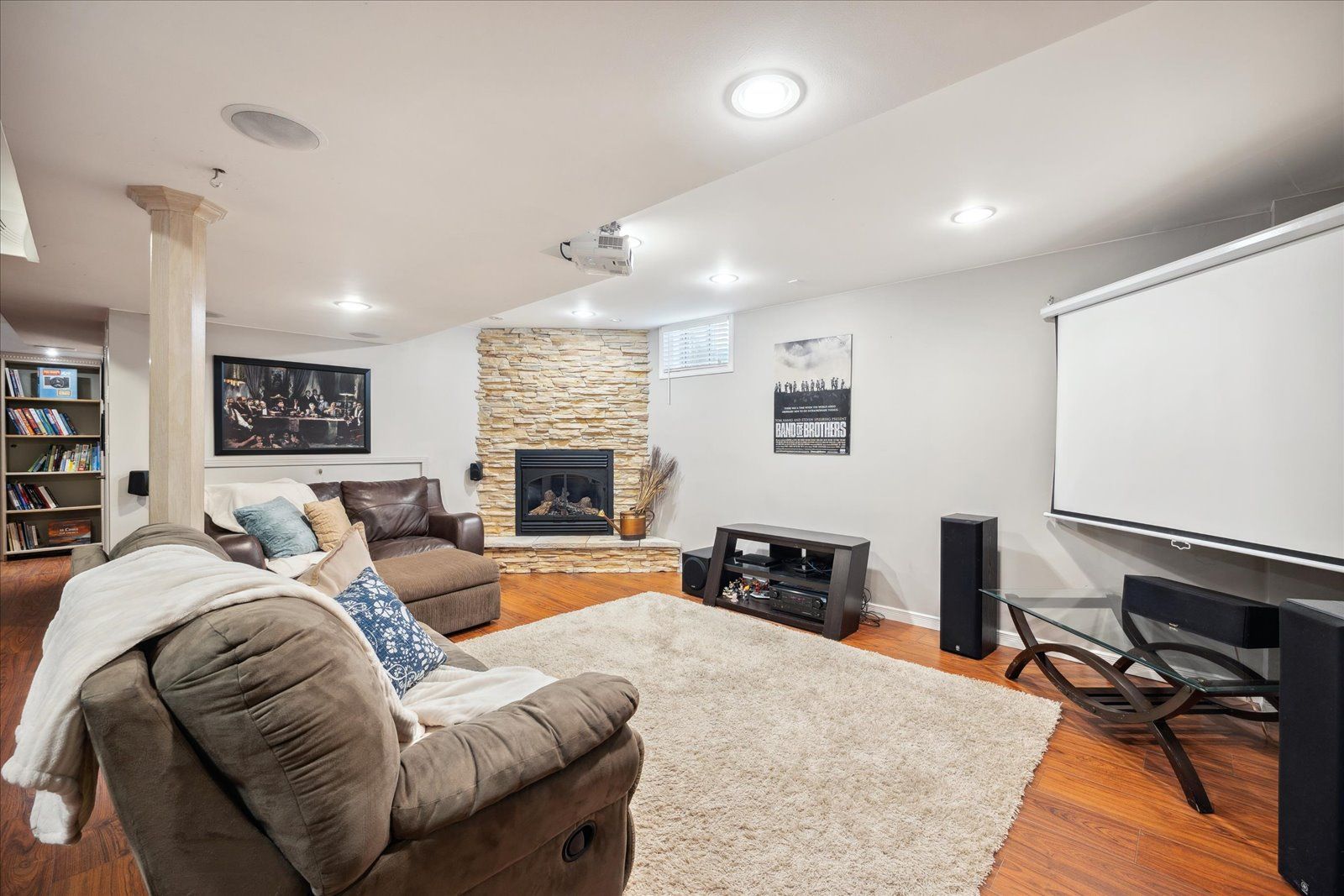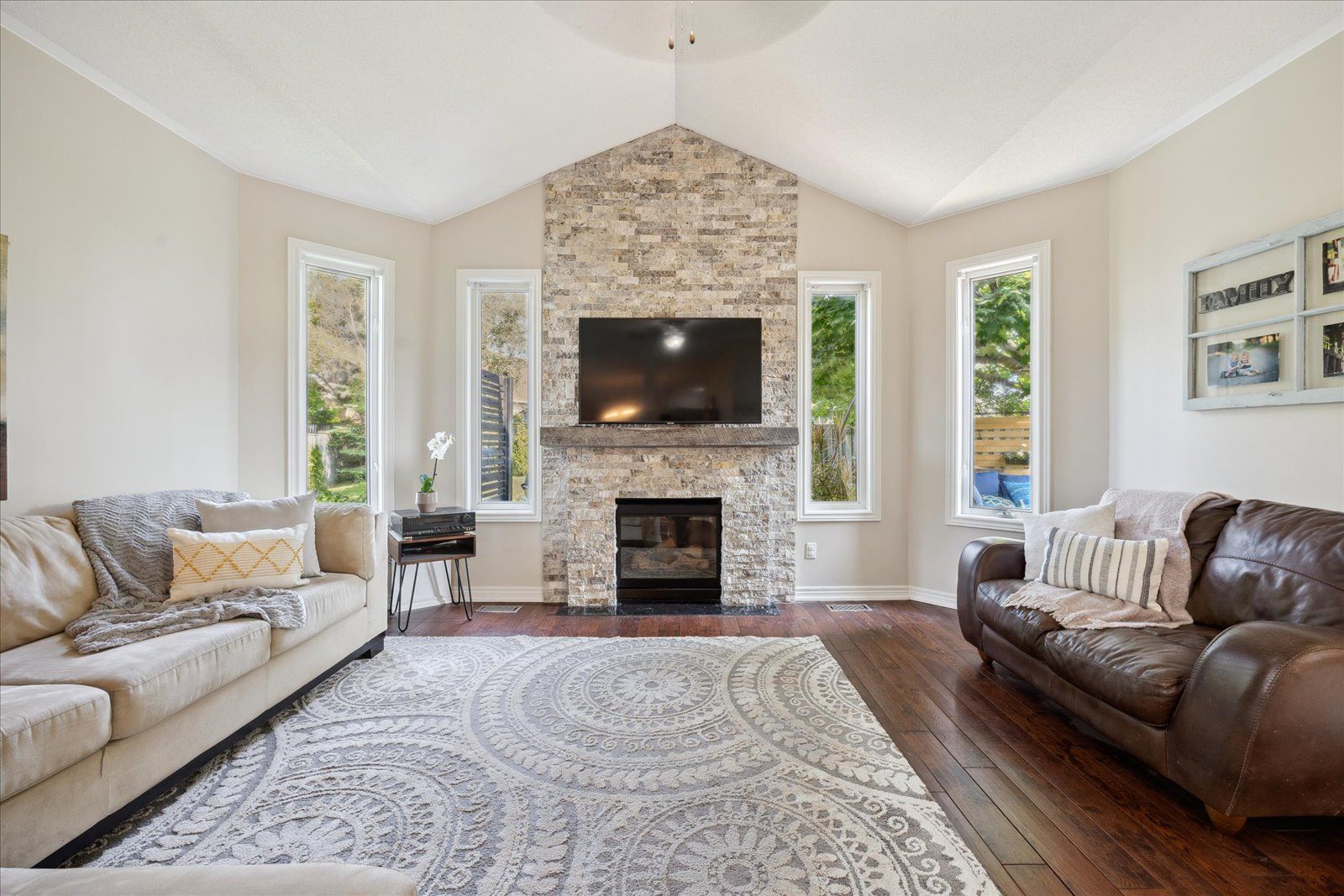 Hardwood Floor Gas Fireplace Vaulted Ceiling