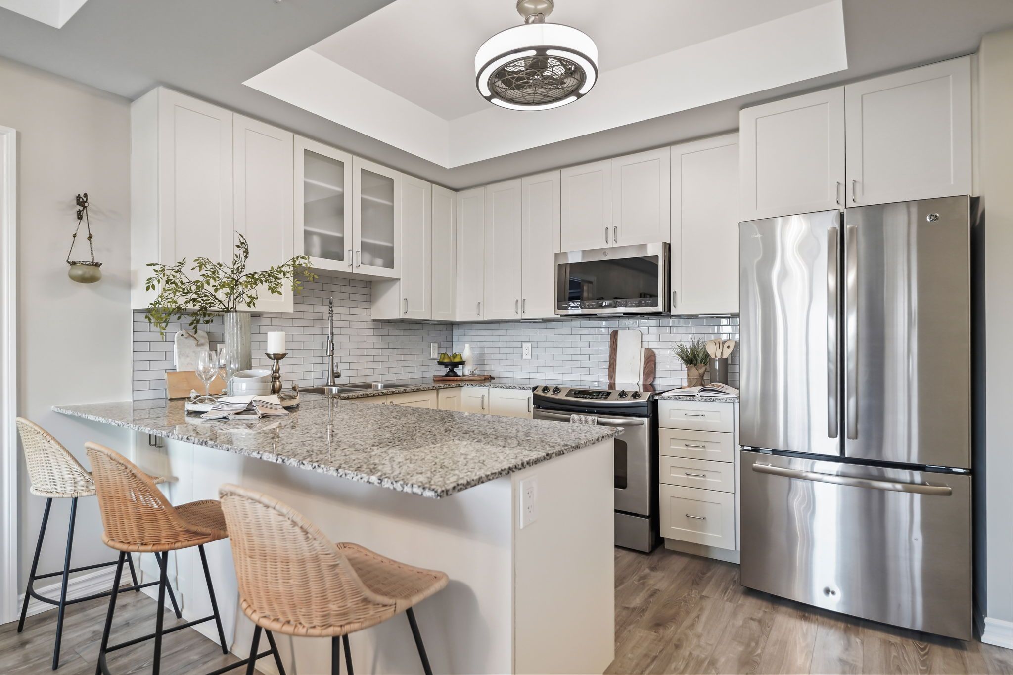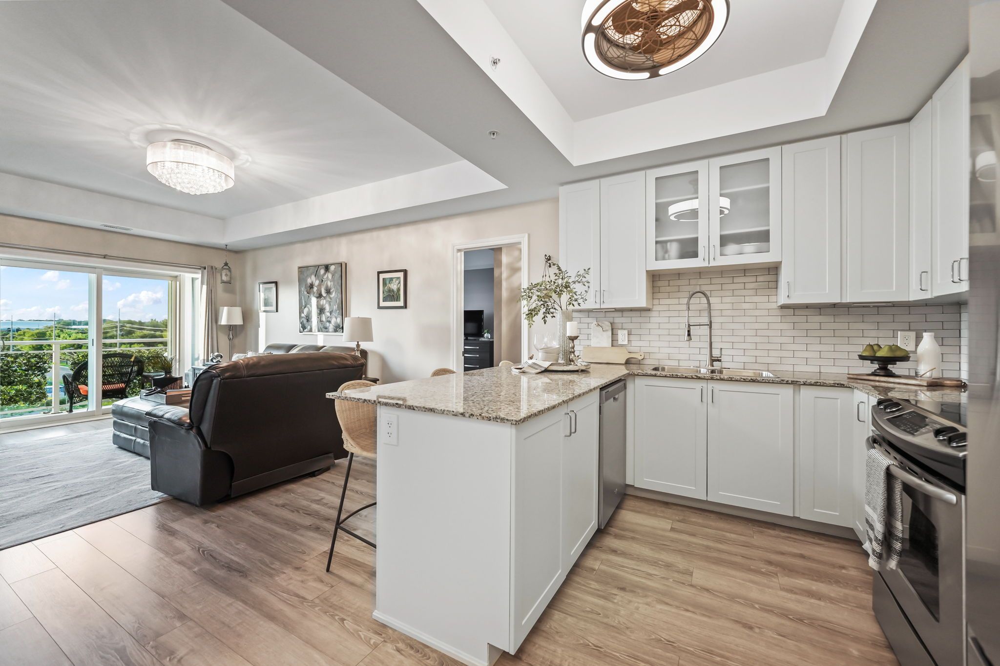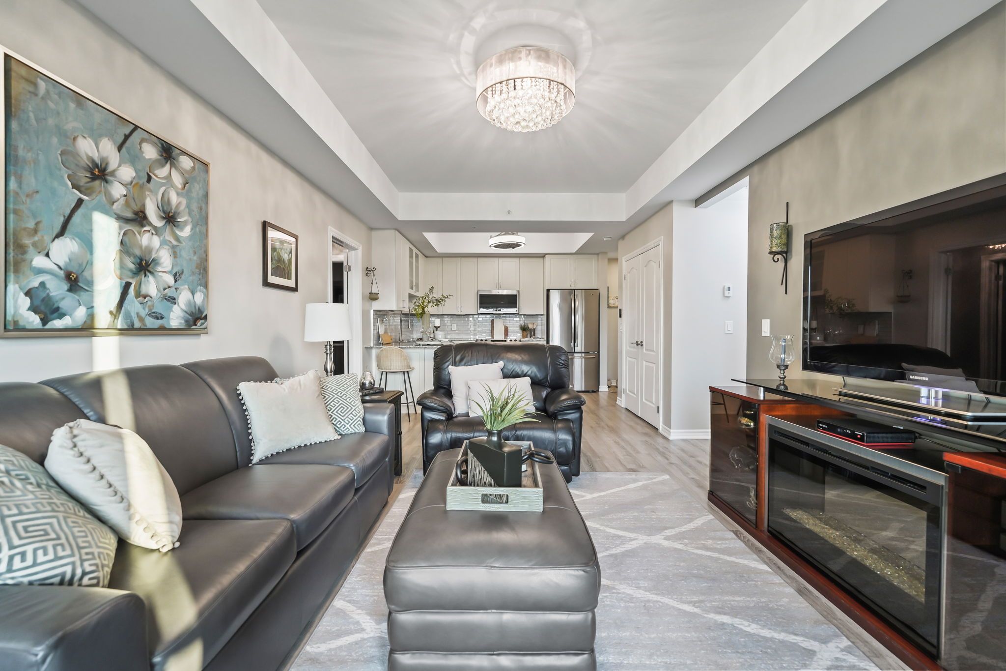 Welcome to 670 Gordon St, a beautiful lakeside community of medium high rise condominiums. This fantastic top floor unit features 2 spacious bedrooms and 2 sparkling bathrooms with natural light filling each room. A bright and open concept living space, you will love the beautiful contemporary finishes and upgrades throughout this condo. The impeccable kitchen features stainless steel appliances, a custom backsplash and large countertops with a breakfast bar perfect for home cooking or entertaining family and friends. The inviting living space walks out onto the open balcony adding even more square footage to the home. Watch the sunset and unwind after a long day. The elegant primary bedroom boasts a walk-in closet and 3 piece ensuite for your convenience while the second bedroom offers a double closet and large window. Original owner shows pride of ownership in this fantastic condo. 1 underground parking spot and ensuite laundry makes this condo absolute perfection!Located in an amazing neighbourhood just steps to the Waterfront Trail, Iroquois Beach and The Whitby Yacht Club. Only minutes to Hwy 401, Go Transit, restaurants, parks and shopping. You don't want to miss this one!