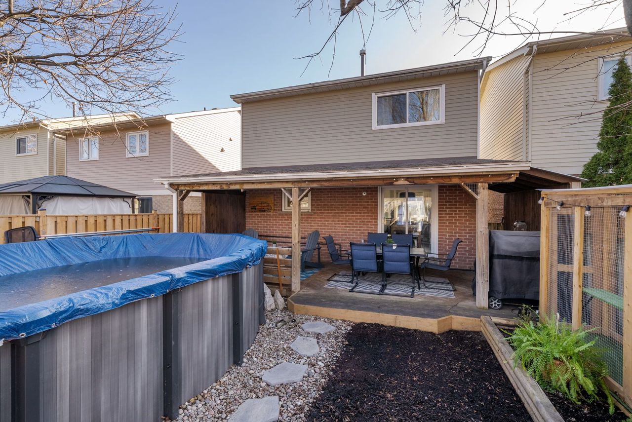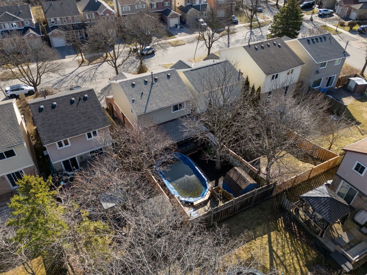 Nestled on a quiet street in the highly sought-after Williamsburg Community of Whitby, this meticulously cared-for and upgraded 3+1 bedroom, 4 bathroom home is a must-see. The main floor boasts a bright, spacious living and dining area, filled with natural light and designed for effortless entertaining. The beautifully updated kitchen features modern cabinetry, backsplash, and upgraded appliances that will delight any home chef. A seamless transition from indoors to outdoors leads to a private backyard oasis, complete with a heated above-ground pool and covered deck ideal for hosting gatherings, and enjoying the sunshine. Upstairs, you'll find three generously sized bedrooms, including a large primary bedroom with an upgraded 3-piece en-suite, providing a tranquil retreat after a long day. The fully finished basement offers a versatile living area with a kitchenette/bar, an additional bedroom with a 3-piece en-suite and egress window, making it perfect for an in-law suite or future investment opportunity. Located in one of Whitby's most desirable neighbourhoods, this home is just steps from parks, bike paths, schools, shopping, and transit options offering the perfect blend of comfort, style, and convenience. The community itself is renowned for its family-friendly atmosphere, making this property an excellent choice for those looking to establish roots in a vibrant and welcoming area. Upgrades and features include: roof: 2018, furnace/AC: 2019, several windows: 2023, basement, including bathroom: 2022, 2nd floor hallway bath: 2022, primary en suite: 2022, powder room: 2023, stackable Samsung washer/dryer: 2023, 12x24 pool: 2023, pool heater: 2020, main flooring: 2019, gas line for BBQ included, freshly painted throughout.