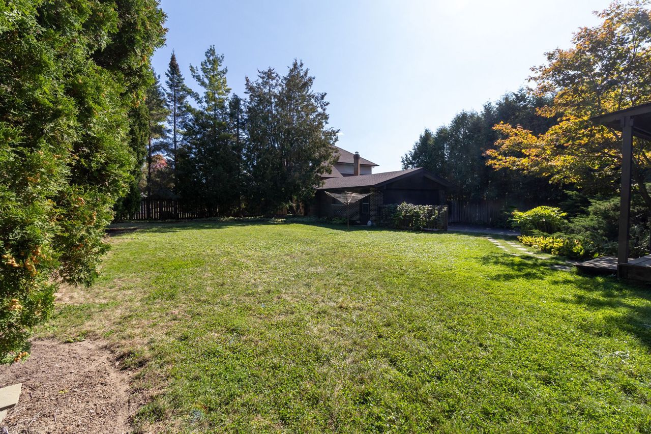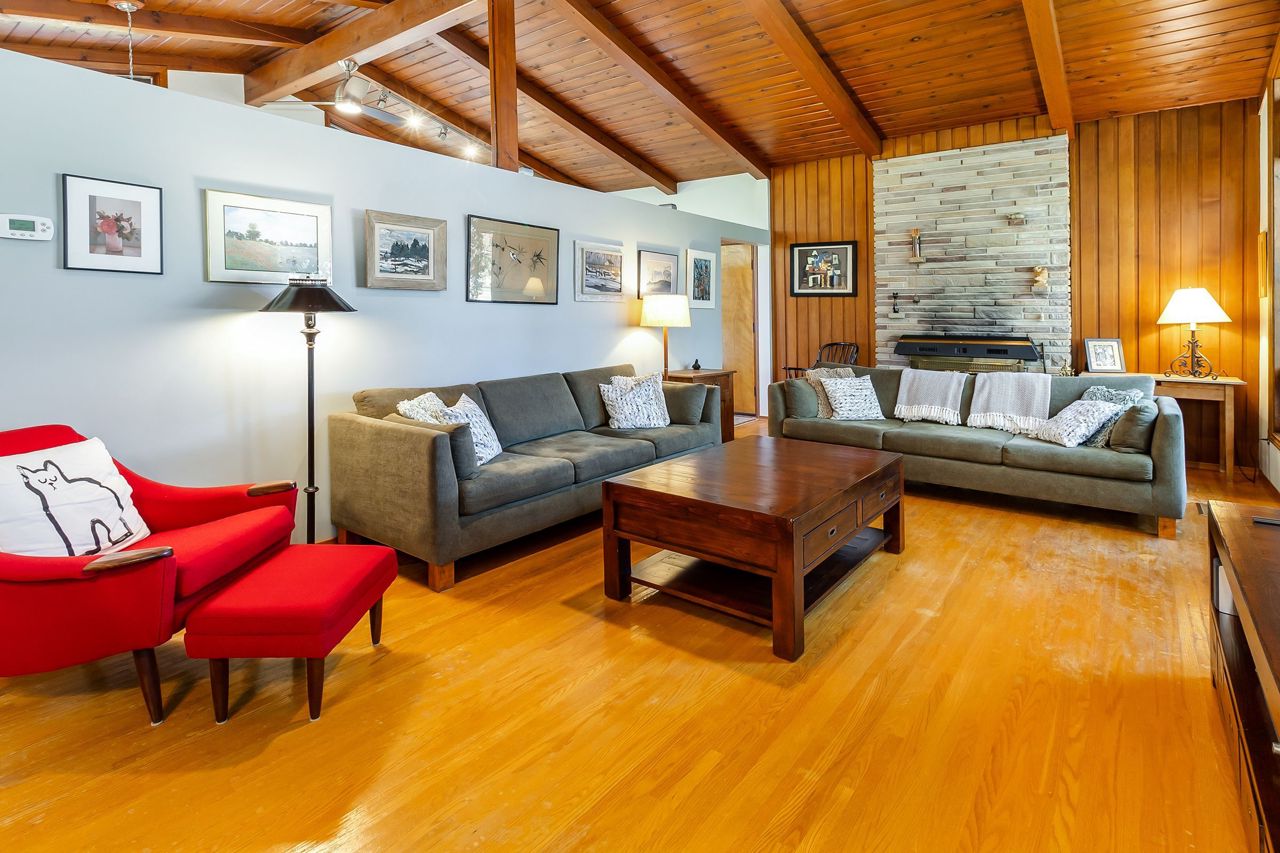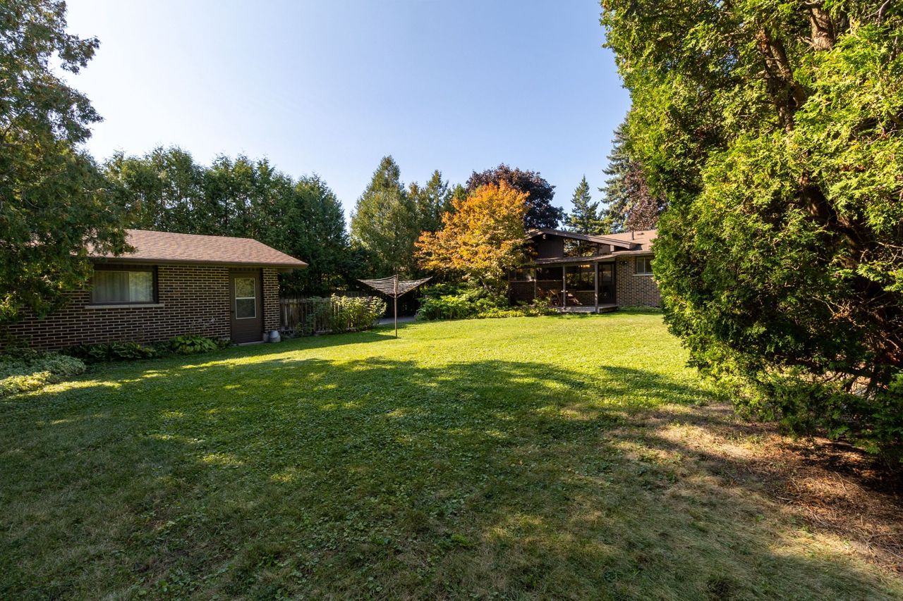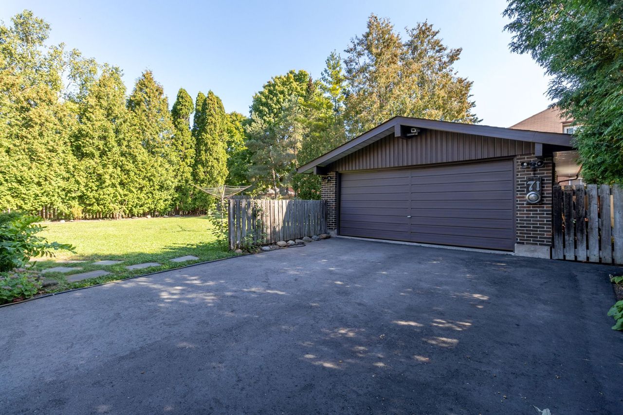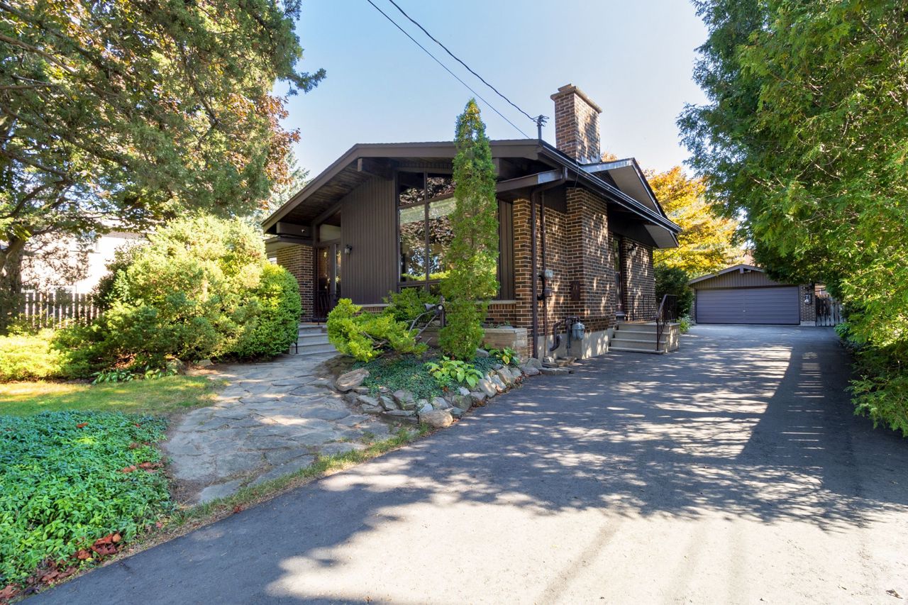 Nestled in the trees on a large 73 x 200 ft lot, this mid-century bungalow is anything but cookie-cutter! Lovingly maintained by the same family since 1986, this home offers loads of original charm. Main floor boasts original hardwood floors, with stunning 12-1/2" vaulted ceilings made from 2 x 6 cedar planks and Fir beams from B.C. Enjoy cold winter nights around the floor to ceiling angelstone fireplace surrounded by large windows that bring the outside in. The kitchen has been updated to fit with that original aesthetic, while offering modern finishes including beautiful quartz counters!. Three good-sized bedrooms provides room for the entire family, & the primary bedroom has a 3-piece ensuite, rare for the era of this home. Lower level has endless possibilities, with wide open spaces, high ceilings & large windows. The additional bathroom & laundry with kitchen appliance hookups, could be easily converted into a lovely in-law suite. Homes with this much character are hard to find!The oversized yard has loads of space for entertaining friends & family. The 28' 8" x18' 10" detached garage is the perfect spot for that car enthusiast or handyman. The long private driveway is ideal for accommodating extra vehicles.